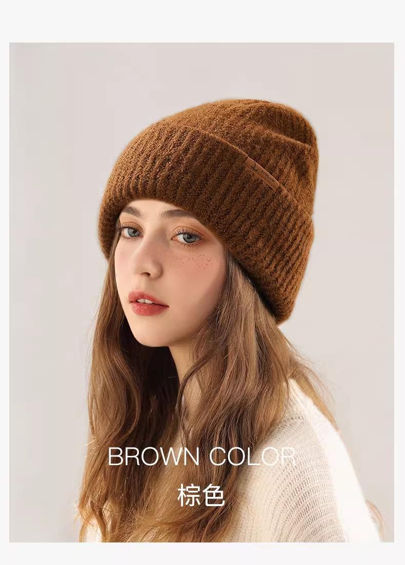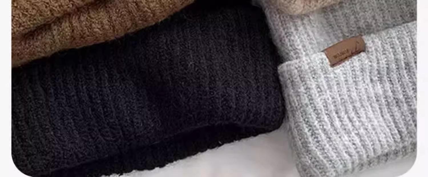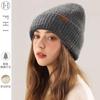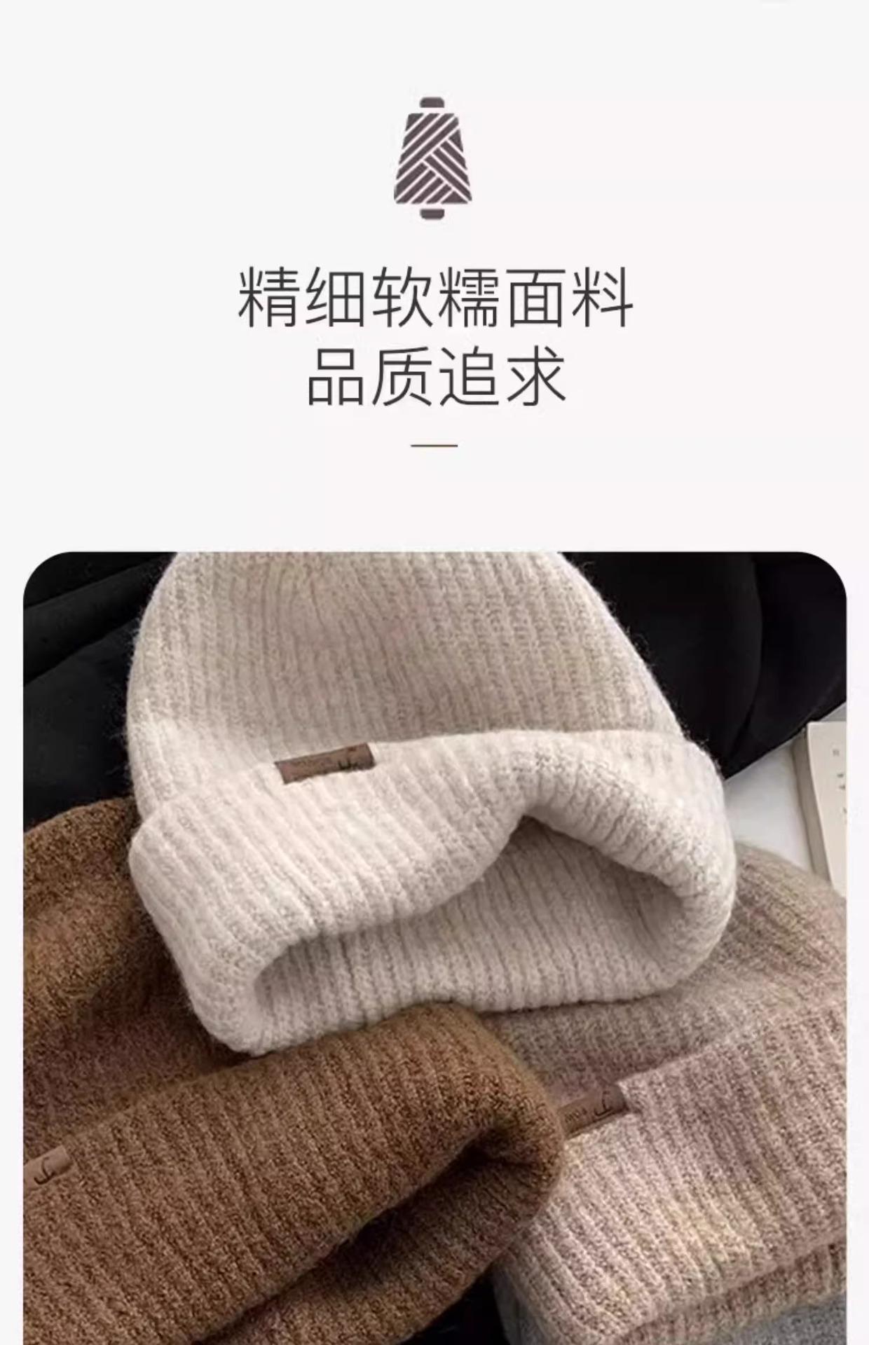 Gorro de lana para mujer, de otoño e invierno, grueso y cálido, de punto, grande, con cara de Wai, pequeño, resistente al frío y combinable.