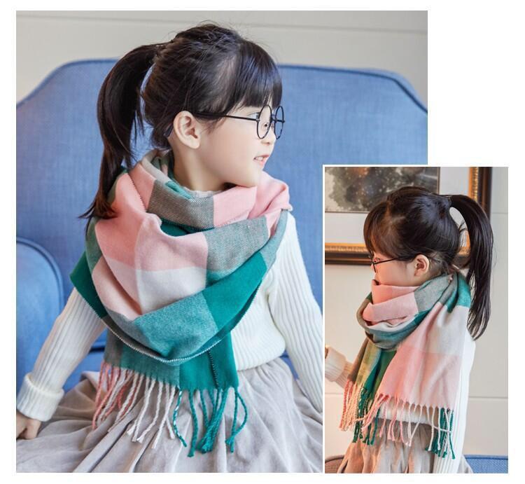 Bufanda a cuadros para niños, bufanda fina de cachemir para otoño e invierno, bufanda estilo coreano para niños, bufanda para niñas, bufanda para niños a la moda