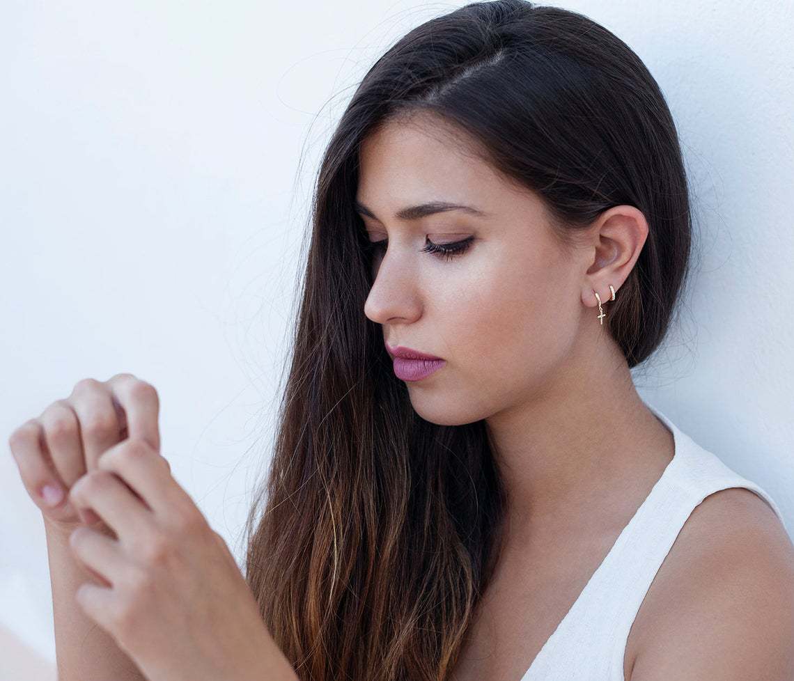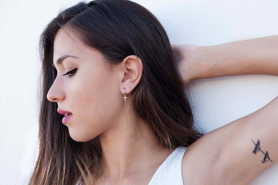 Nuevos pendientes de circonita con incrustaciones cruzadas de comercio exterior europeo y americano, joyería para las orejas, pasador de plata S925, hebilla de oreja simple de moda