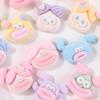 Parche de resina con pegamento para helado, fresa y crema, con diseño creativo de conejo rosa de peluche y oso de café.