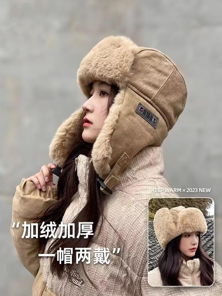 Sombrero Lei Feng artefacto cálido para protección de oídos coche eléctrico a prueba de viento capucha forro polar sombrero grueso a prueba de frío para montar en invierno para mujer
