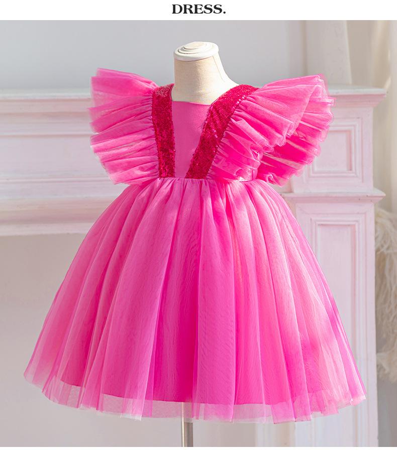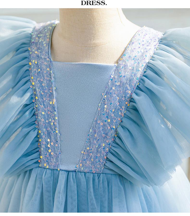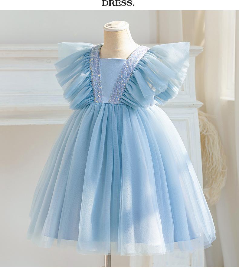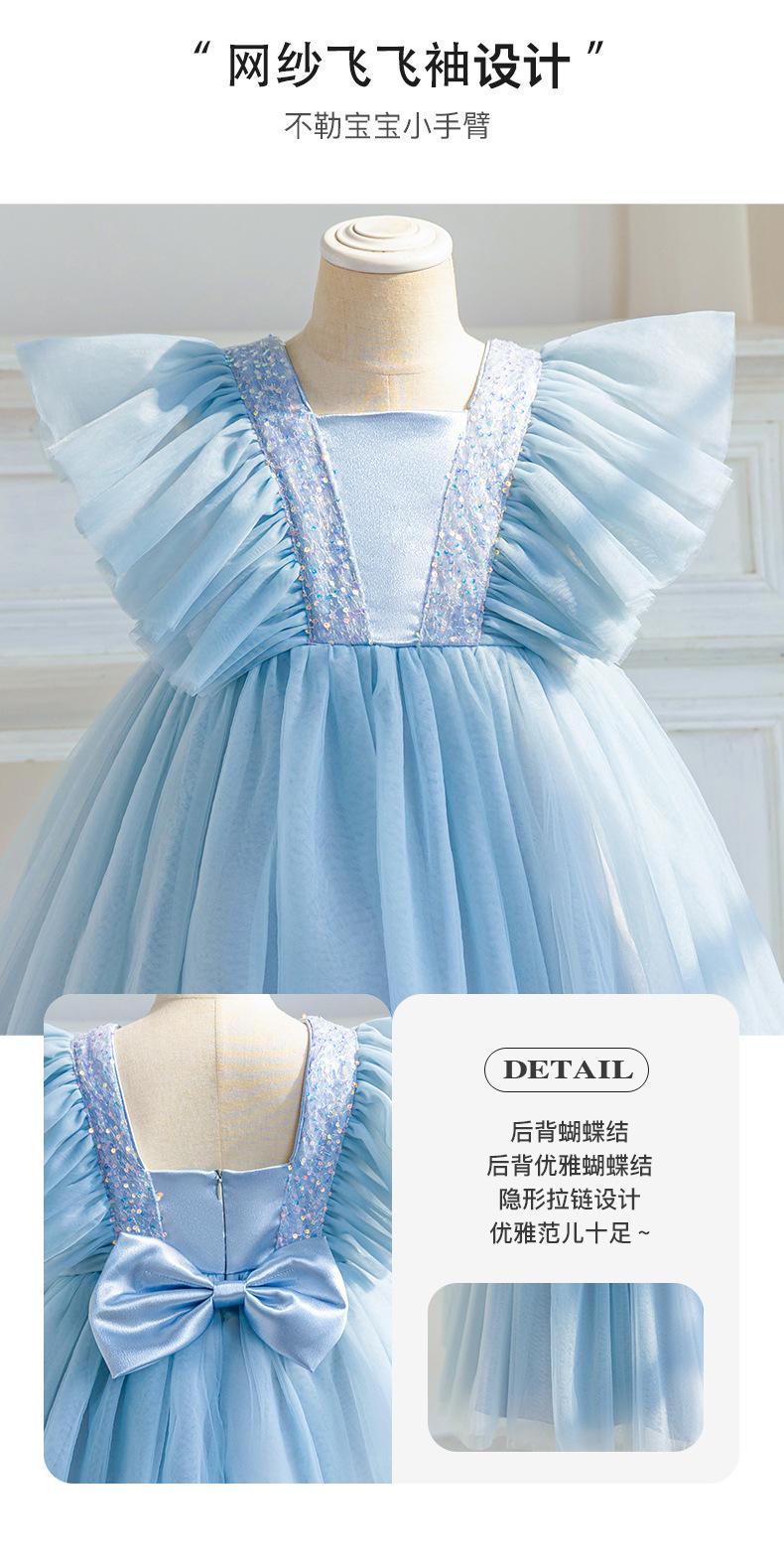 Vestido de gasa esponjosa para niña de verano, nuevo, para banquete de cumpleaños de niña de las flores, vestido de princesa con mangas voladoras, ropa de actuación infantil