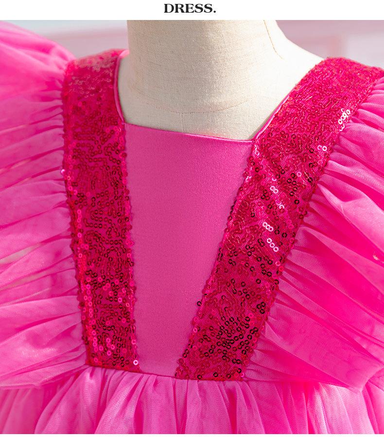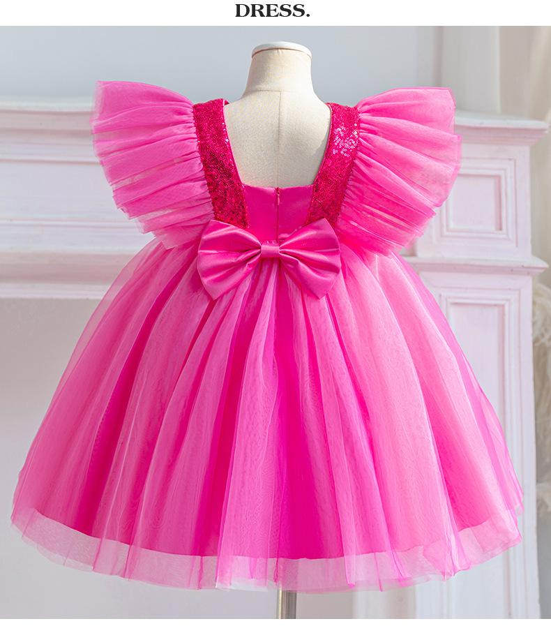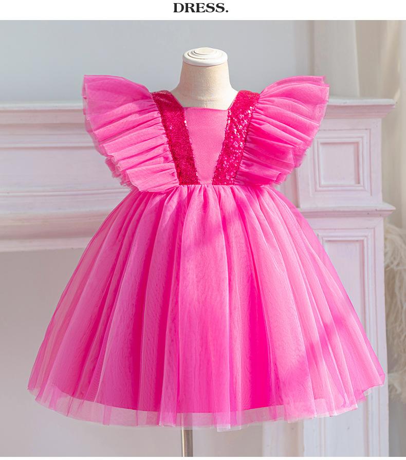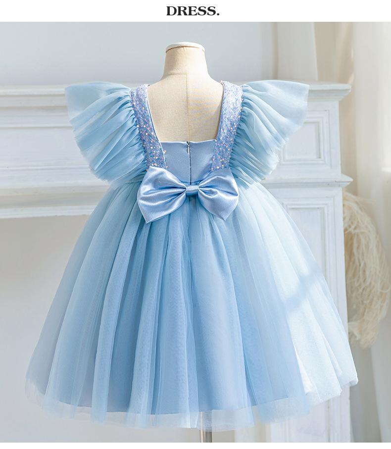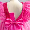 Vestido de gasa esponjosa para niña de verano, nuevo, para banquete de cumpleaños de niña de las flores, vestido de princesa con mangas voladoras, ropa de actuación infantil