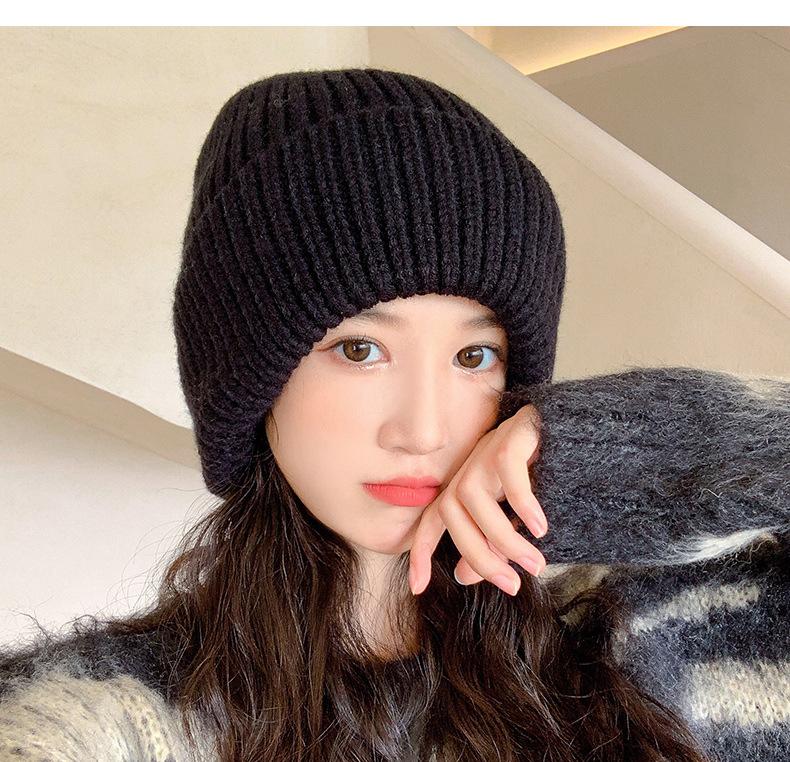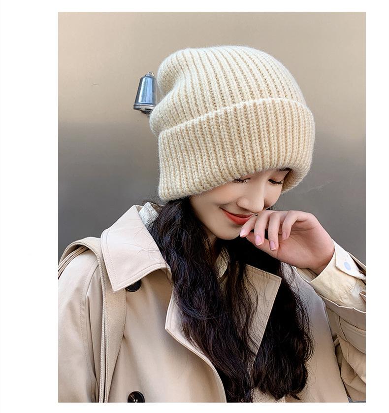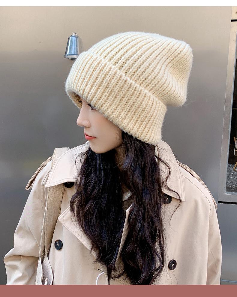Gorro de lana de invierno para mujer, estilo coreano, combina con todo, de línea gruesa, apilable, cálido, grueso, informal, de punto, para otoño e invierno.