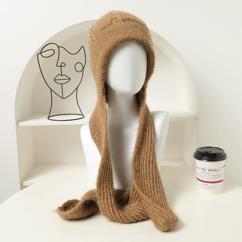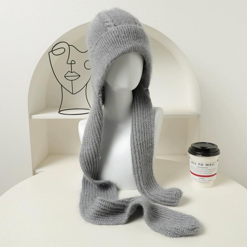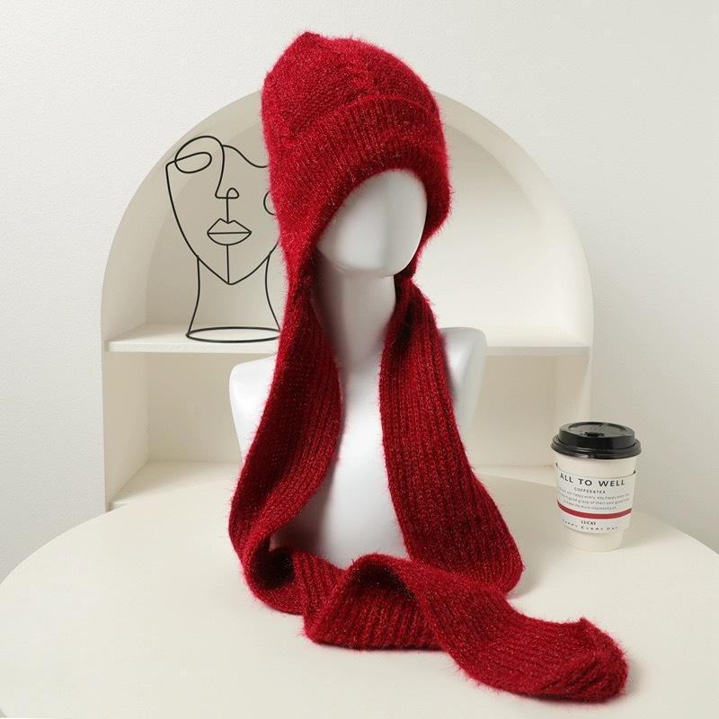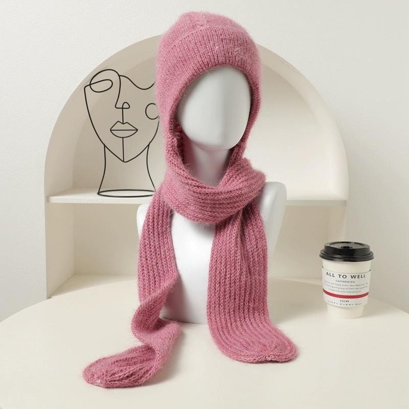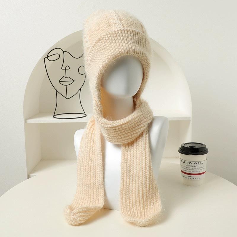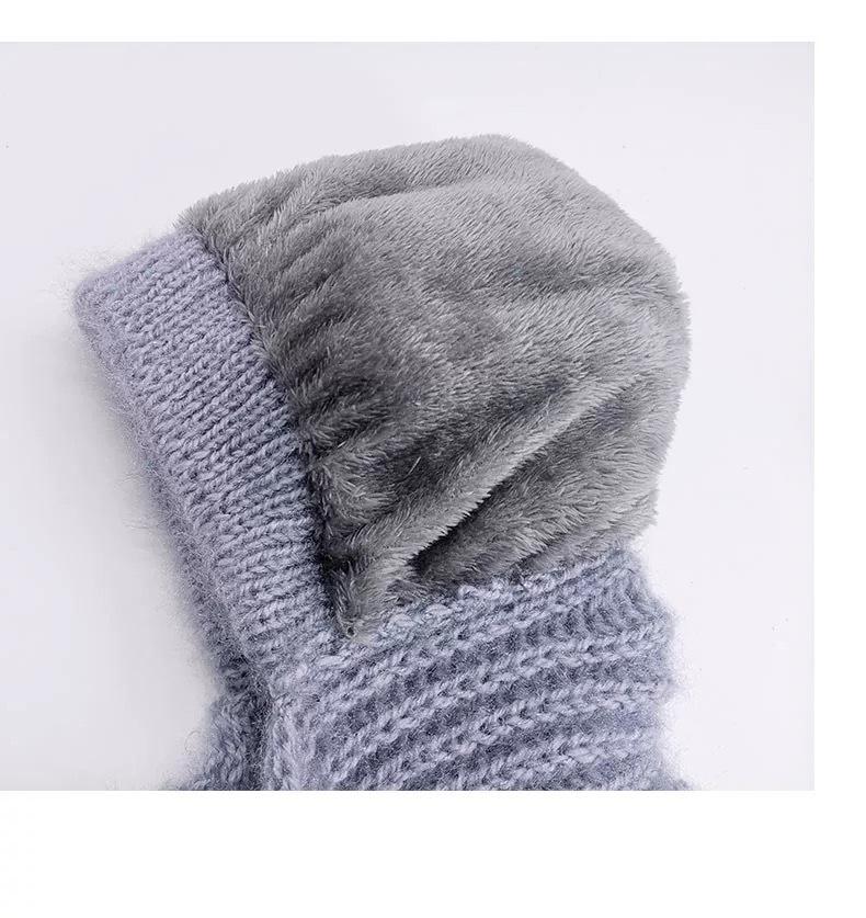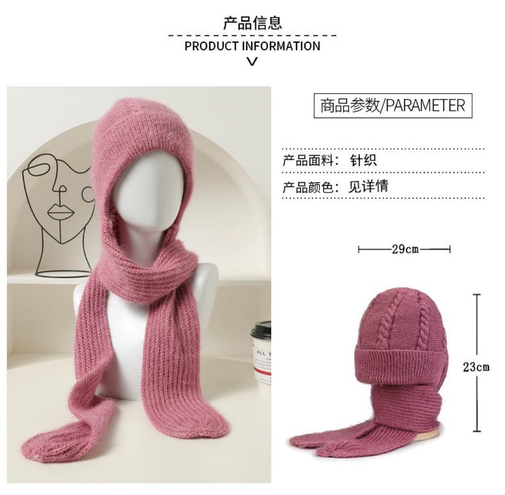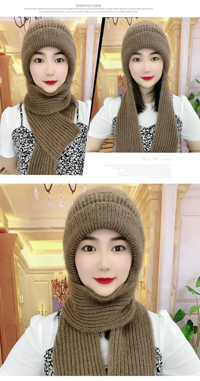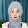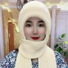 Gorro con bufanda y gorro integrado para otoño e invierno, para mujer, forrado en polar, grueso, cálido, de una pieza, con protección para las orejas y el cuello, gorro de punto para la nieve.