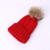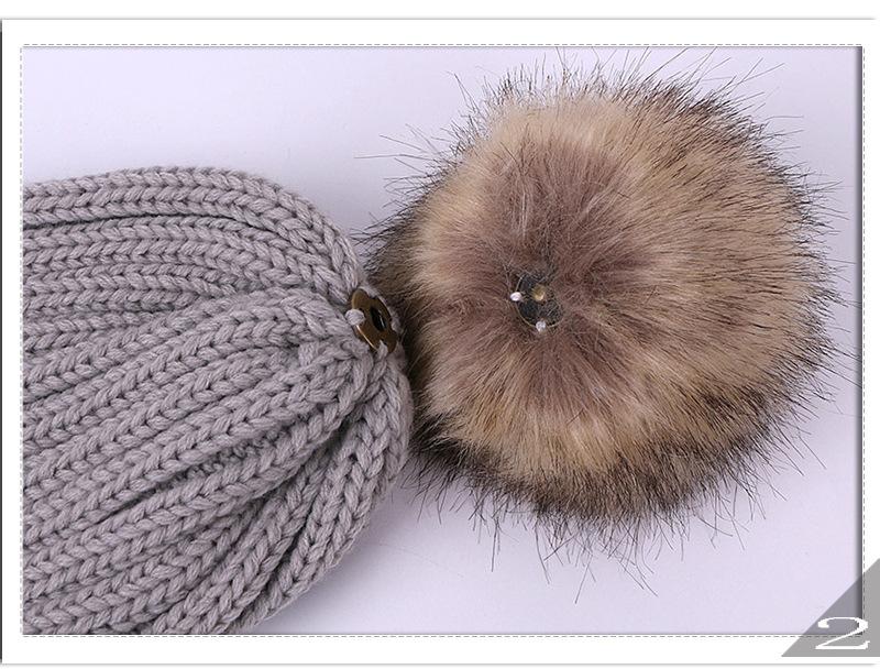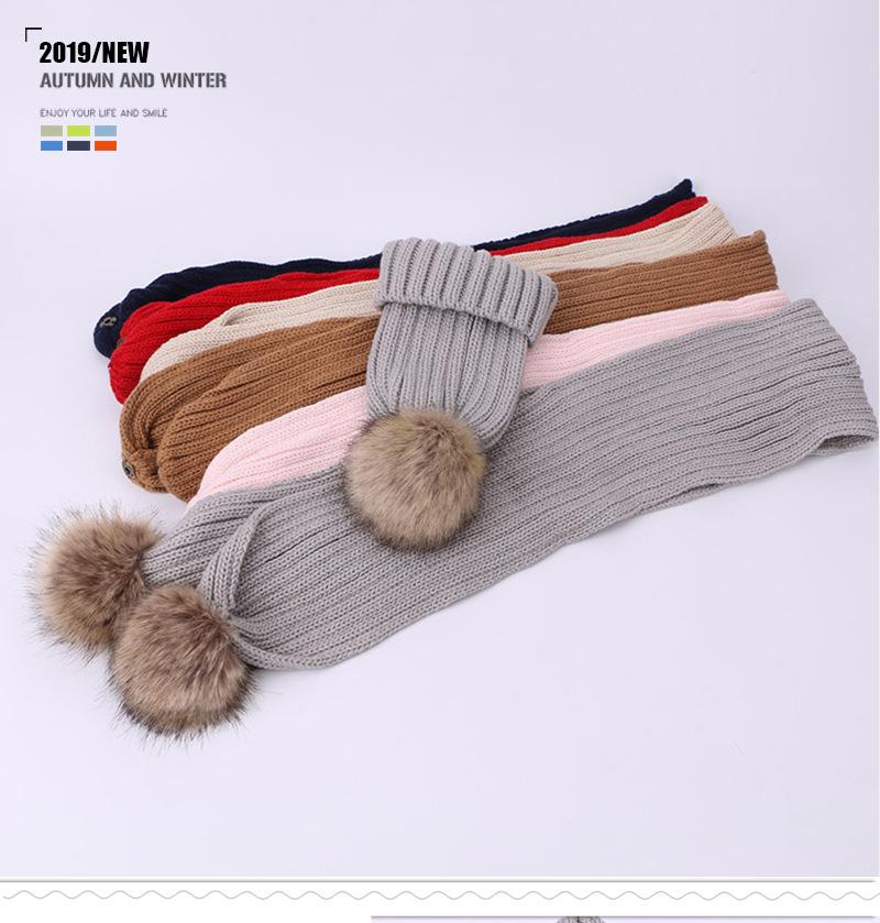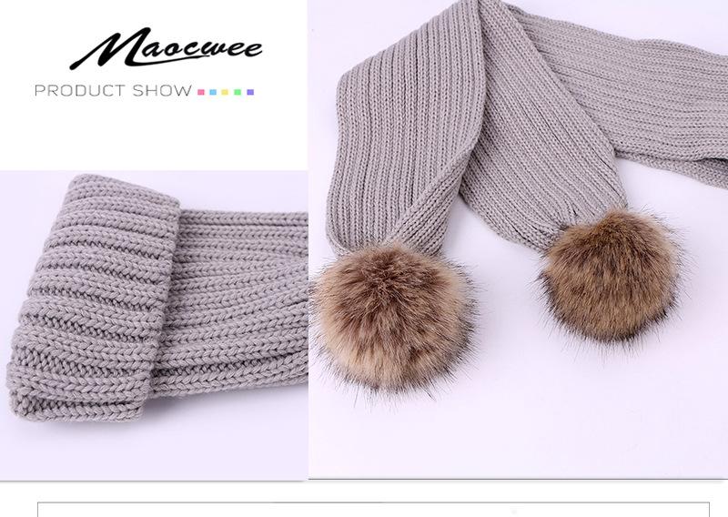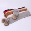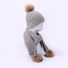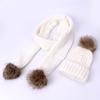Gorro y bufanda de bola de piel sintética de dos piezas para otoño e invierno, gorro de punto cálido para exteriores, conjunto para bebés y niños, transfronterizo