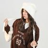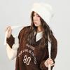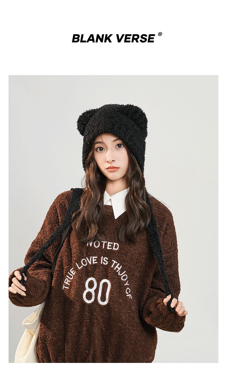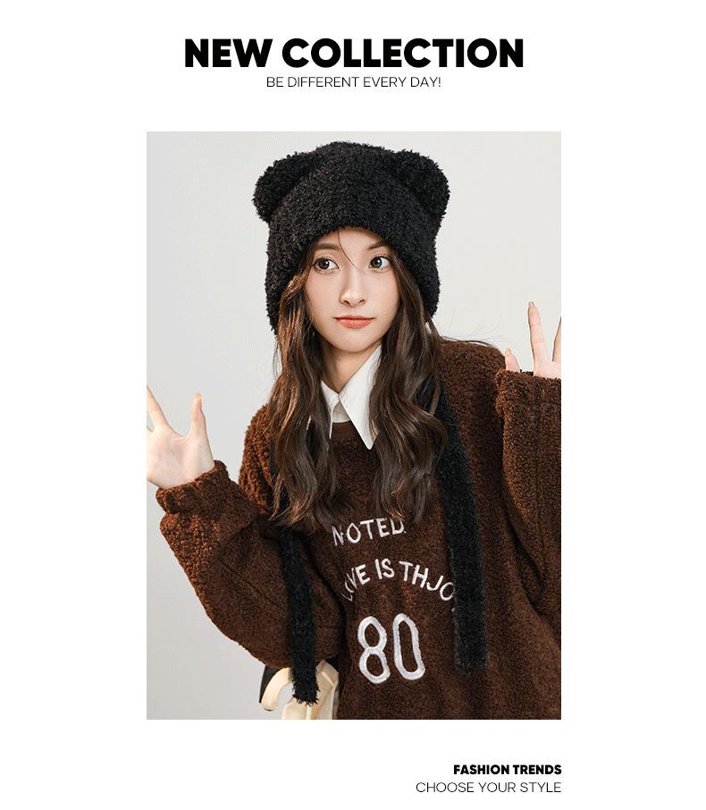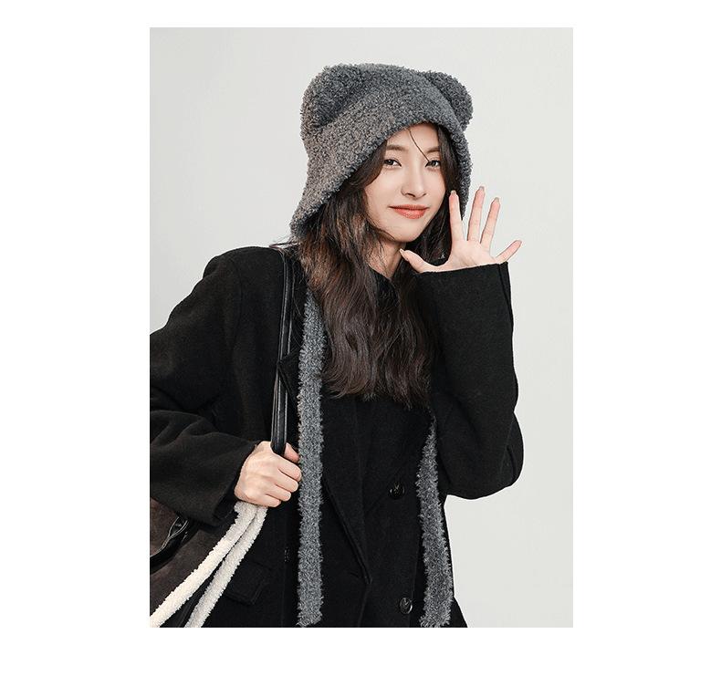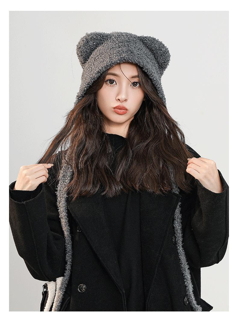 Gorro de punto con orejas de oso para mujer, de otoño e invierno, de felpa, grande, con protección para las orejas, cálido gorro de lana Baotou.