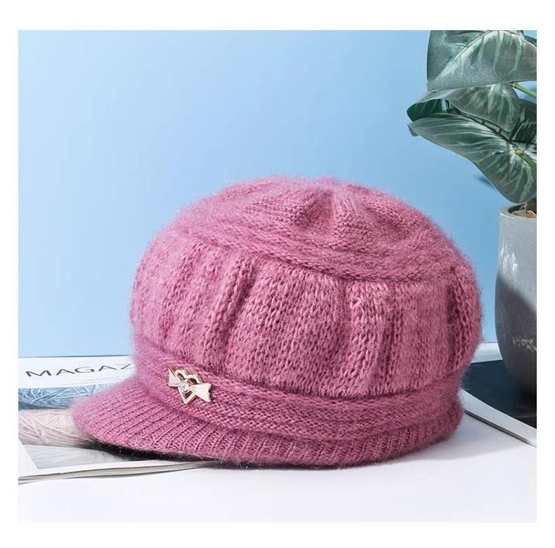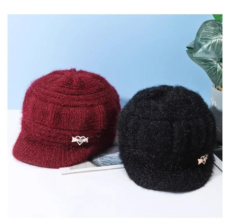 Gorro de otoño e invierno para niños de mediana edad, nuevo gorro de lana de moda para mujer, gorro de punto cálido y bonito con forro polar grueso para el cabello.