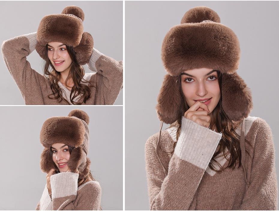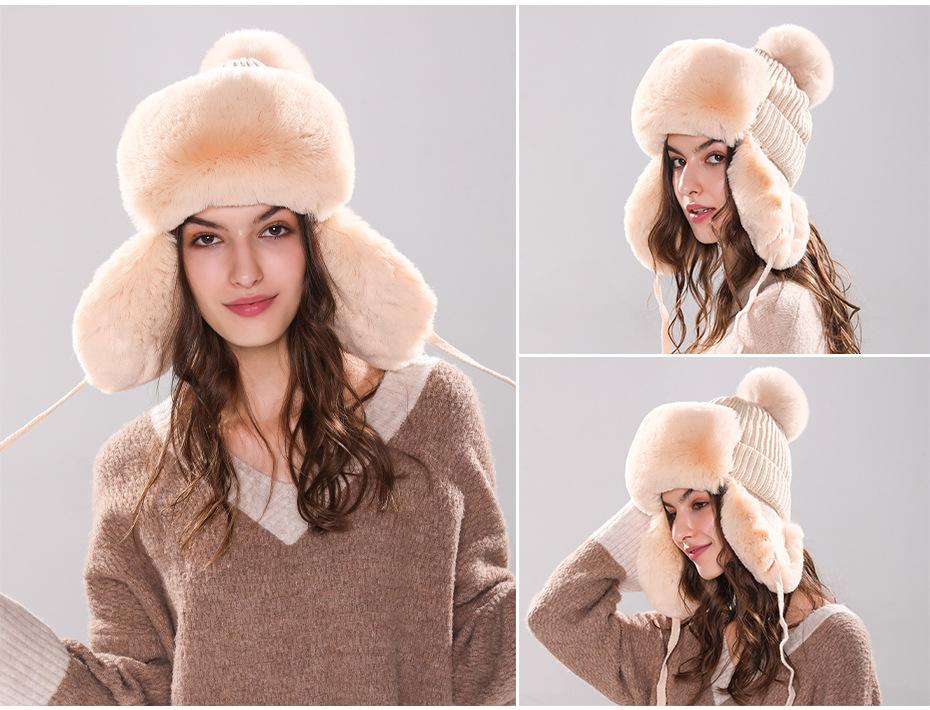 Sombrero de invierno para mujer 2019 creativo comercio nacional extranjero nuevo adulto protección para las orejas de piel de conejo gorro de felpa gorro Lei Feng gorro de princesa