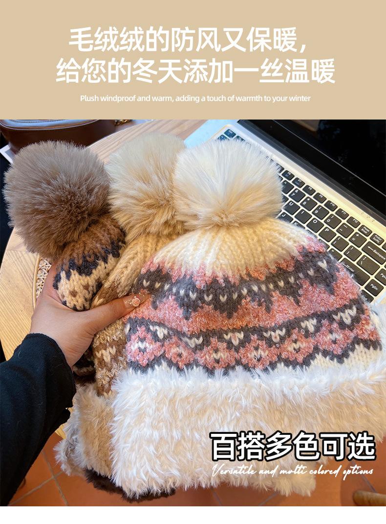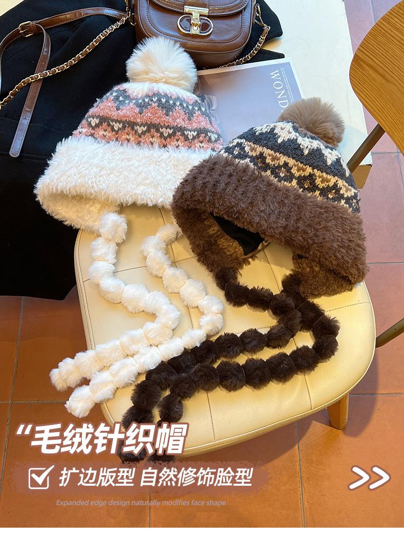 Gorro de lana con borlas de felpa y protección auditiva para mujer, de otoño e invierno, grueso y cálido, de punto para el rostro, pequeño, resistente al frío, Lei Feng.