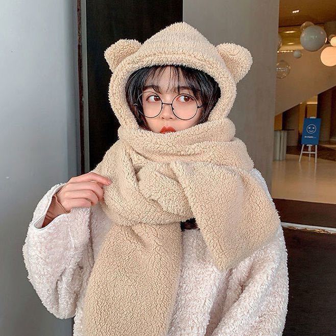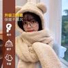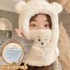 Conjunto de cuatro piezas de gorro y bufanda de invierno con diseño de osito, guantes y capucha para mujer, mascarilla cálida de celebridad de Internet