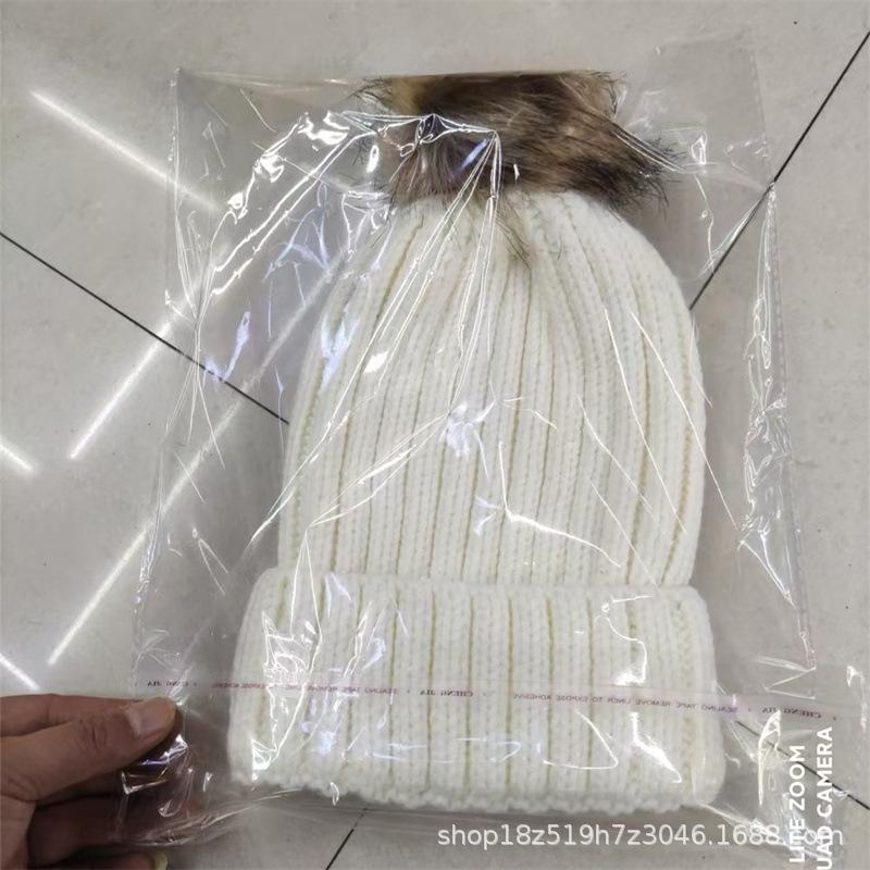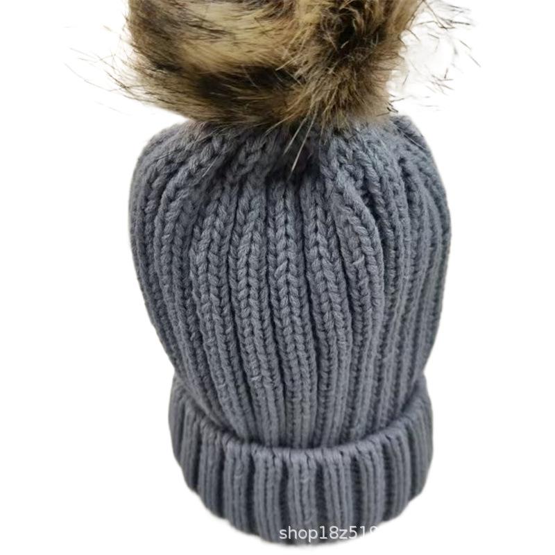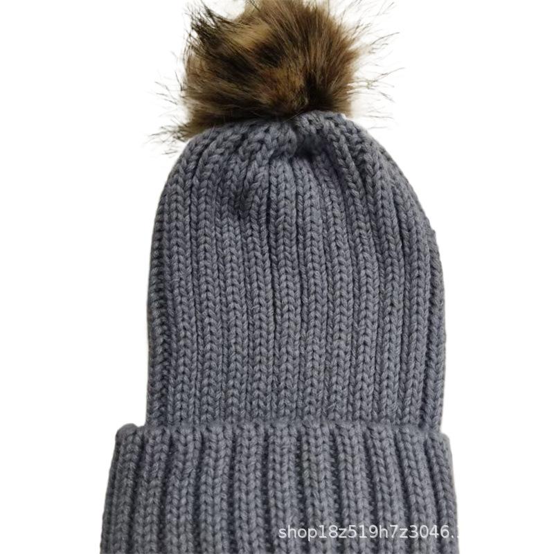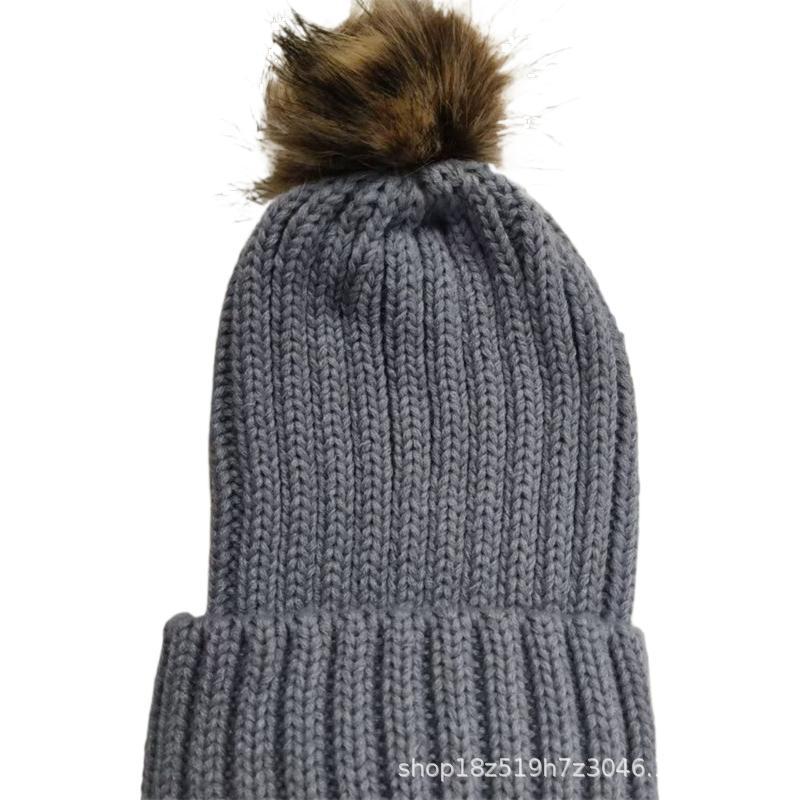 Gorro de punto grueso para mujer, estilo coreano, para otoño e invierno, con bola de pelo de mapache de imitación amazónica, de lana, cálido y moderno.