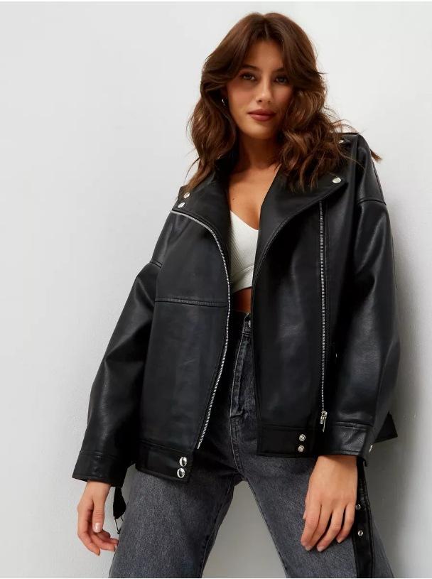 En el otoño de 2025, la nueva personalidad de estilo europeo y americano con cremallera oblicua, ropa de coche arcade frita, chaqueta de cuero PU de comercio exterior