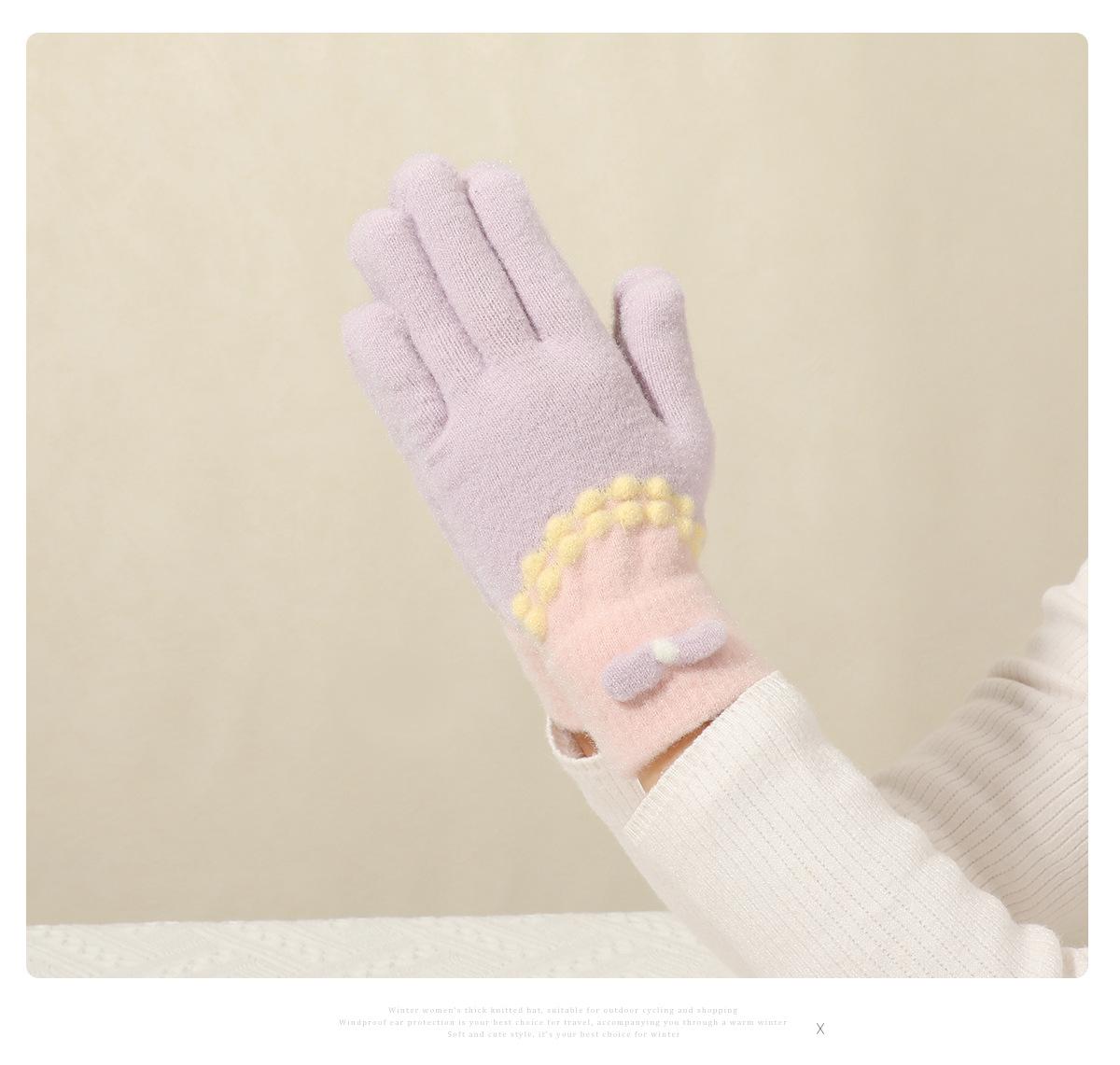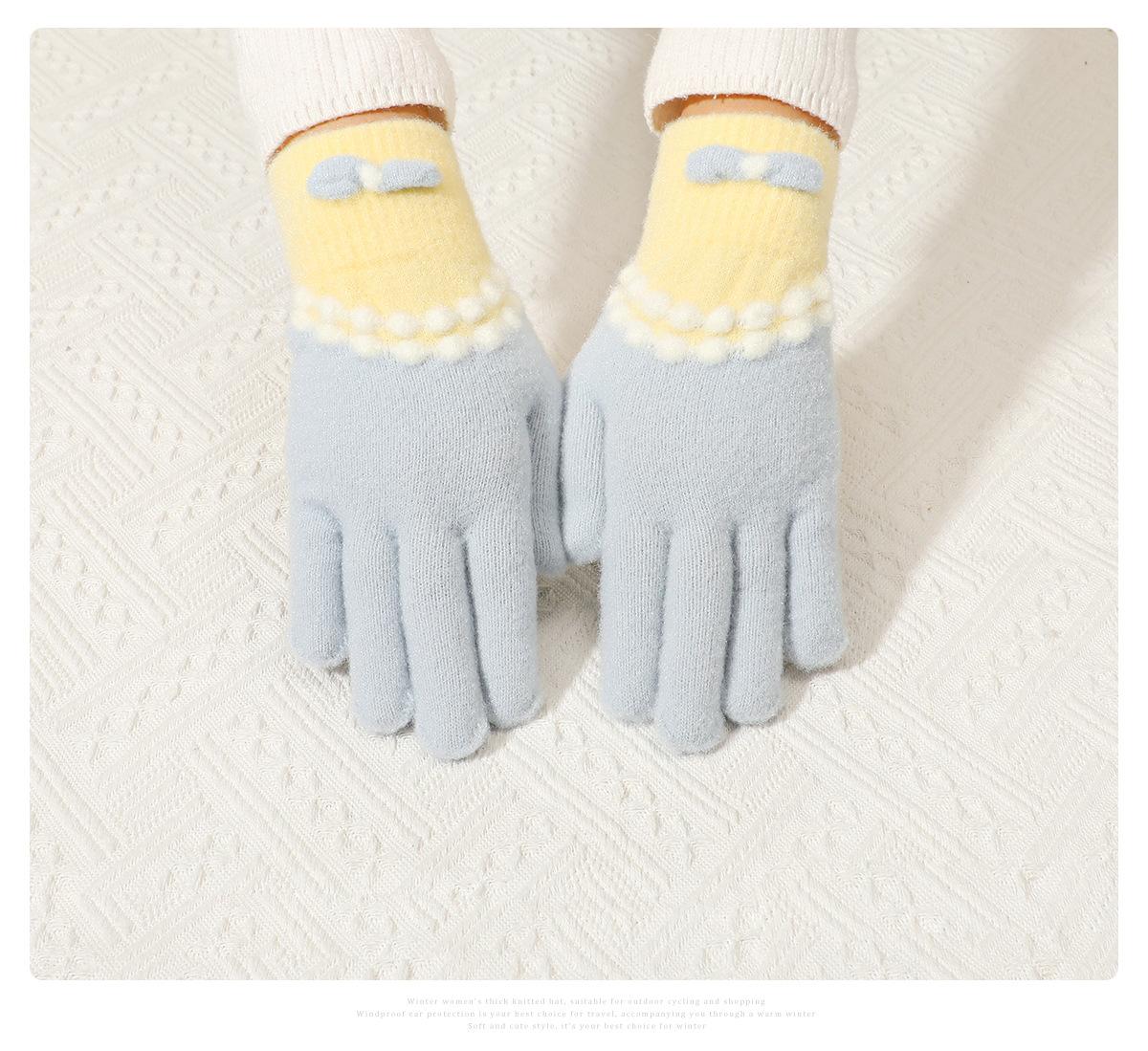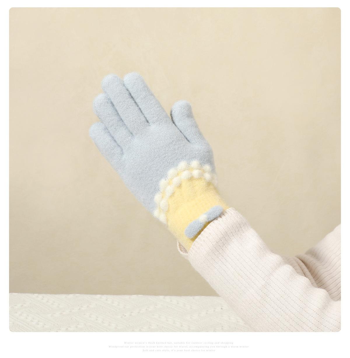 Guantes de punto de felpa azul bonitos de cinco dedos para mujer, otoño e invierno, cálidos, forrados con vellón, gruesos, para ciclismo, resistentes al frío, 2024, nuevos