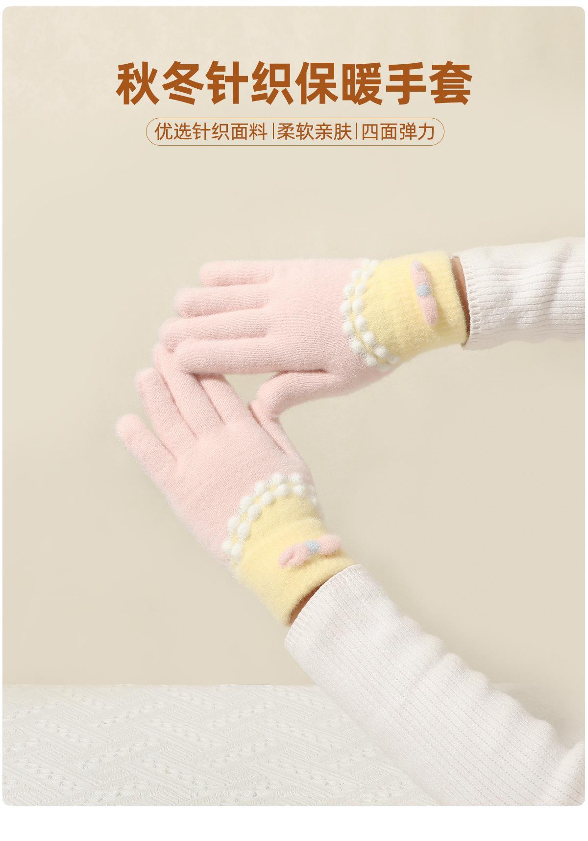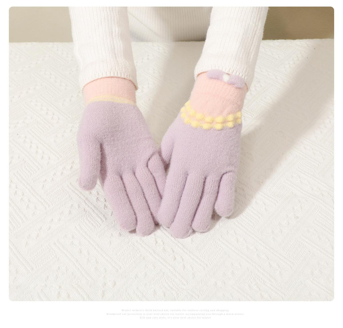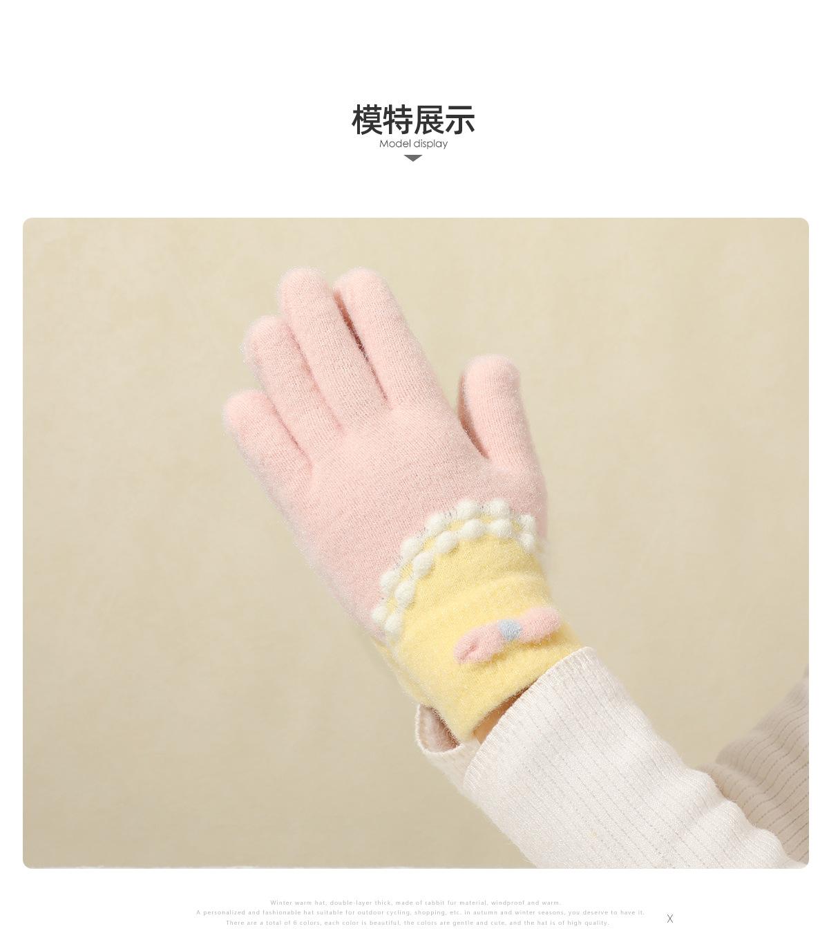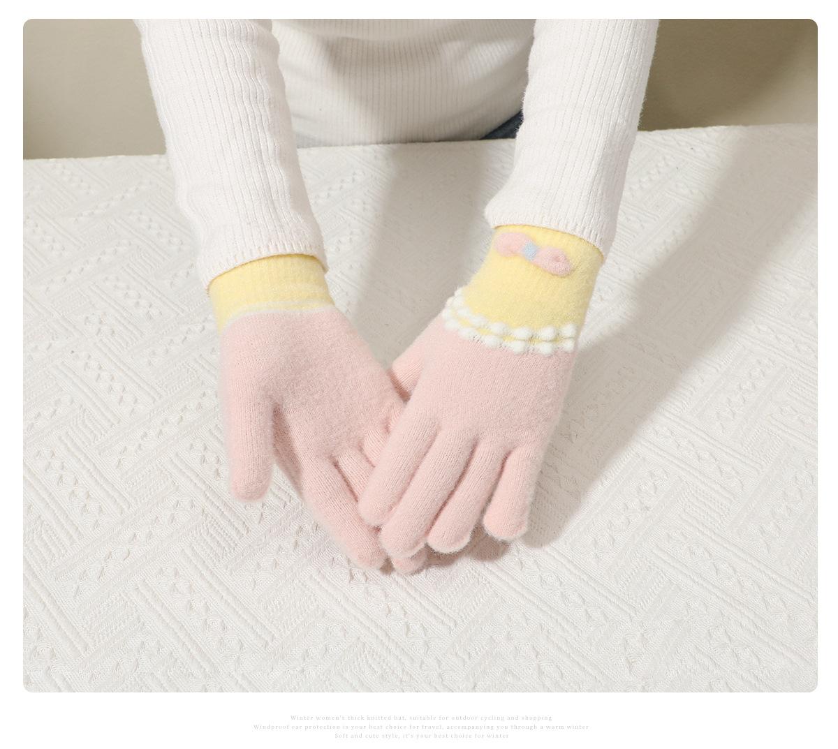 Guantes de punto de felpa azul bonitos de cinco dedos para mujer, otoño e invierno, cálidos, forrados con vellón, gruesos, para ciclismo, resistentes al frío, 2024, nuevos