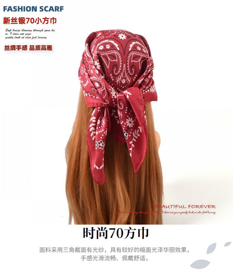 Bufanda de seda cuadrada pequeña de 70 cm con estampado de anacardo para mujer, nueva bufanda de seda satinada de primavera y verano, bufanda de moda para mujer, venta al por mayor