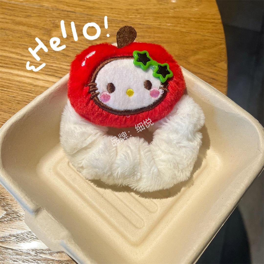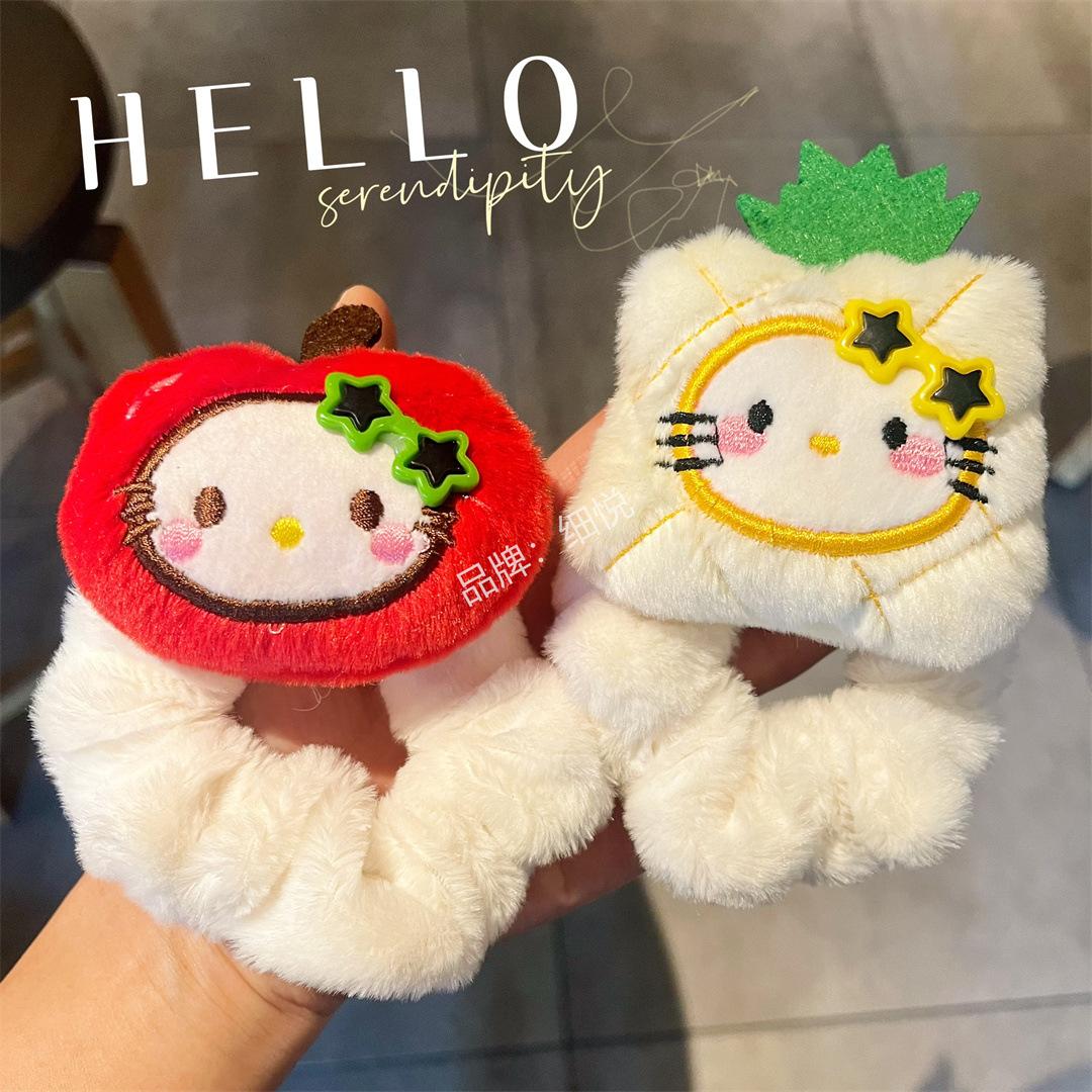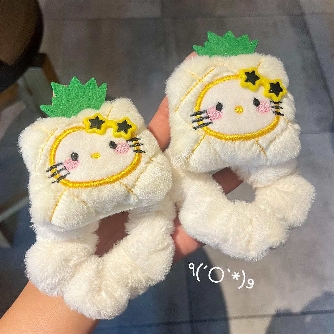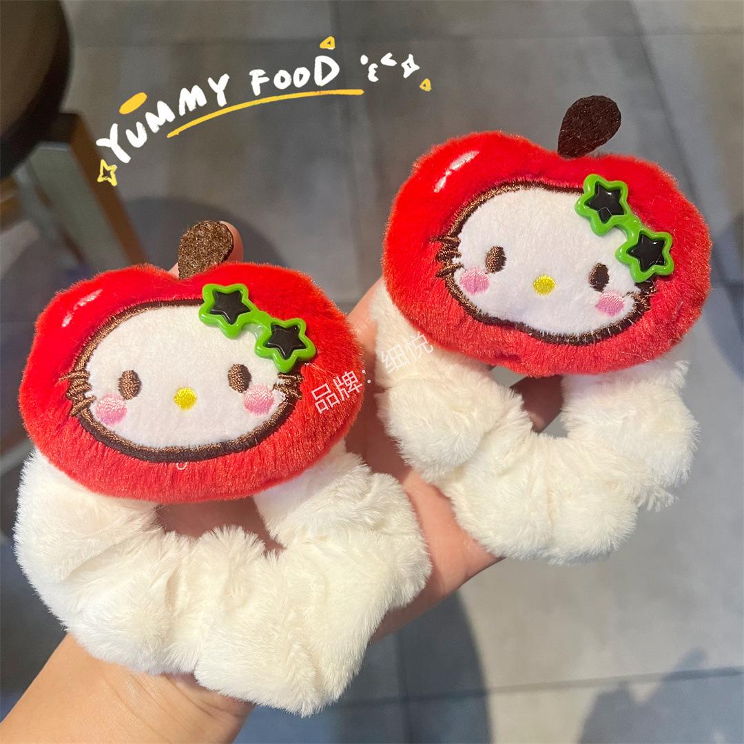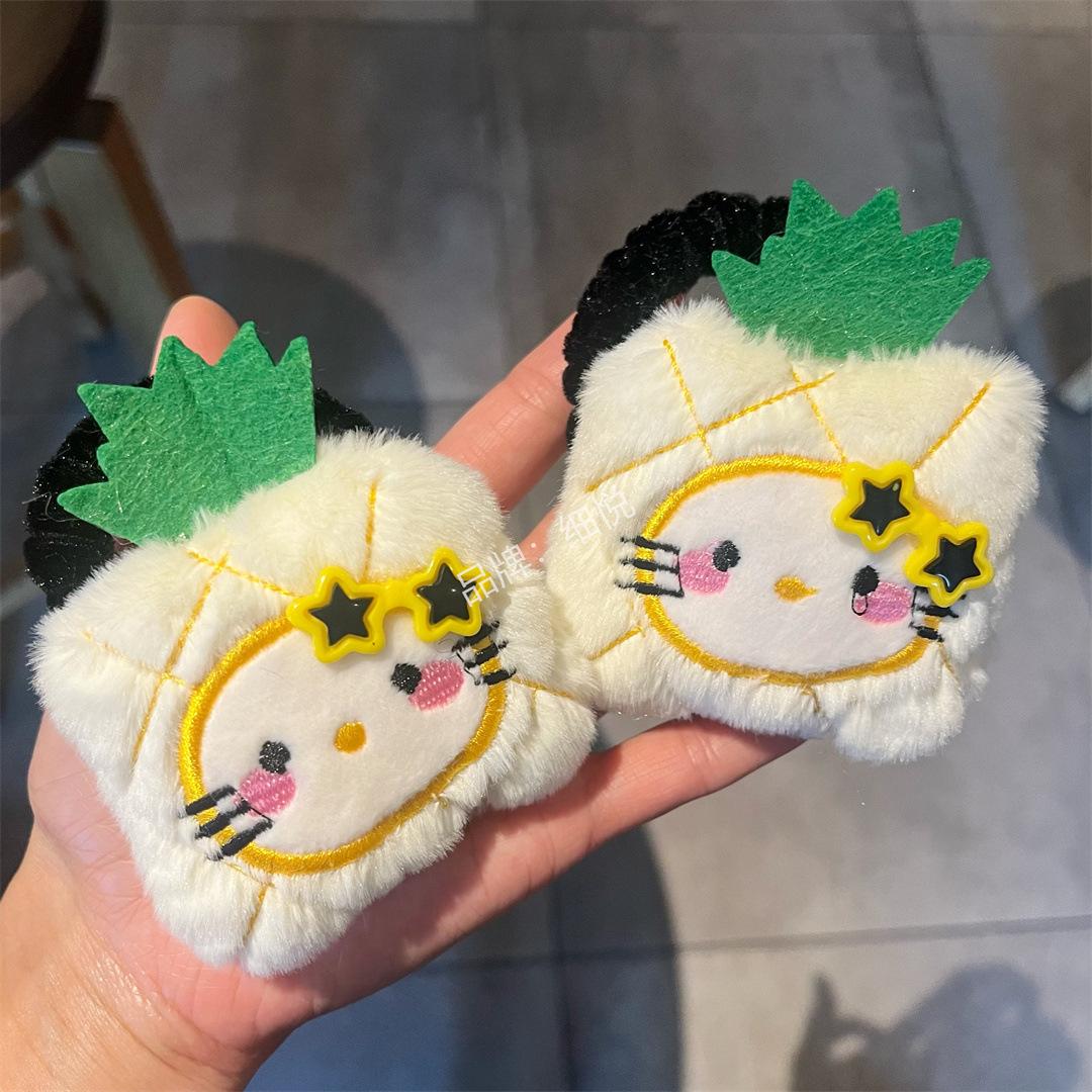 Lindo peluche manzana piña intestino grueso anillo para el cabello cuerda para el cabello dulce niña con gafas flequillo accesorios para el cabello de dibujos animados colgante que combina con todo