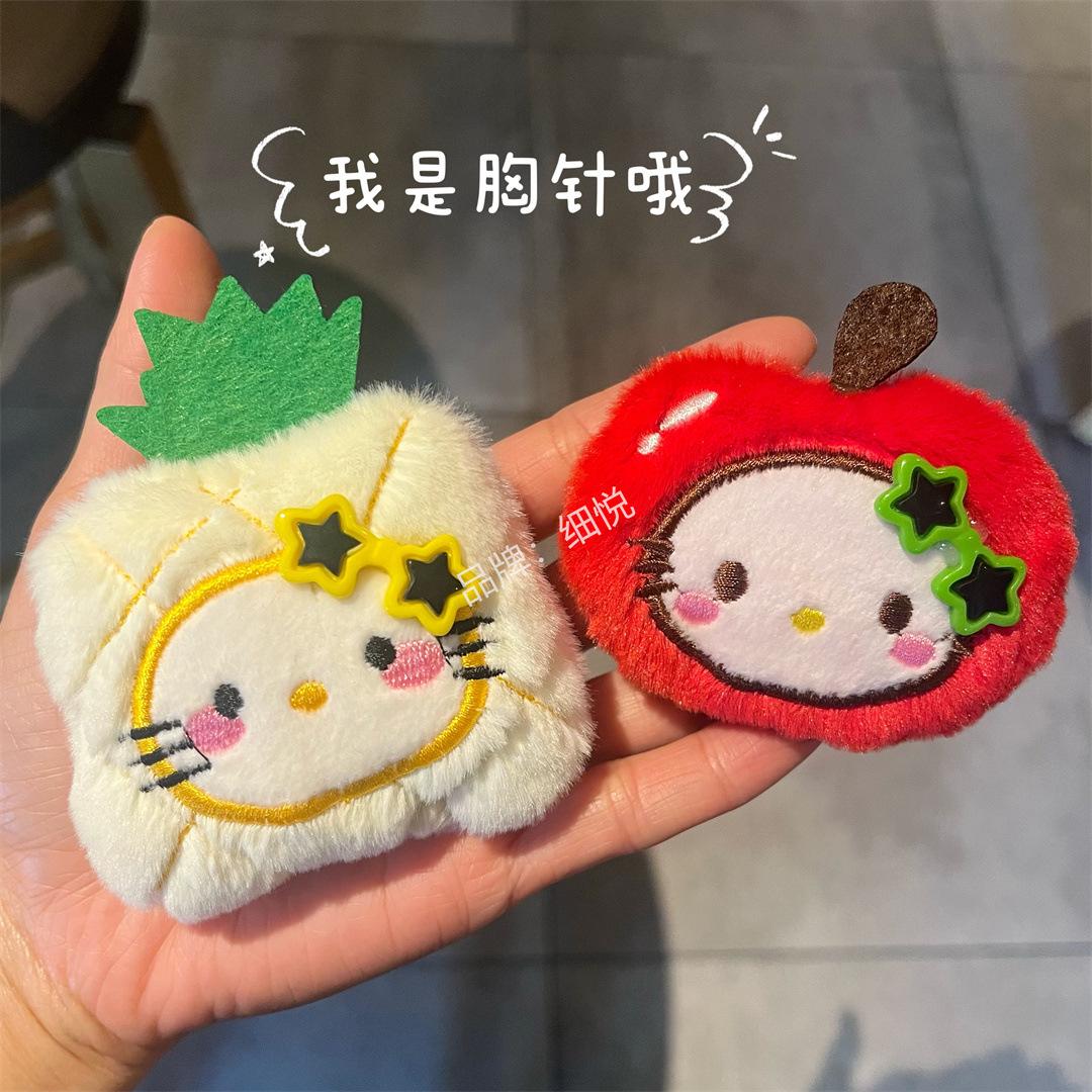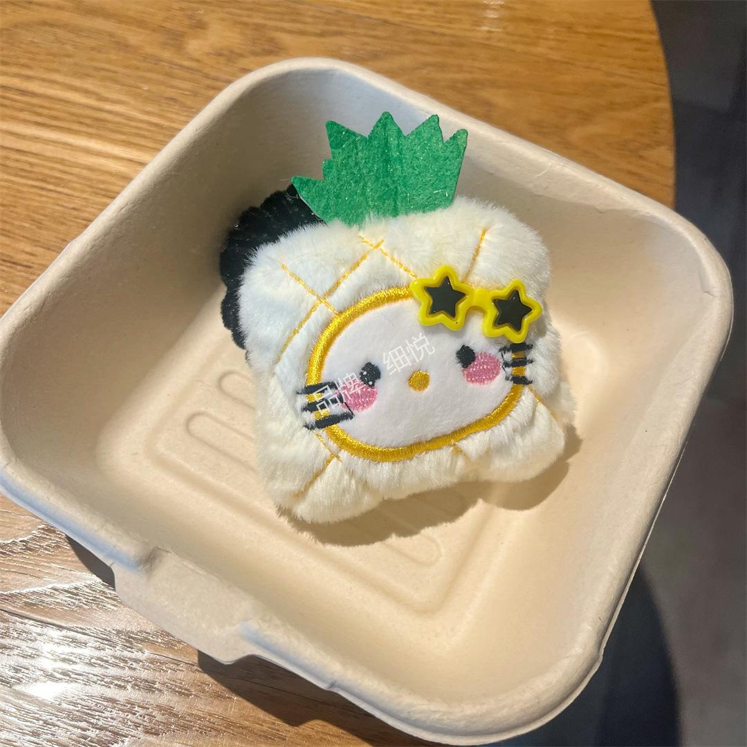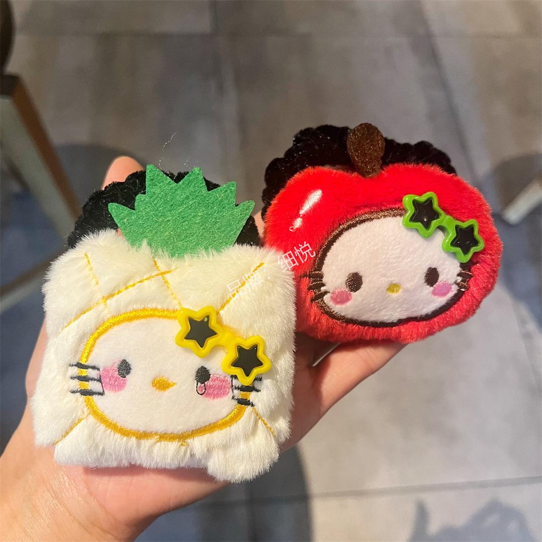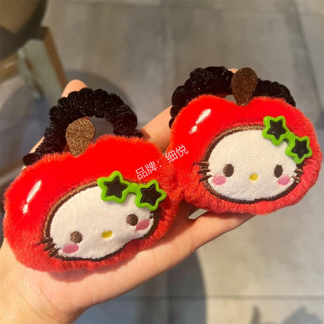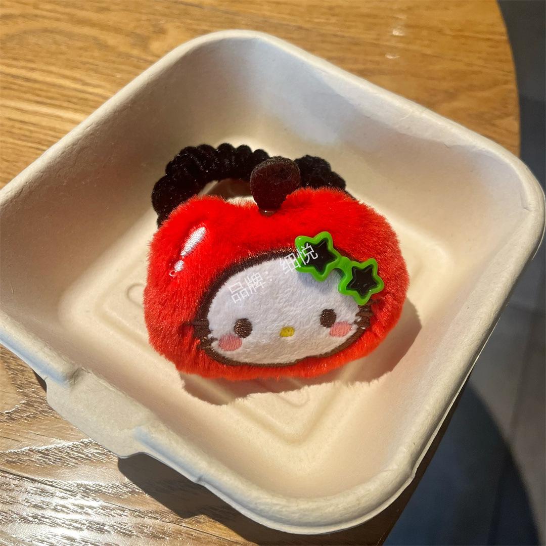 Lindo peluche manzana piña intestino grueso anillo para el cabello cuerda para el cabello dulce niña con gafas flequillo accesorios para el cabello de dibujos animados colgante que combina con todo