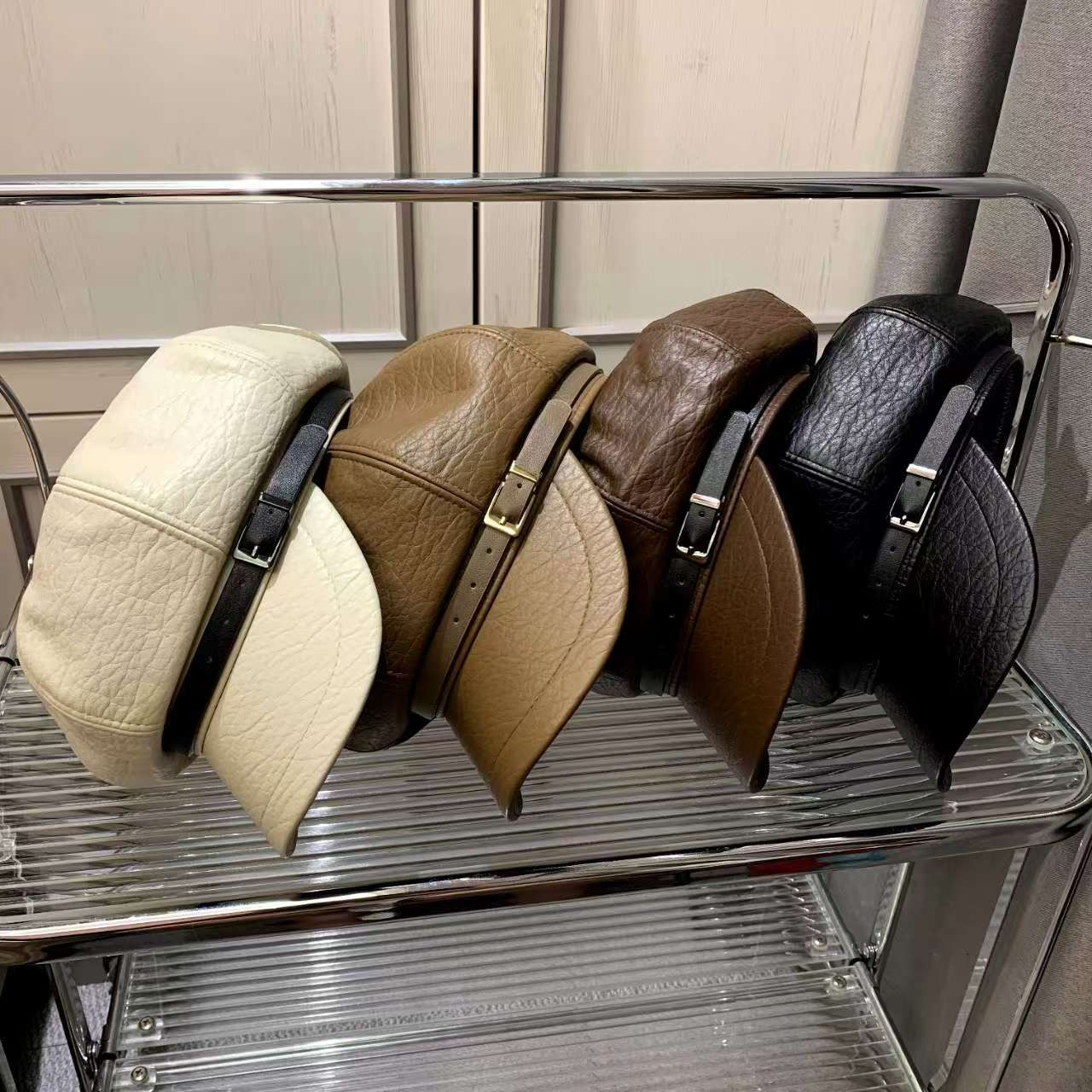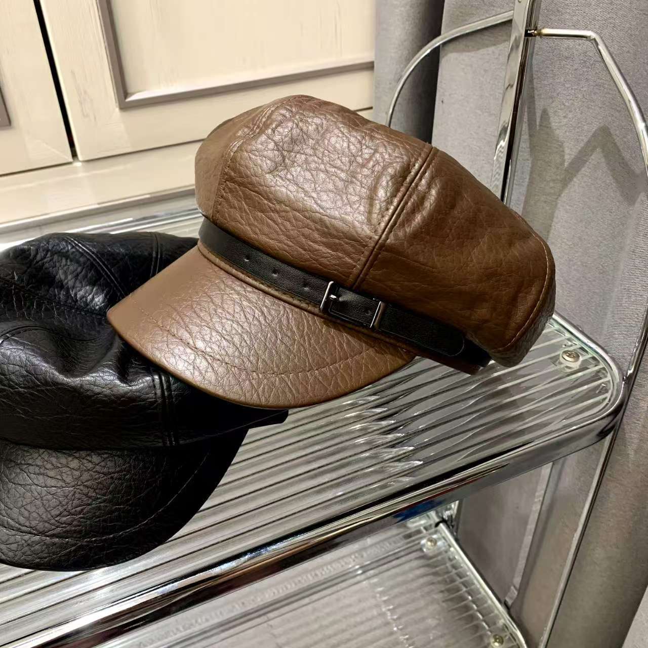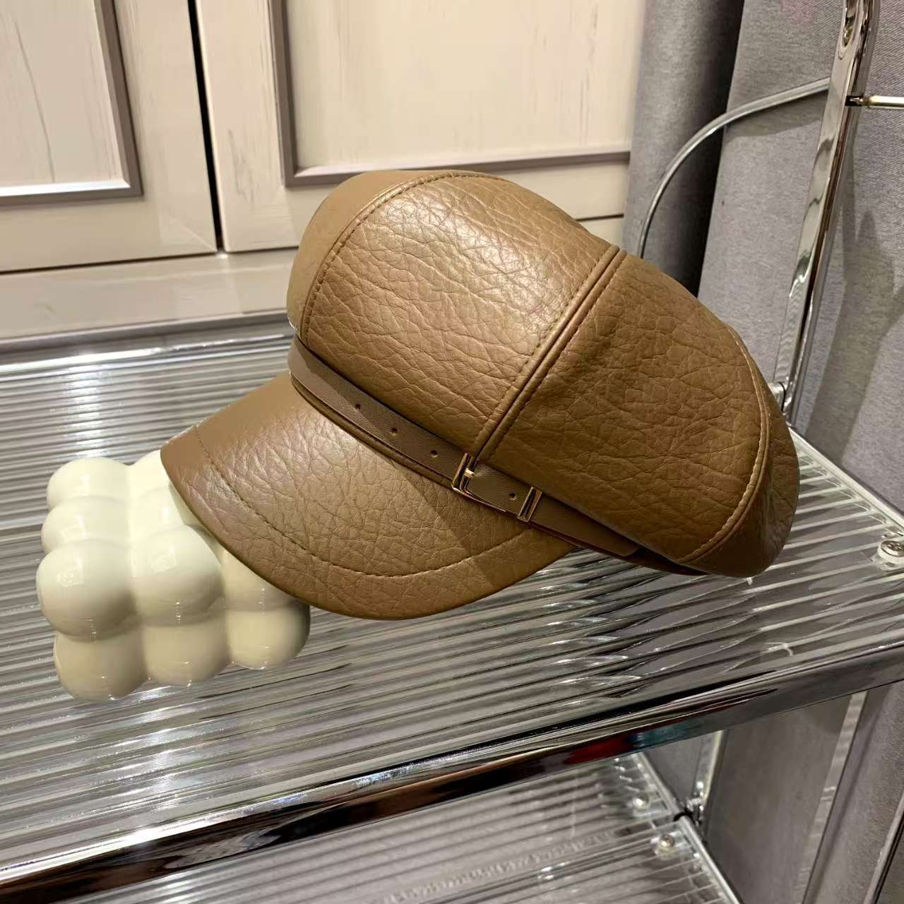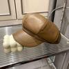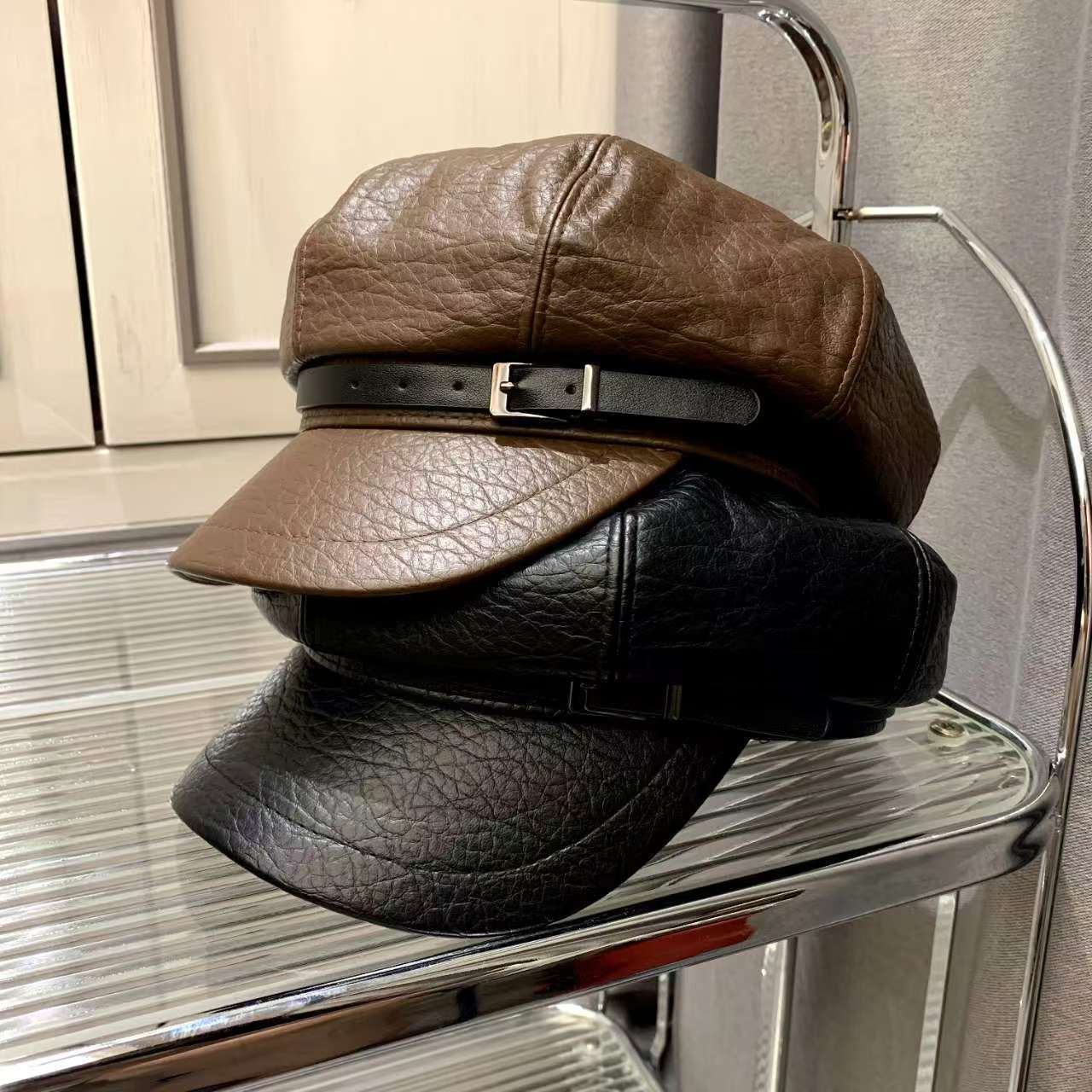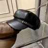 Estilo Coreano Estilo Chica Sexy Nueva Boina de Cuero para Mujer Otoño e Invierno Combinación con Todo Rostro Mostrado Sombrero de Pintor Pequeño Retro Sombrero de Brote Moderno