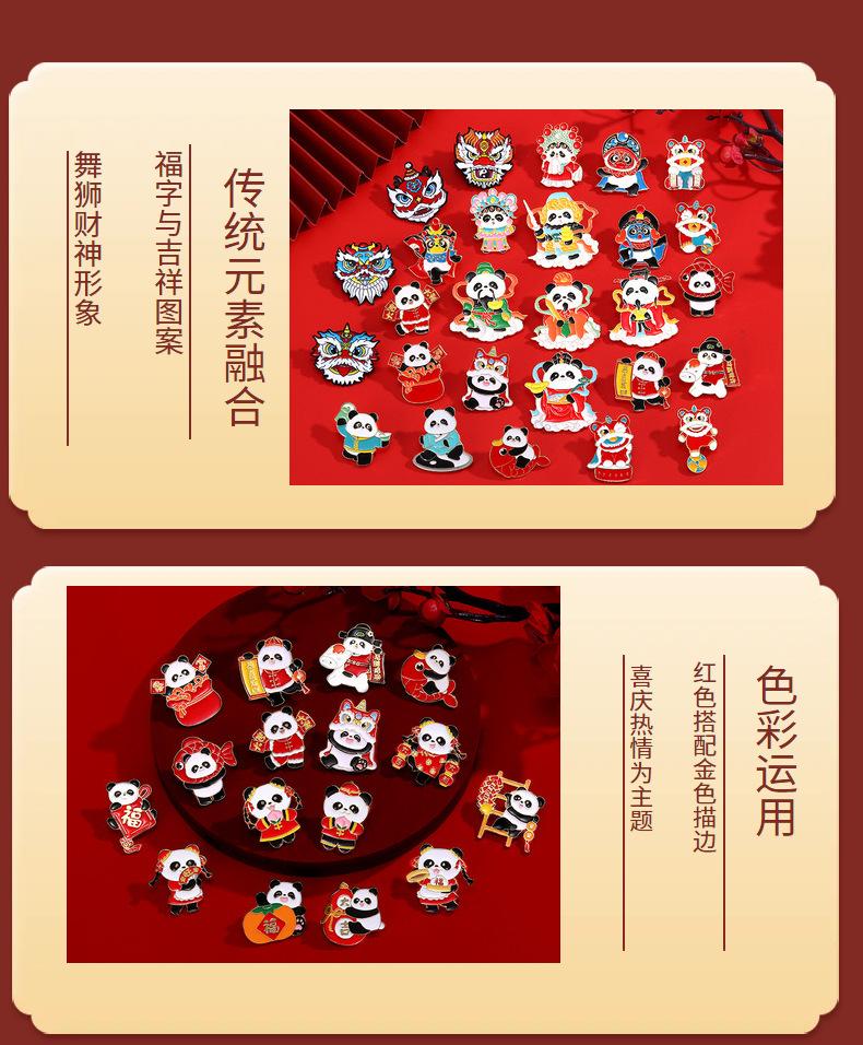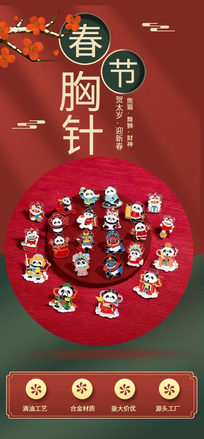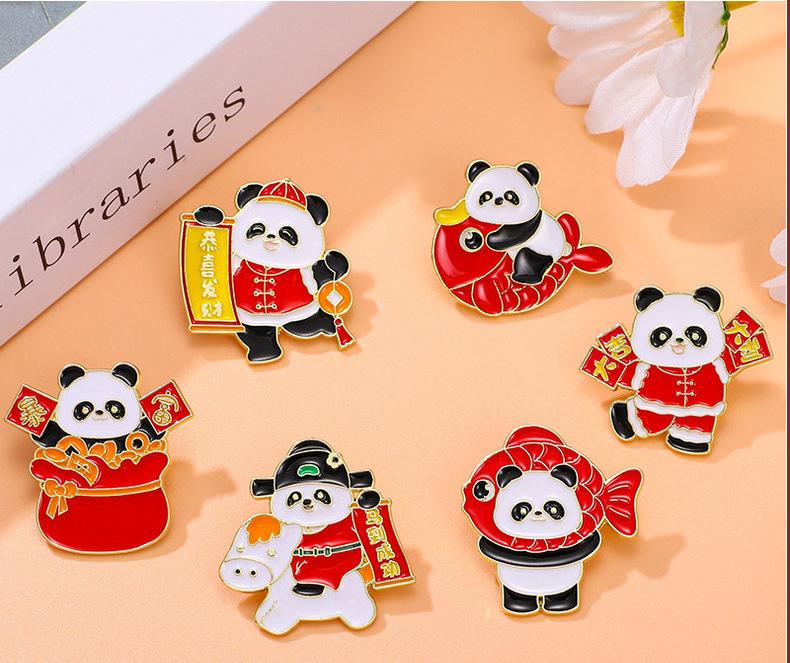 Nueva serie del Festival de Primavera, broche de Panda de Año Nuevo, estilo chino, danza del león, insignia del Dios de la riqueza de cinco vías, accesorios para usar