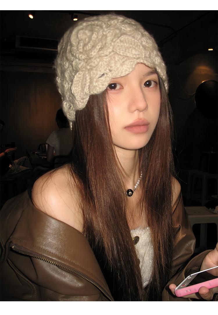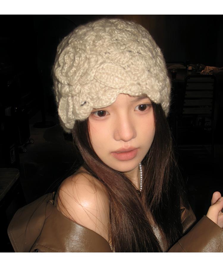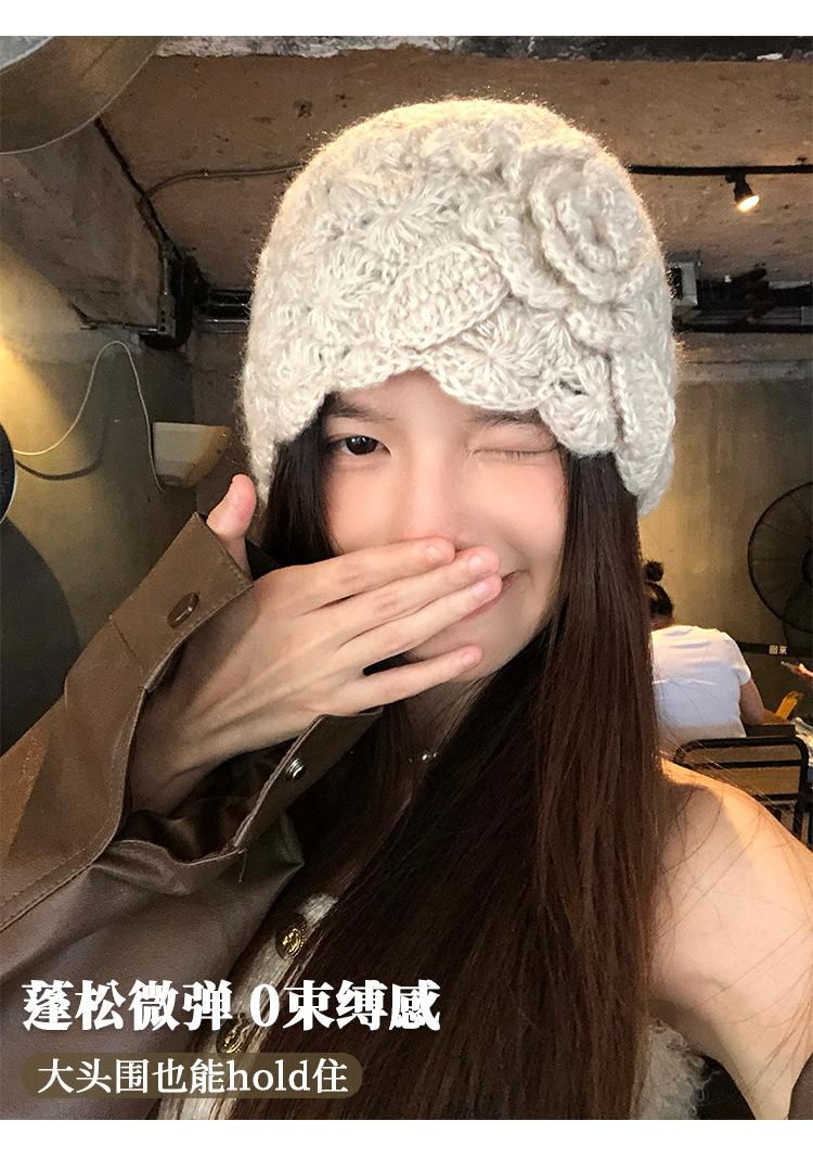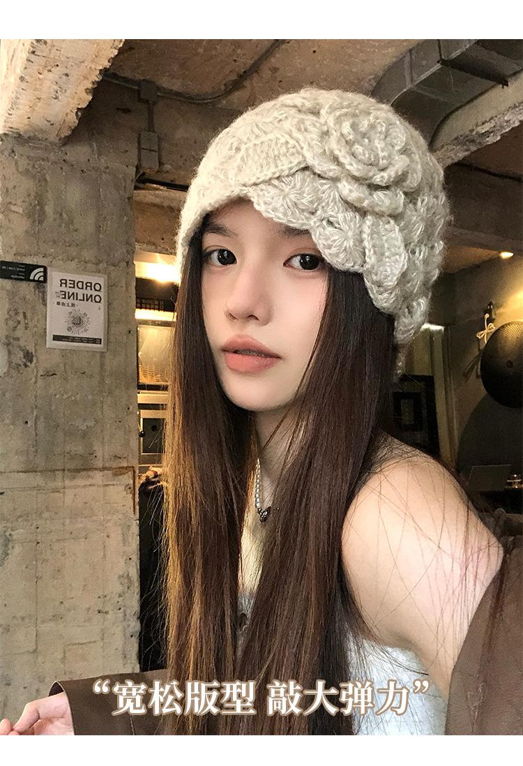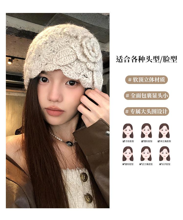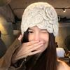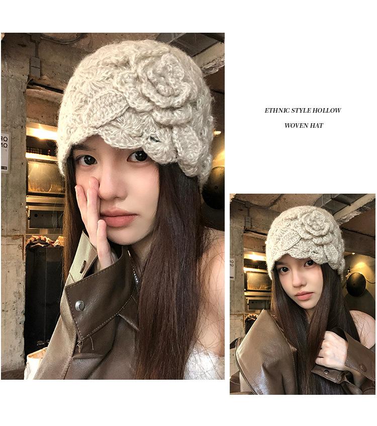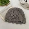 Gorro estilo japonés de otoño e invierno con flores huecas para mujer, estilo retro de alta gama, de punto combinable, gorro de lana cálido.