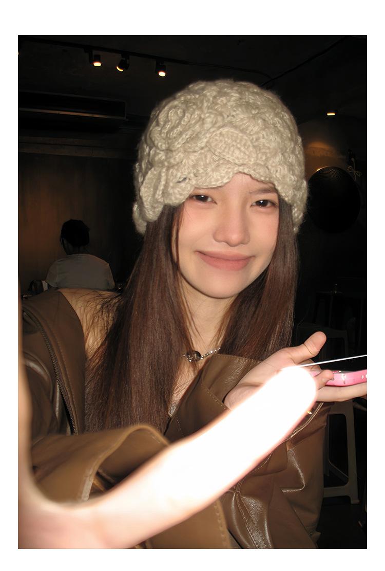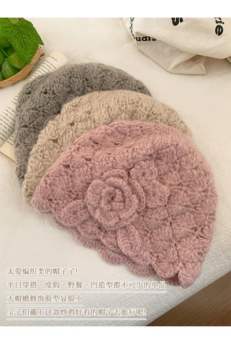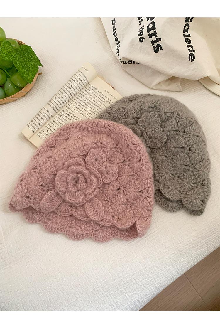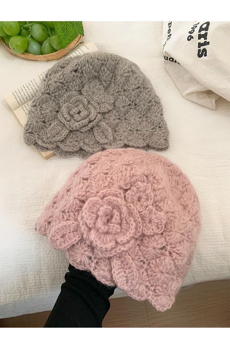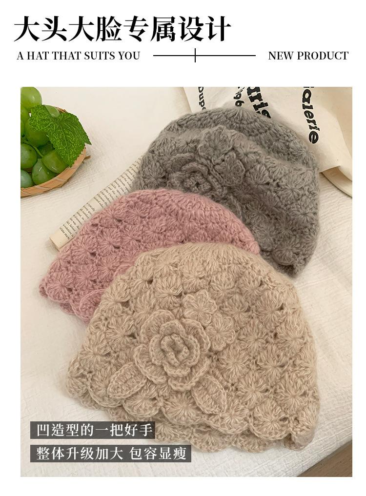 Gorro estilo japonés de otoño e invierno con flores huecas para mujer, estilo retro de alta gama, de punto combinable, gorro de lana cálido.