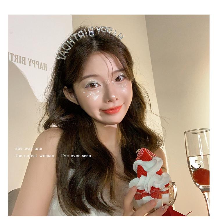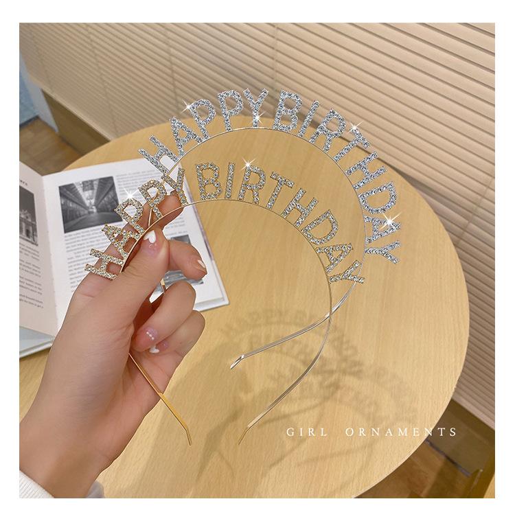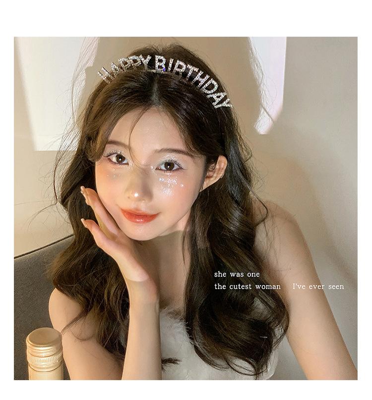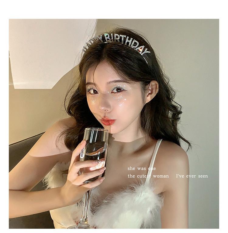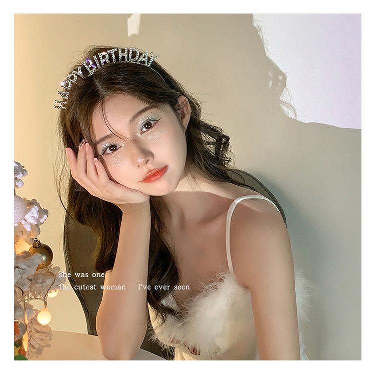 Diadema de Feliz Cumpleaños Diosa Corona de Pedrería Diadema de Atmósfera Vestido de Fiesta Horquilla Coreana Tocado Accesorios para el Cabello