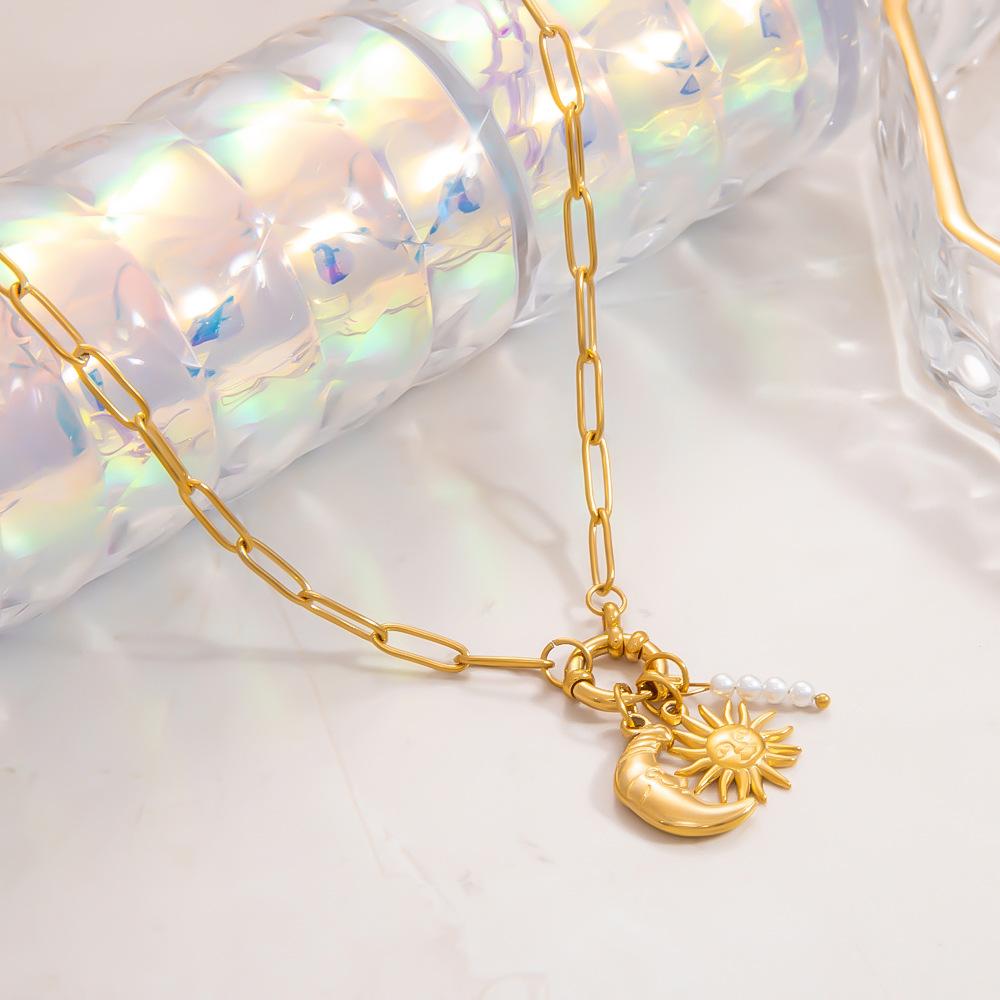 Collar transfronterizo europeo y americano ins Collar para mujer para todo Otoño e Invierno Hecho a mano DIY Cadena clavicular Acero de titanio Oro de 18 quilates Collar de joyería de lujo ligero