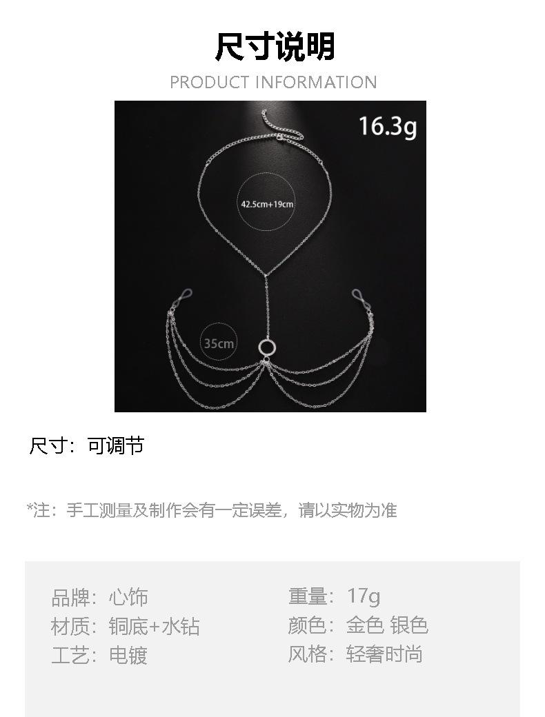 Cadena de pecho sexy con diamantes redondos transfronterizos, cadena corporal con cristales de imitación para bikini europeo y americano para mujer