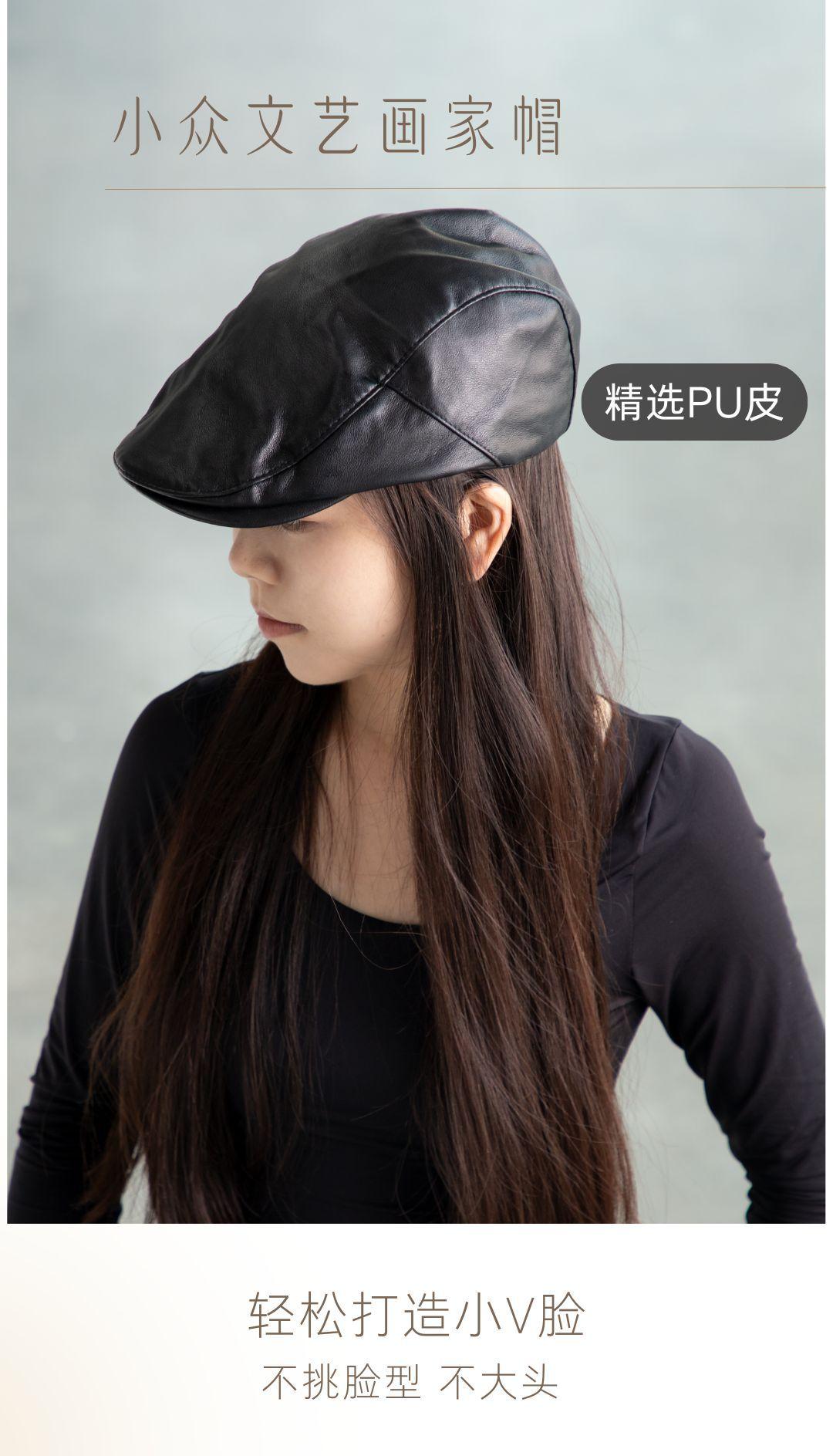 2025 Nuevo Sombrero de Pintor Cool de Cuero PU para Mujer Versátil Adelgazante para la Cara Sombrero Adelantado Boina Yuppie de Pico de Pato