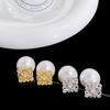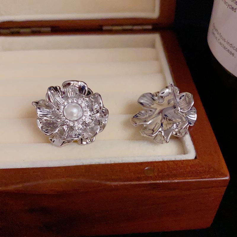silver-three-dimensional metal pearl flower earrings (thick gold plating)