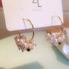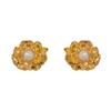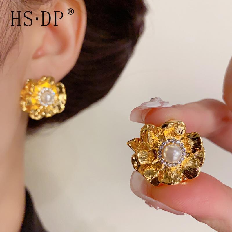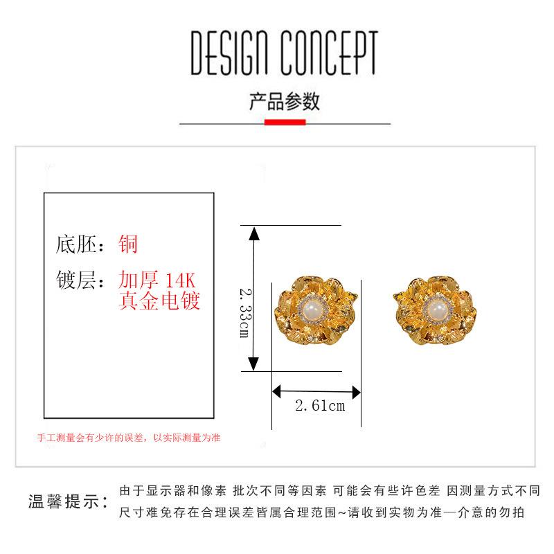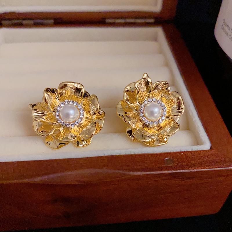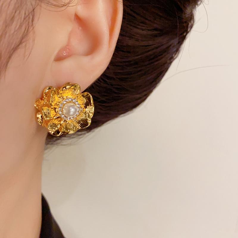 Gold-three-dimensional metal pearl flower earrings (thick gold plating)