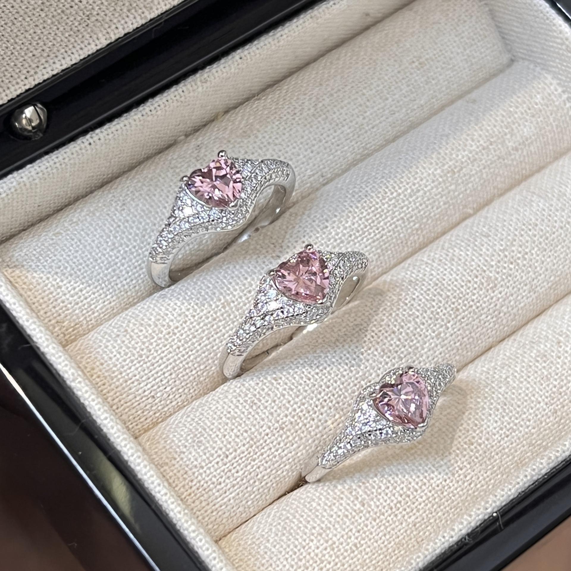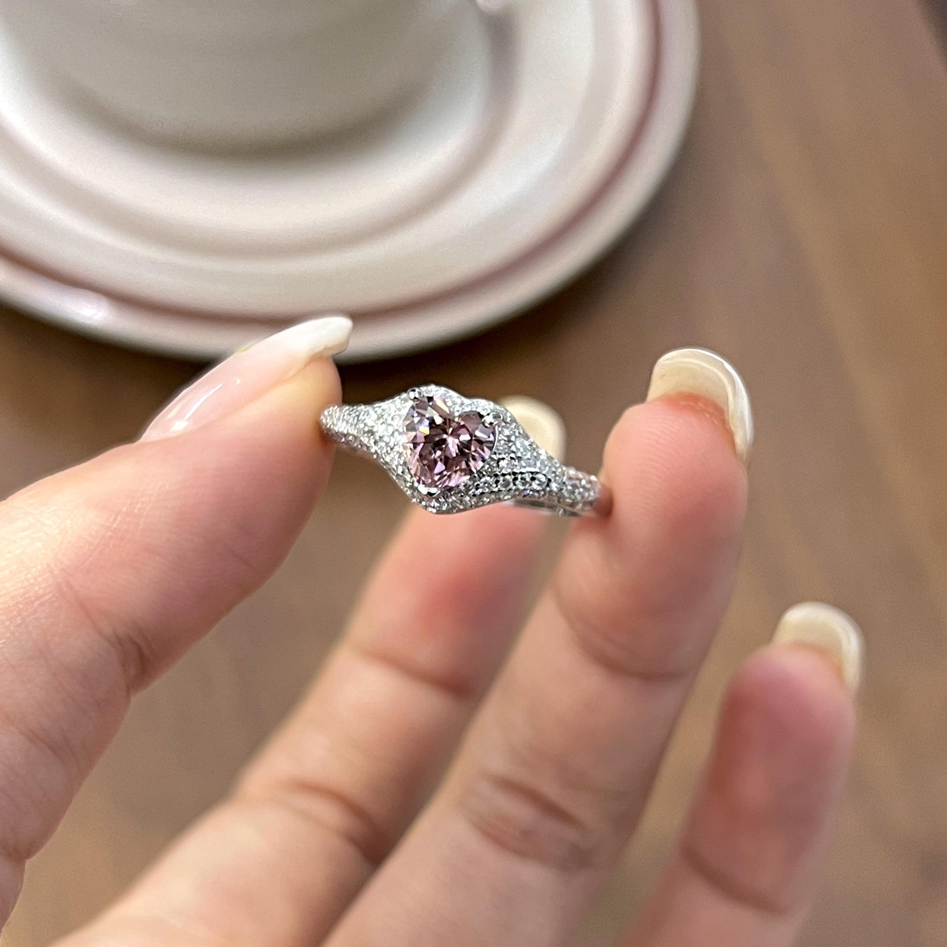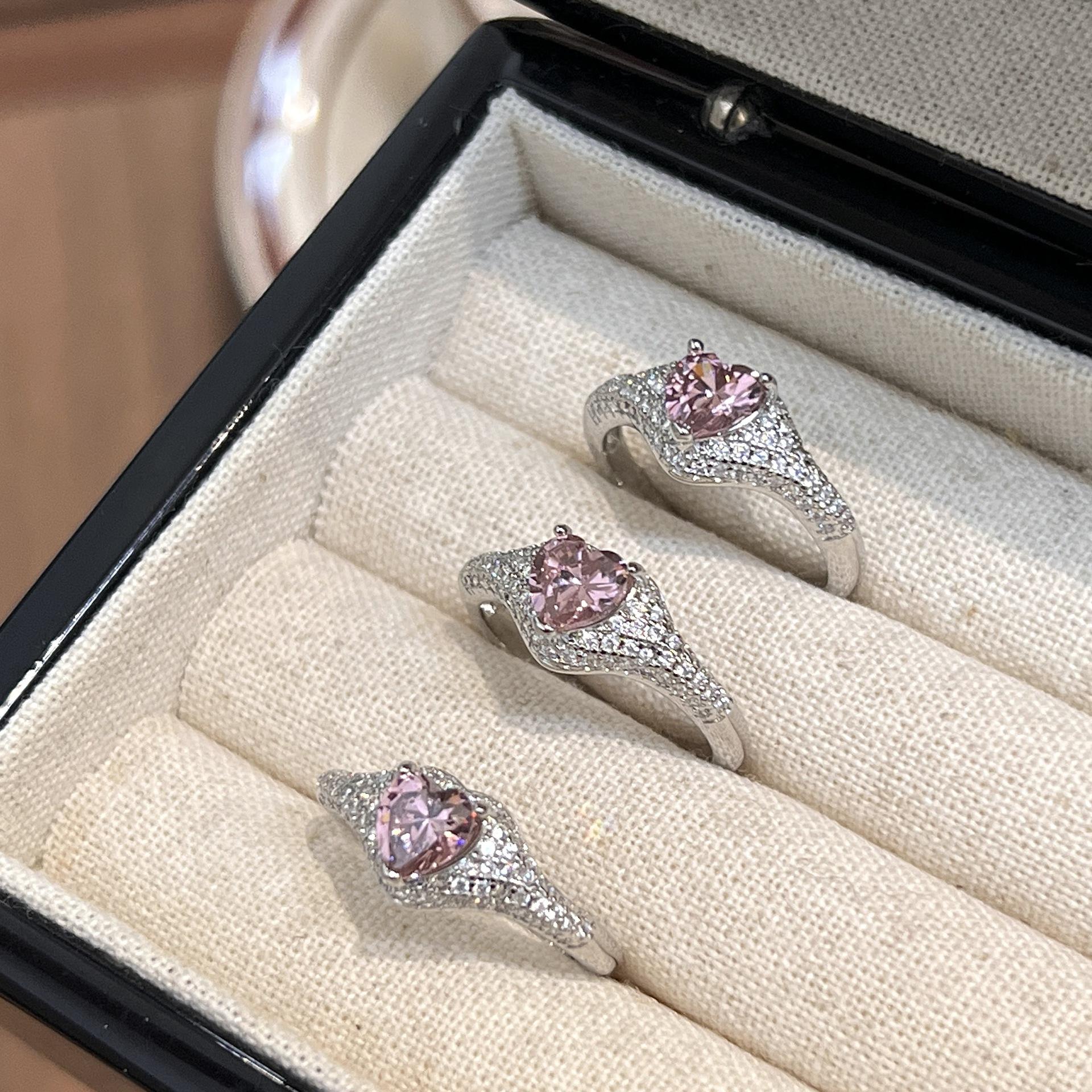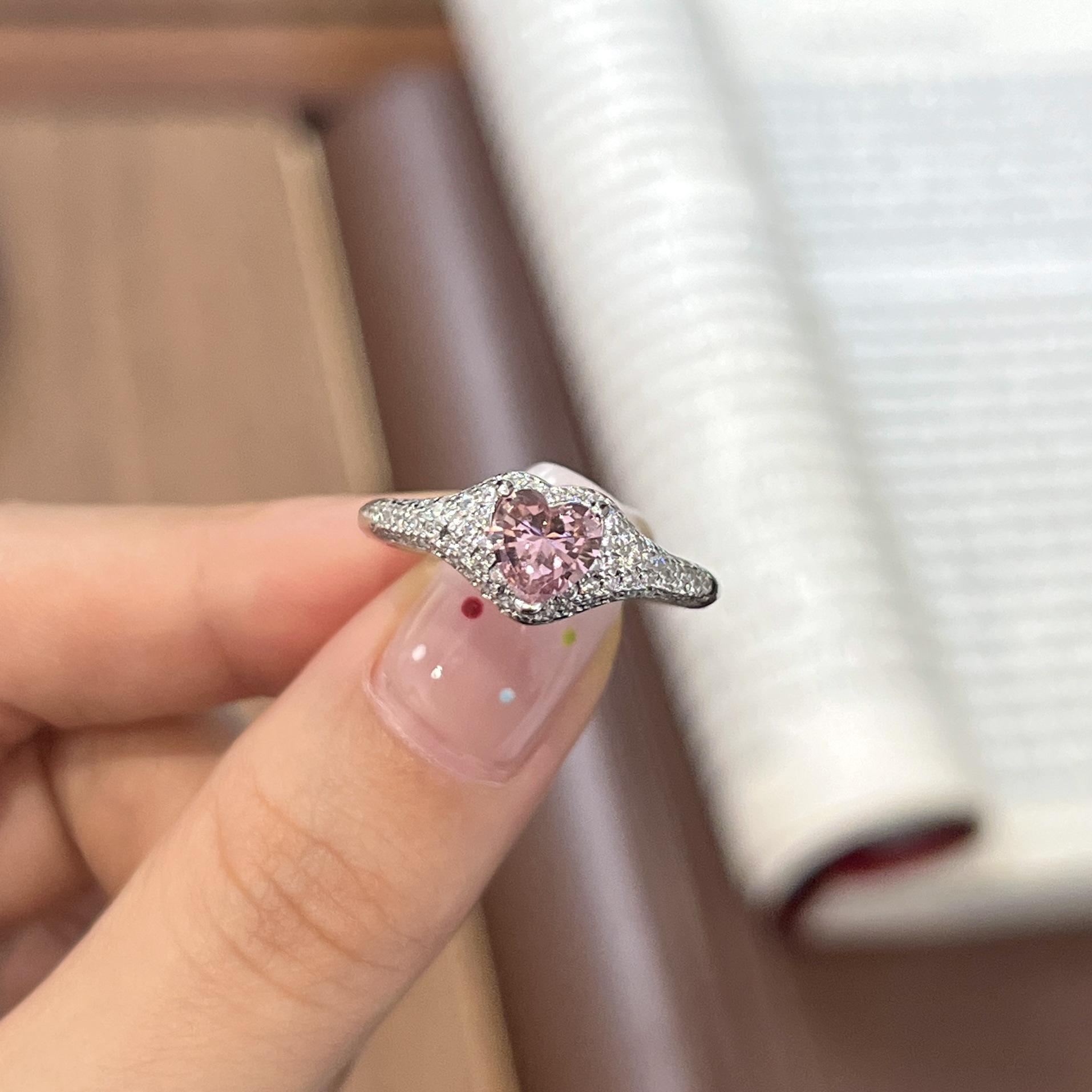 Anillo de Diamantes Completos Incrustados de Lujo Ligero y Sensación de Alta Gama Diamante Rosa Amor Retro Uso Superpuesto Dulce Lujo Nicho Elegante Anillo de Dedo