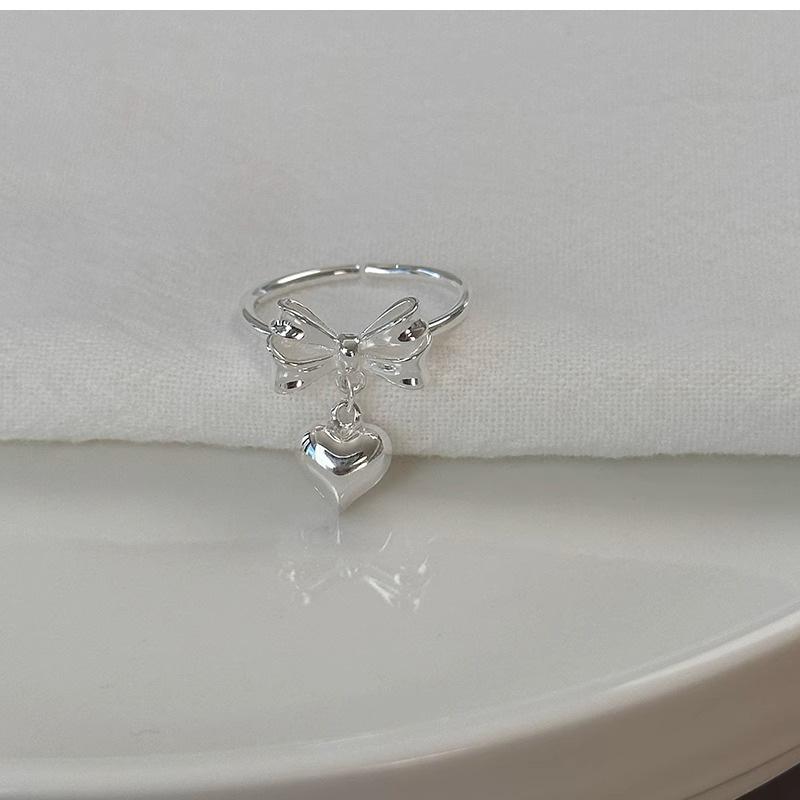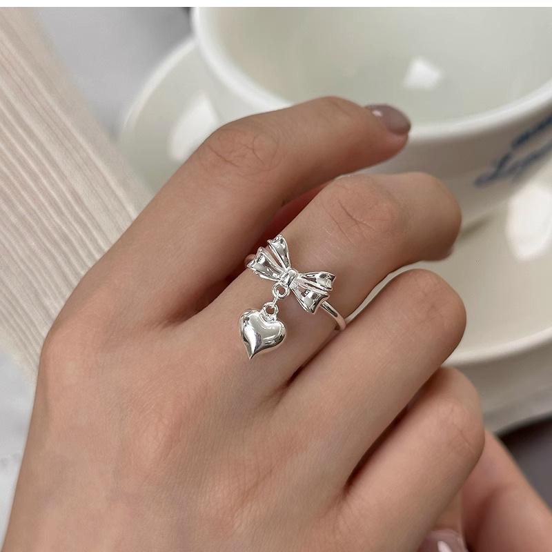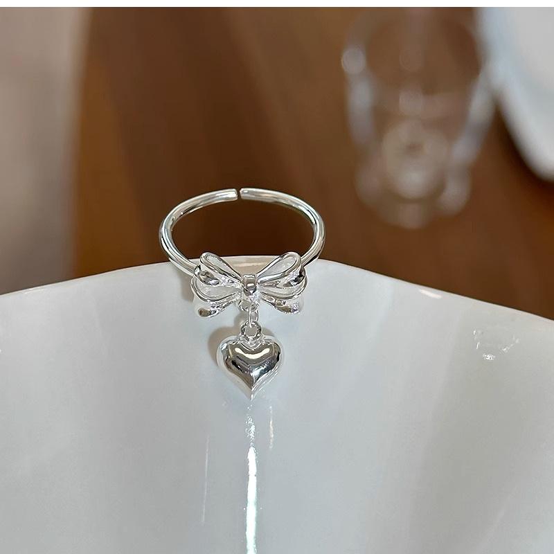 Anillo colgante de lazo tridimensional para mujer, apertura ajustable, diseño de nicho de alta gama de lujo ligero, accesorios de anillo de dedo de comida