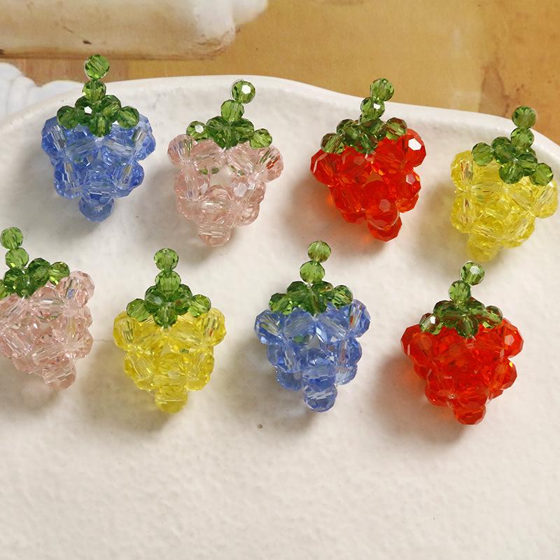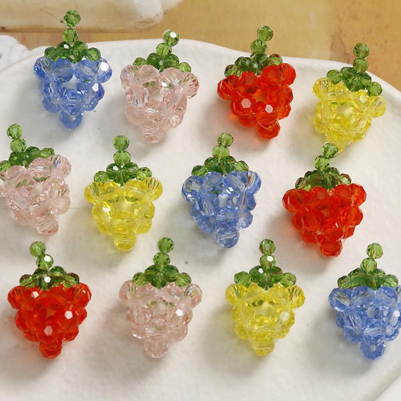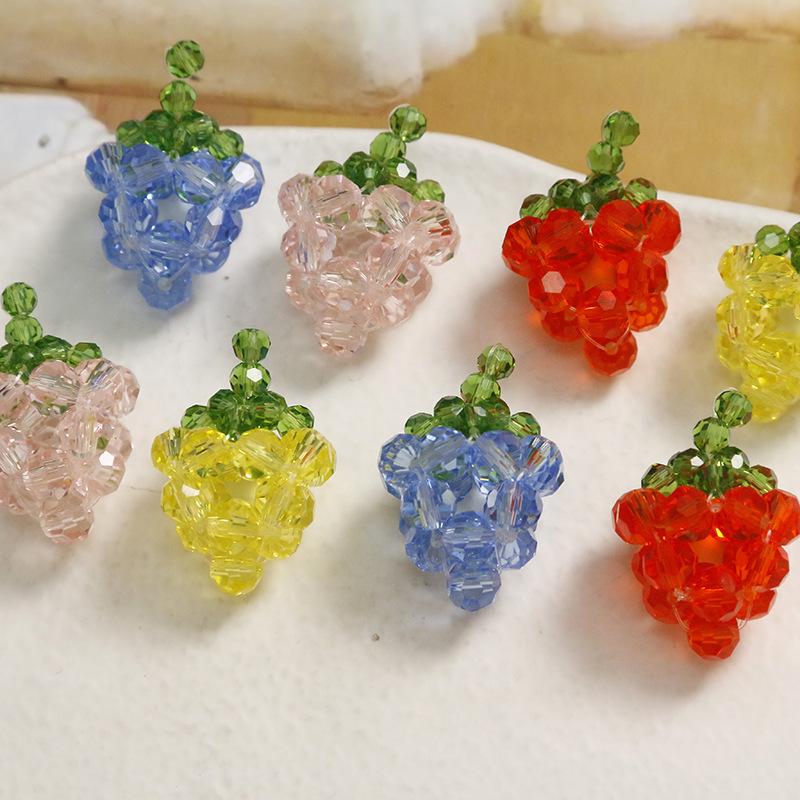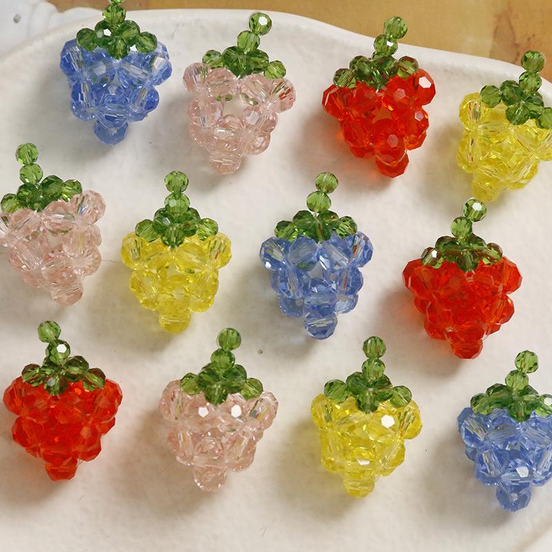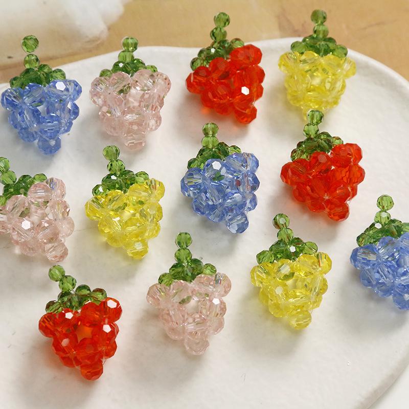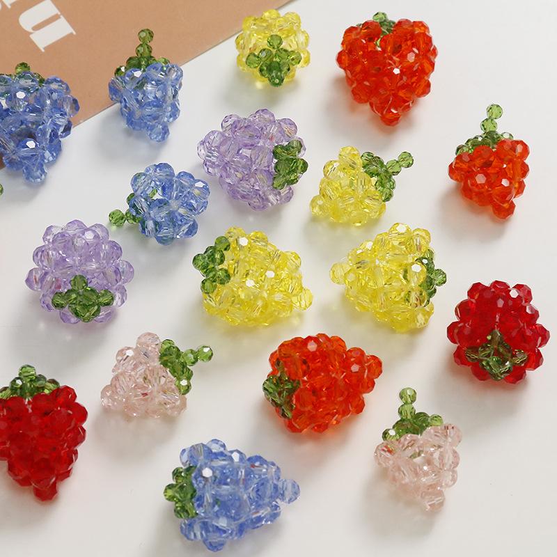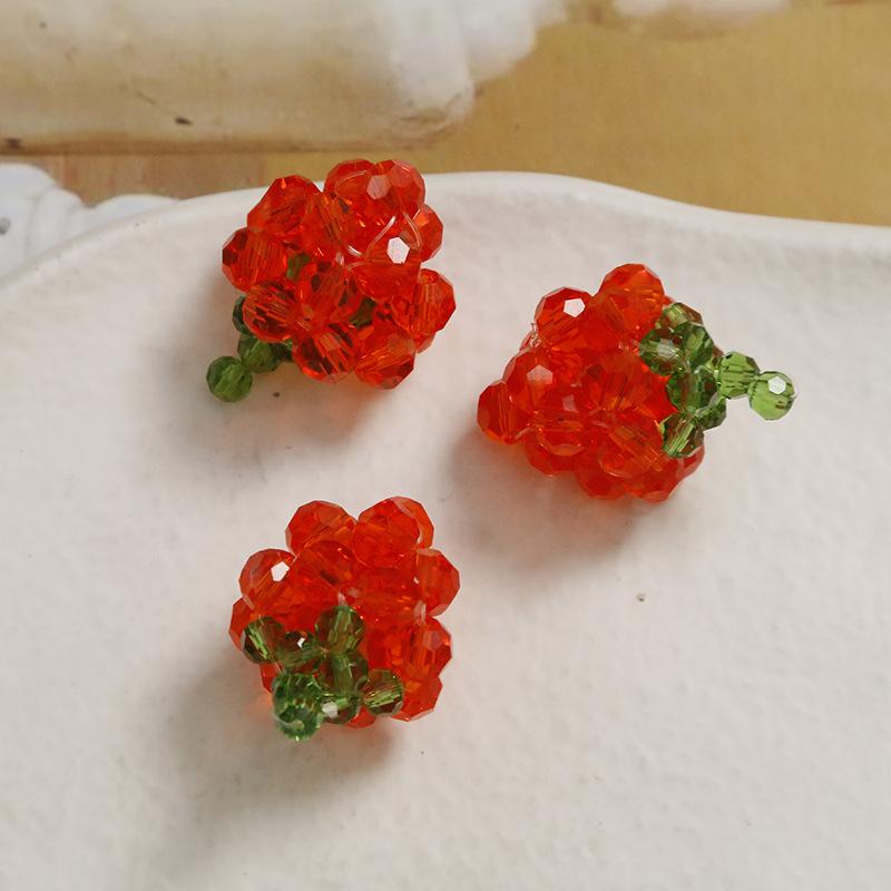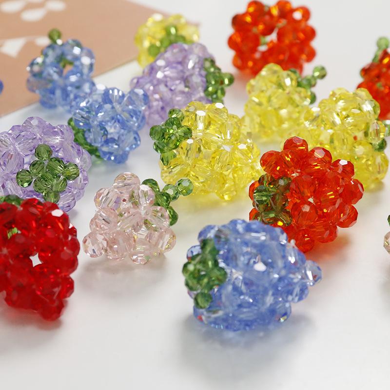 Horquillas para el cabello con cuentas tejidas a mano, accesorios para el cabello, pendientes, material al por mayor, con fresas de cristal tridimensionales frescas y dulces