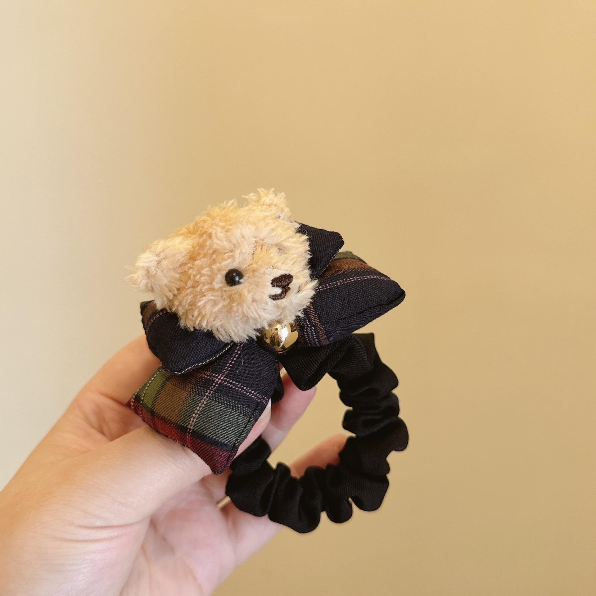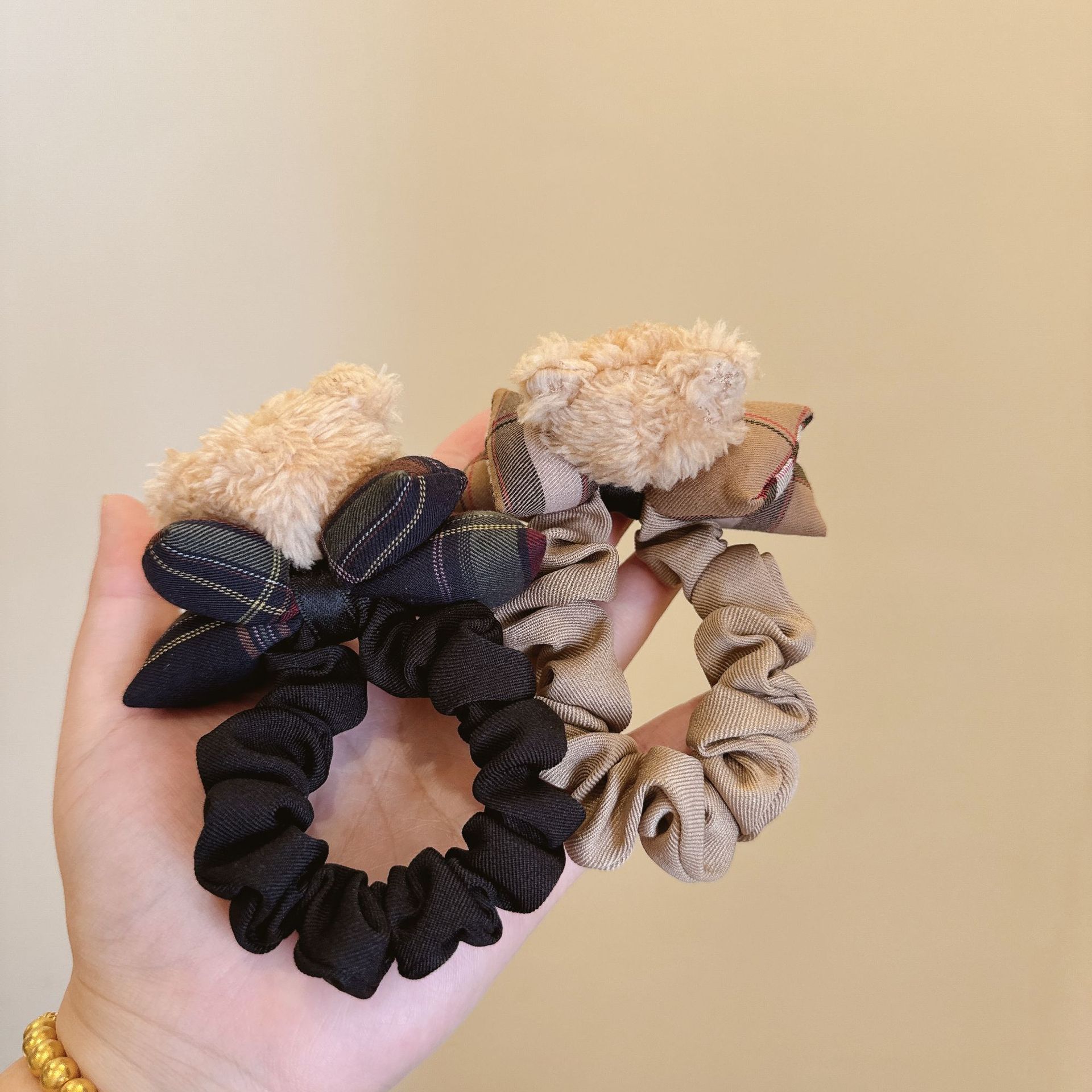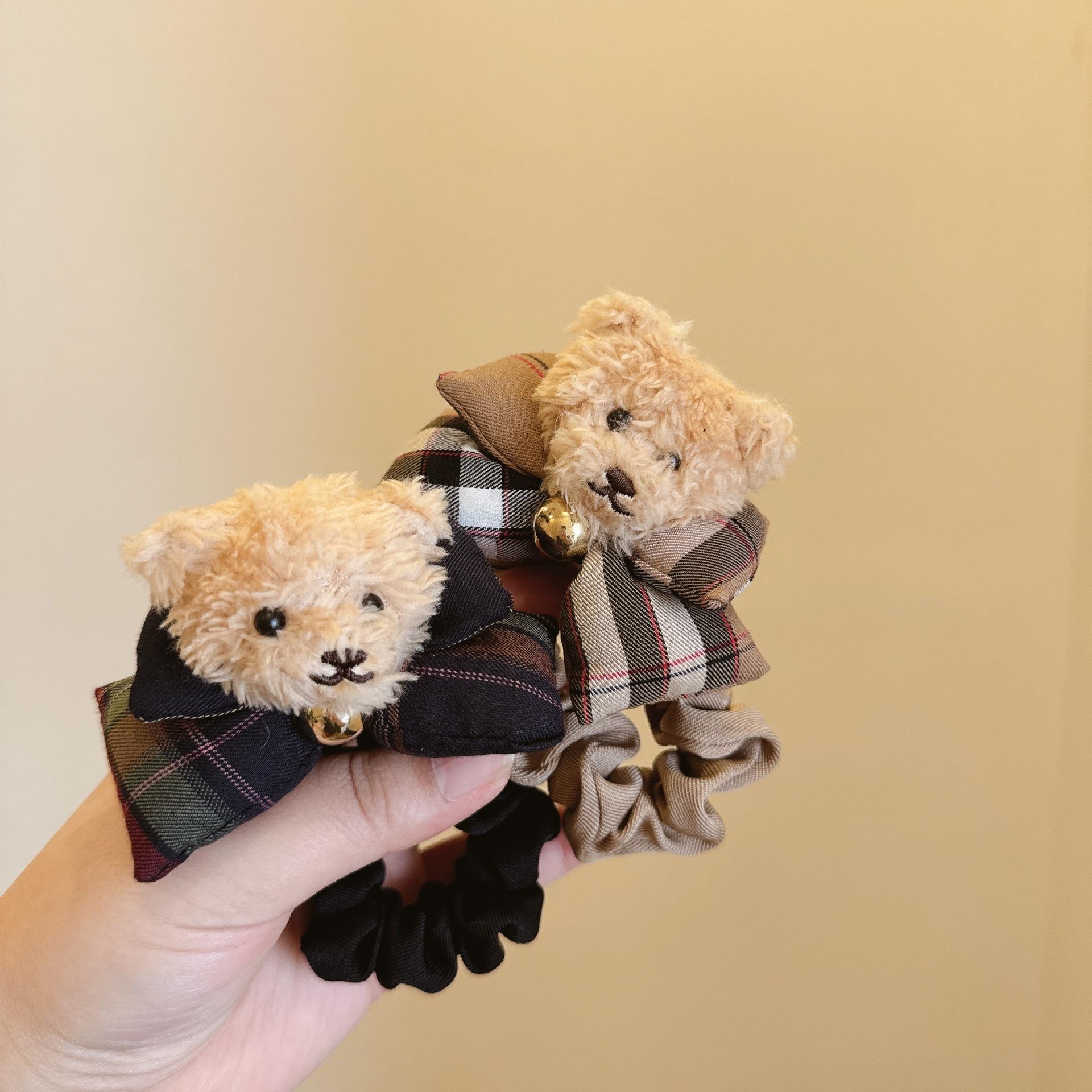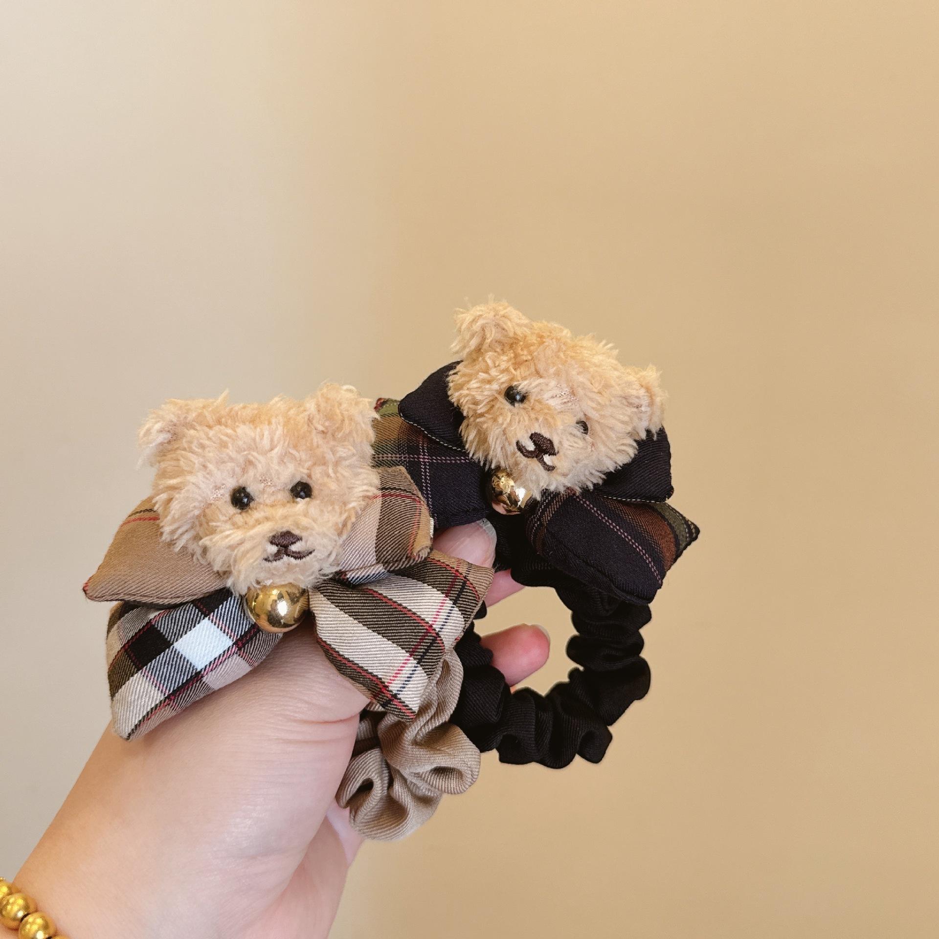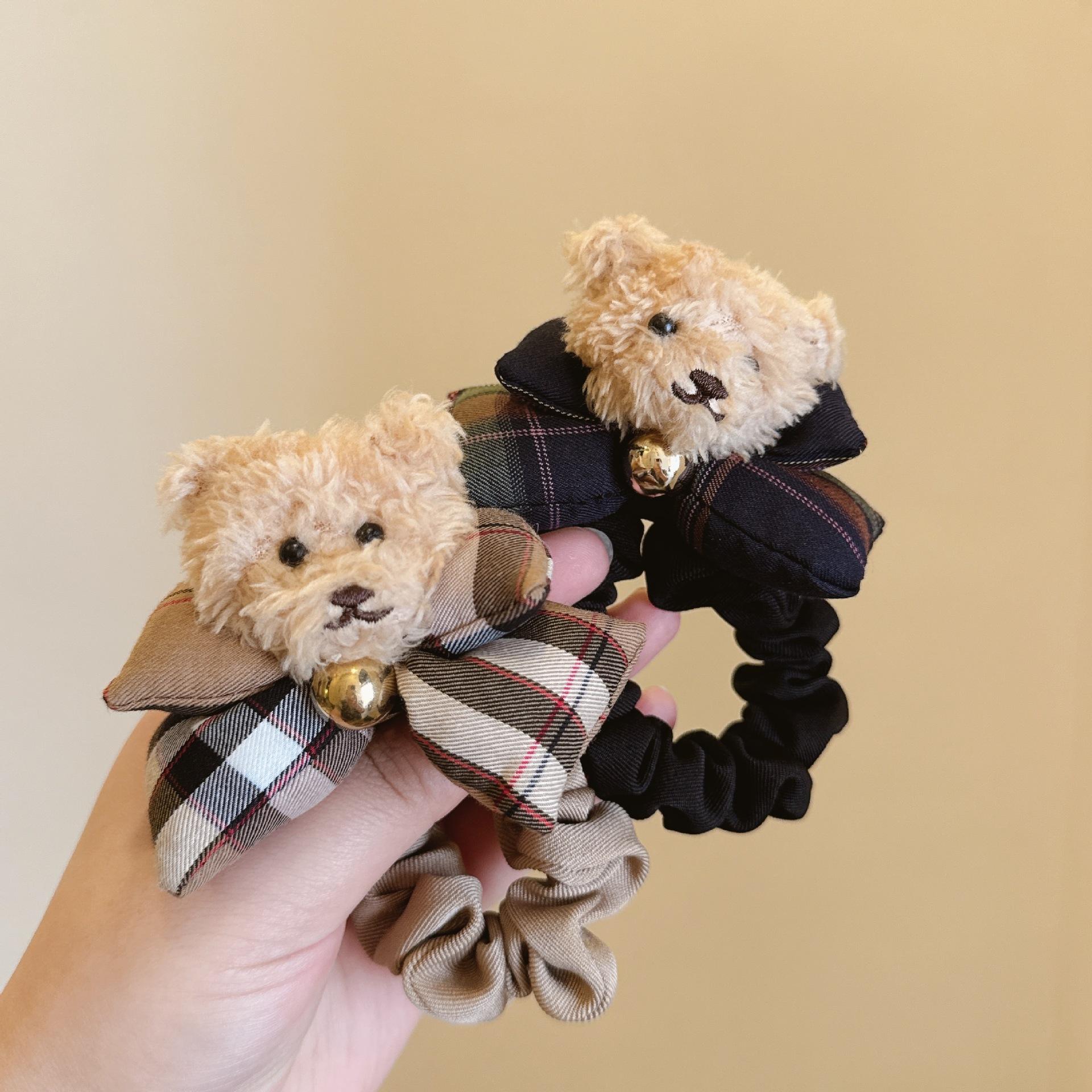 ¡Lazo para el pelo con diseño de oso a cuadros! Nuevos accesorios para el cabello con lindas caricaturas de otoño e invierno para niñas, accesorios para el cabello con cuerda para mujeres.