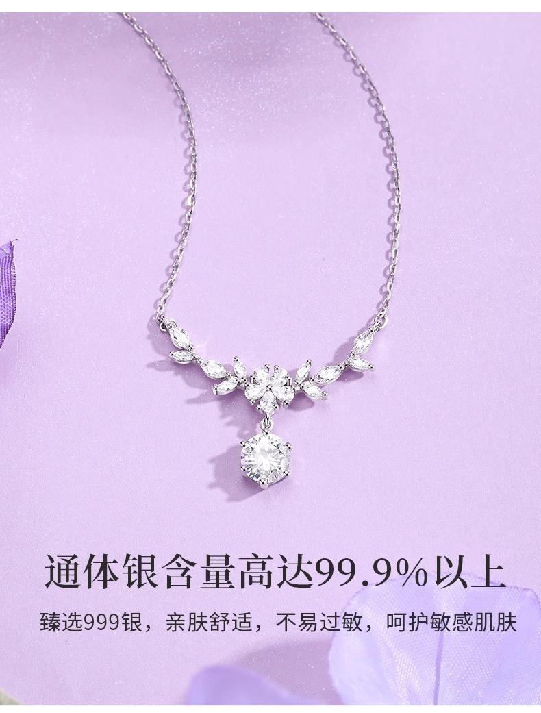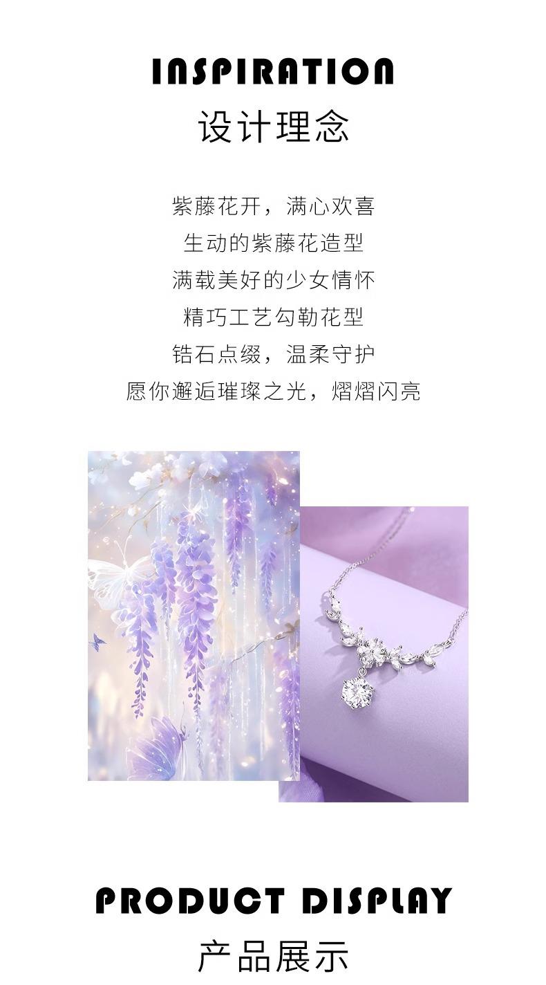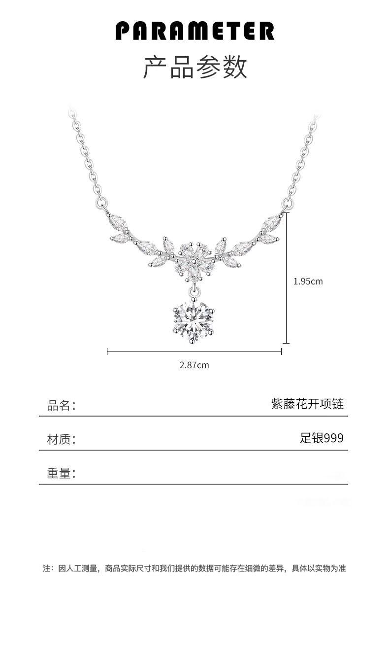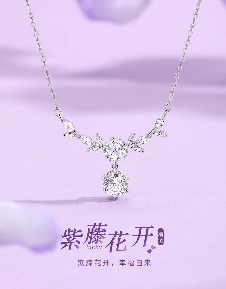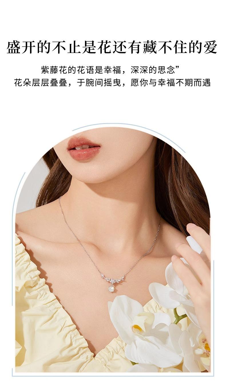 Collar de Flor de Glicina de Plata S999 Jin Hongsheng para Mujer Nuevo Explosiones Colgante de Alta Gama Creativo Combinable Cadena Clavicular