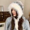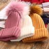 Moda Color Retro Correa de Bola de Pelo Sombrero Tejido para Mujer Otoño e Invierno Grueso Cálido a Prueba de Frío Protección para las Orejas Sombrero de Lana
