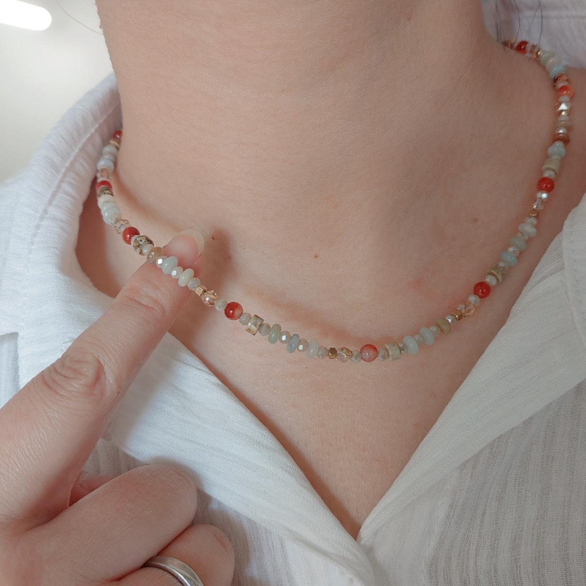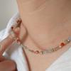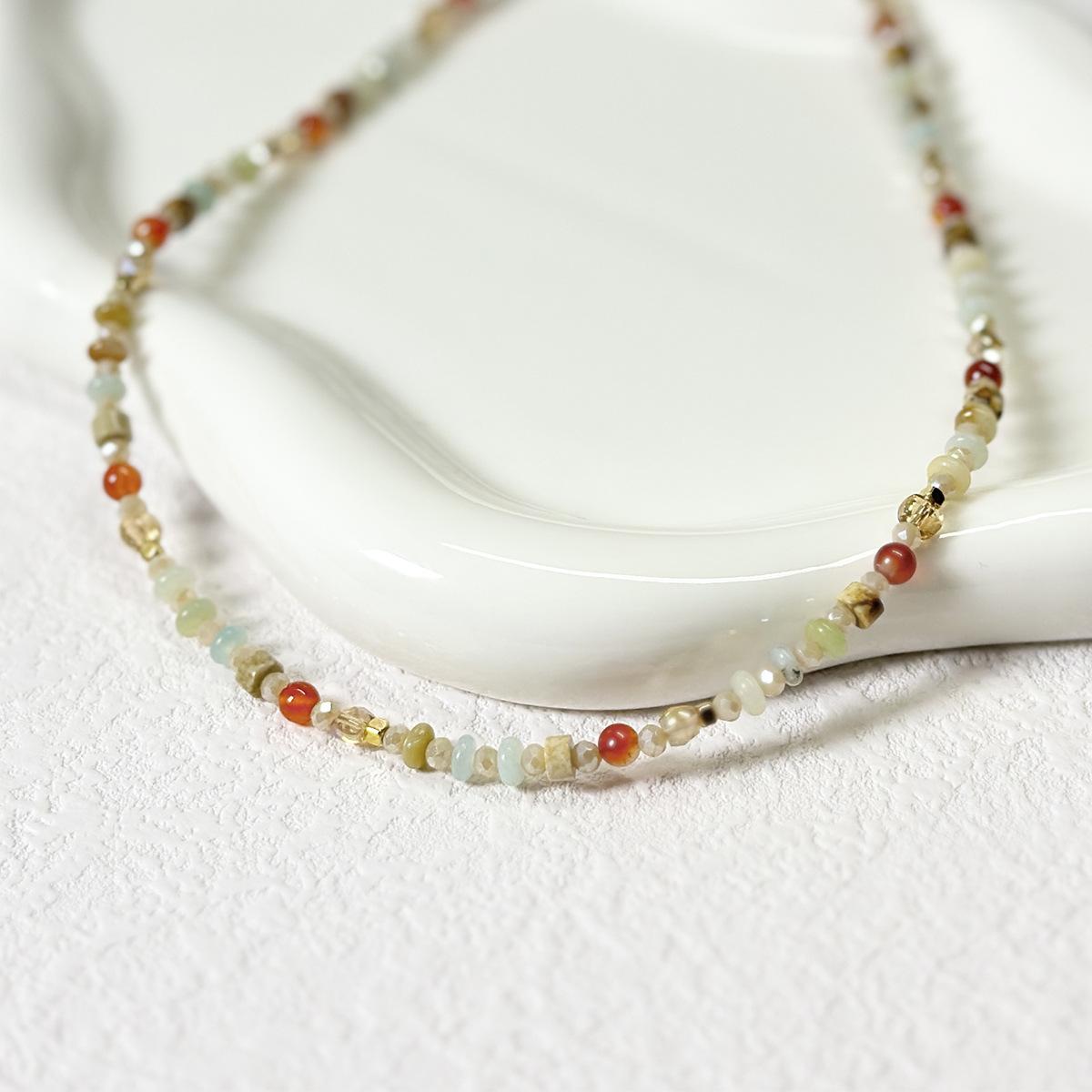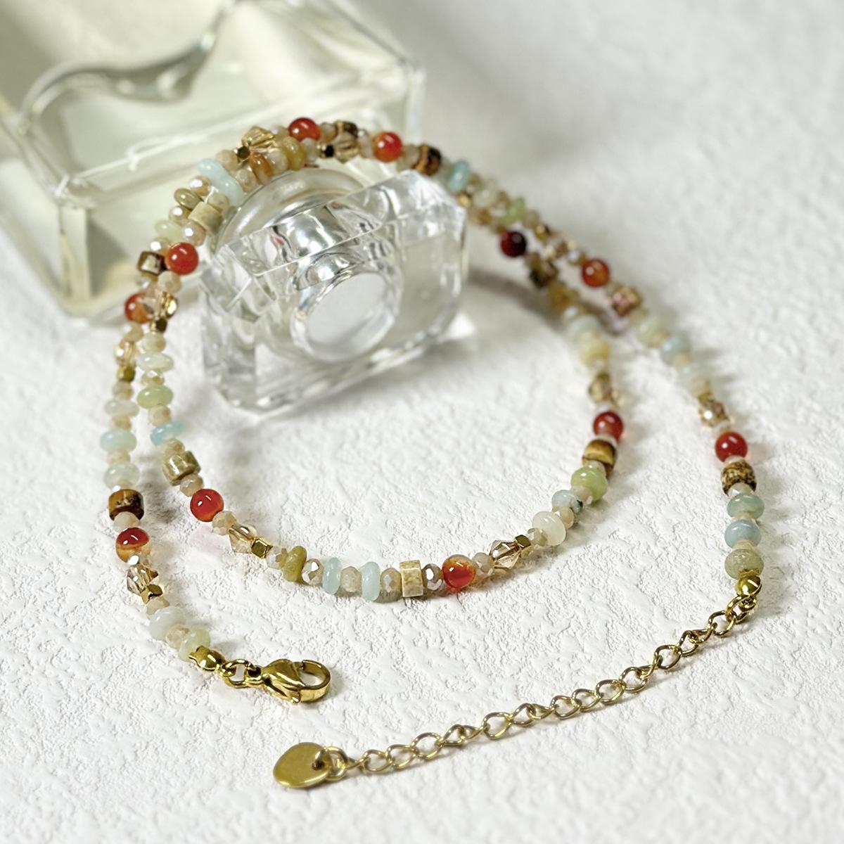 Nuevo collar de cuentas de cristal de piedra natural con diseño de nicho, moderno collar de cadena de clavícula de acero de titanio de alta calidad para mujer