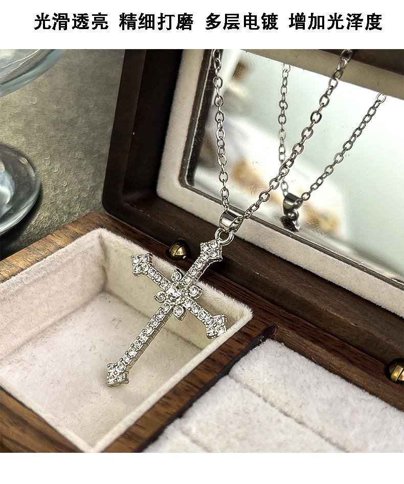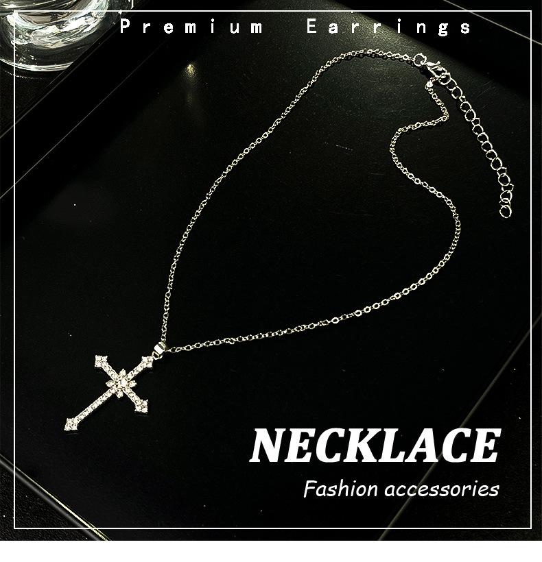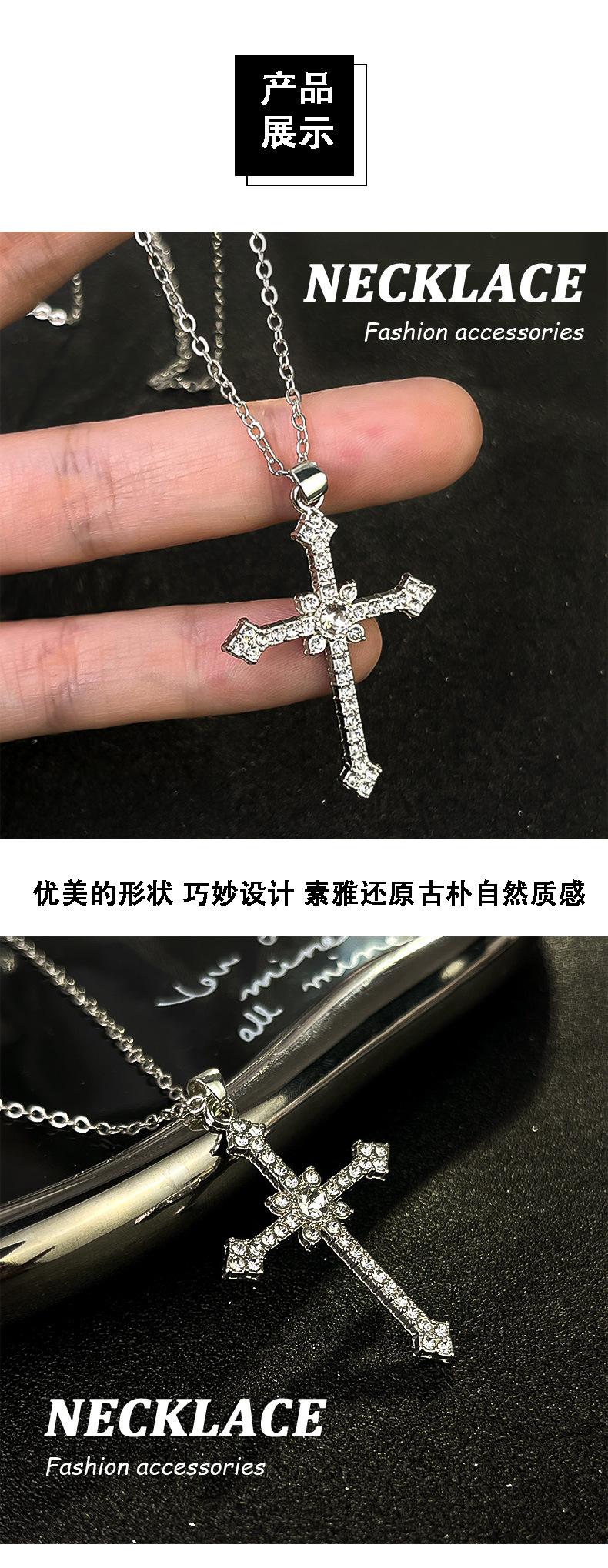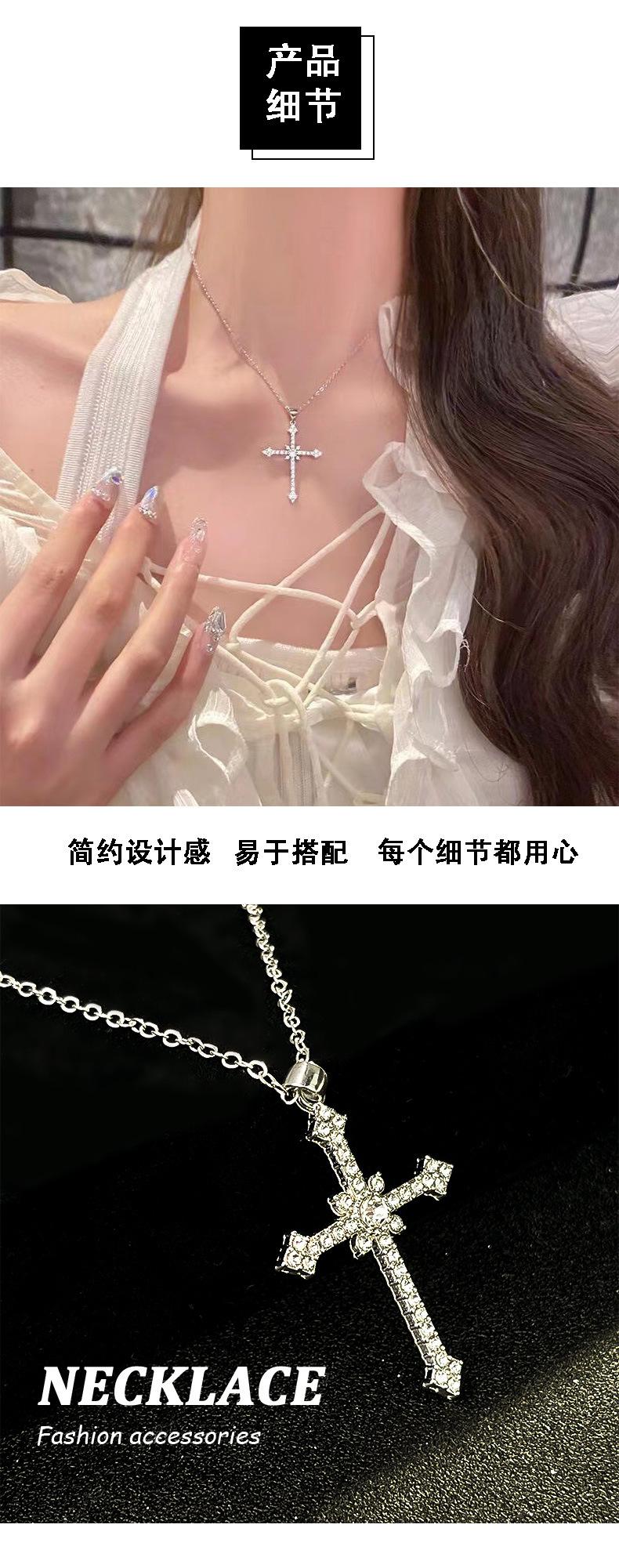 2024 Verano Nueva Moda Cadena de Cuello Diamante Completo Estrella Cruz Collar Viento Frío Dulce Cool Destello Diamante Colgante Cadena de Cuello