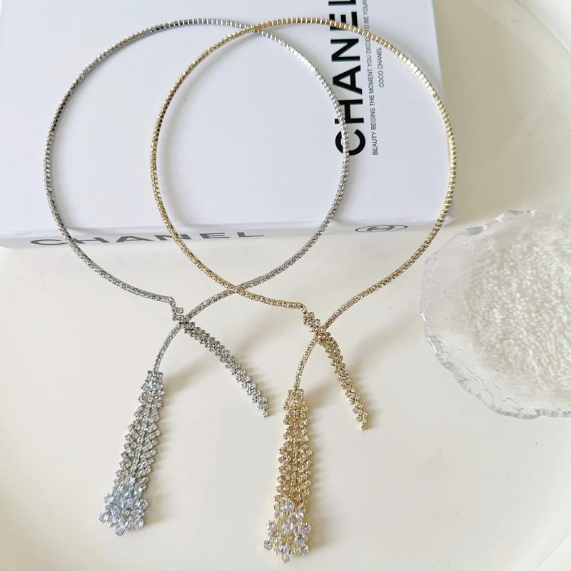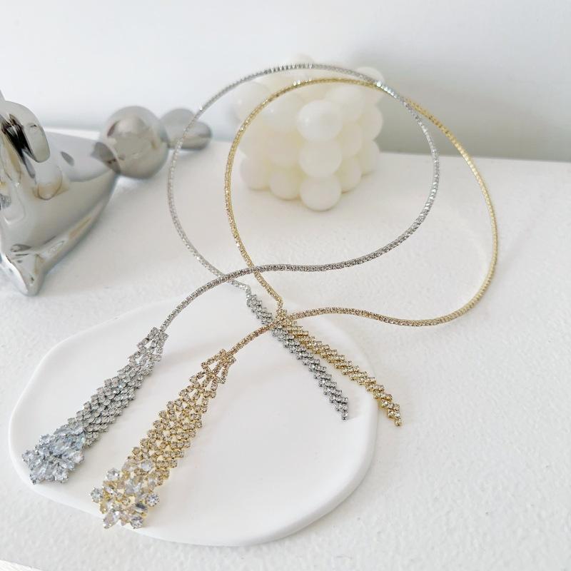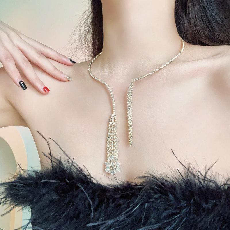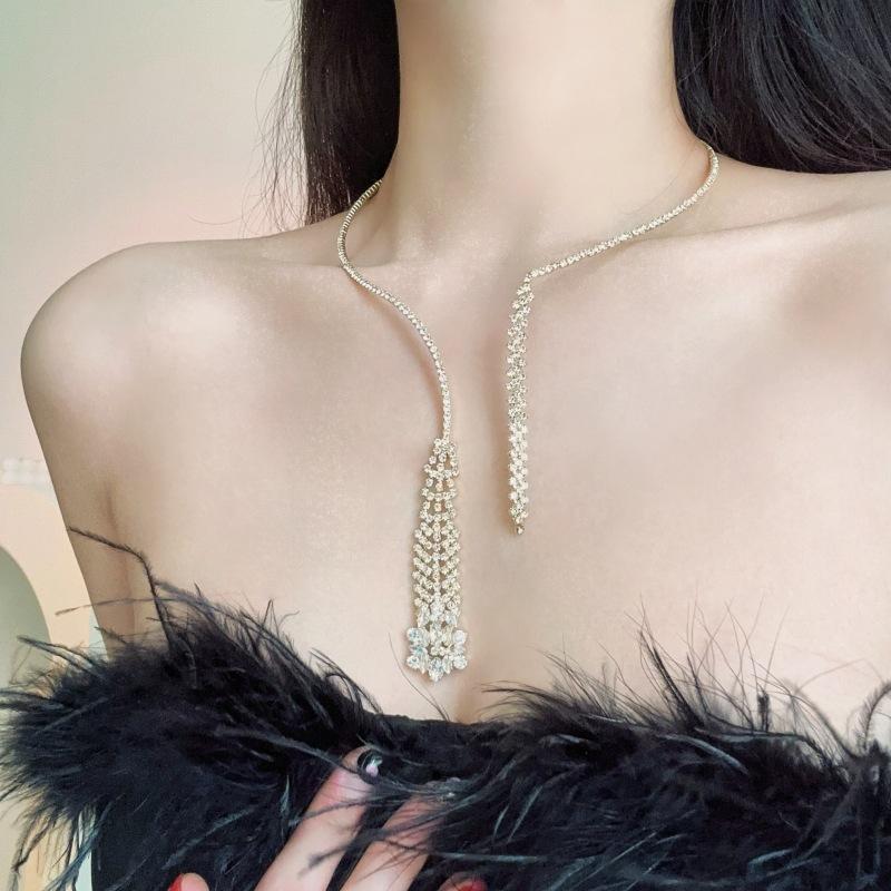 Collar con borlas de circonitas incrustadas con diamantes, cadena de clavícula de temperamento de alto grado europeo y americano, diseño versátil de nicho, joyería al por mayor para mujer