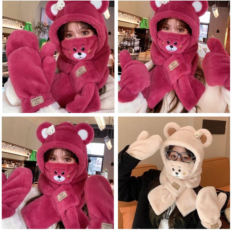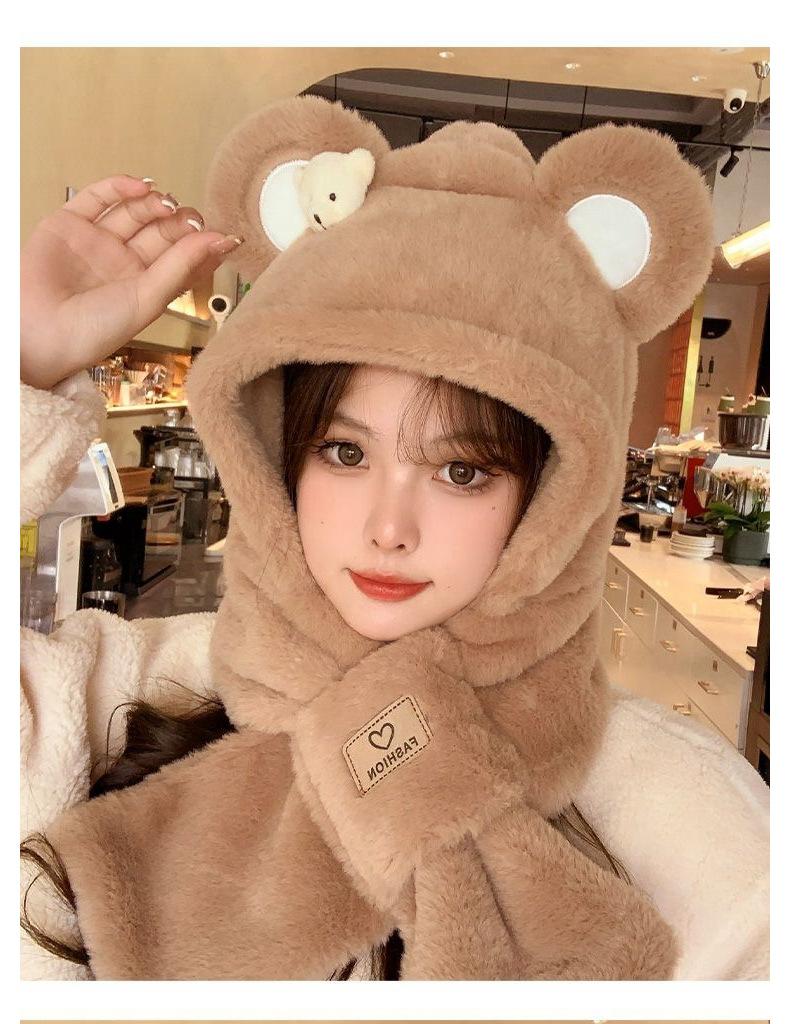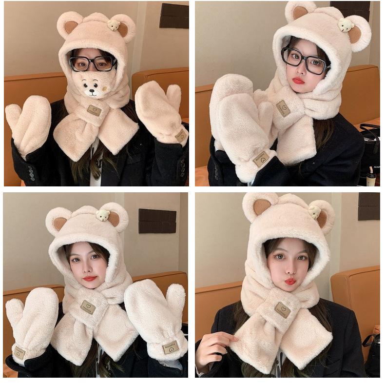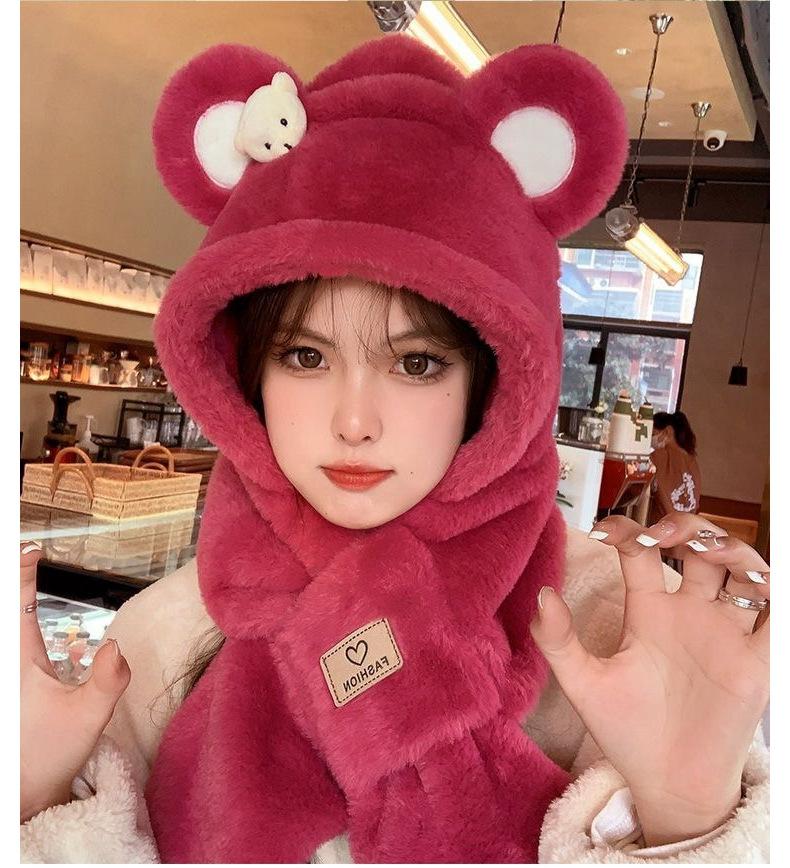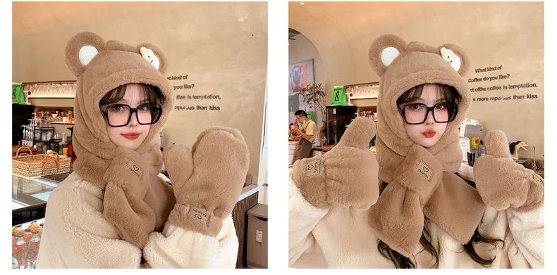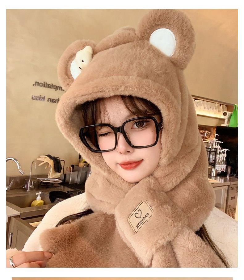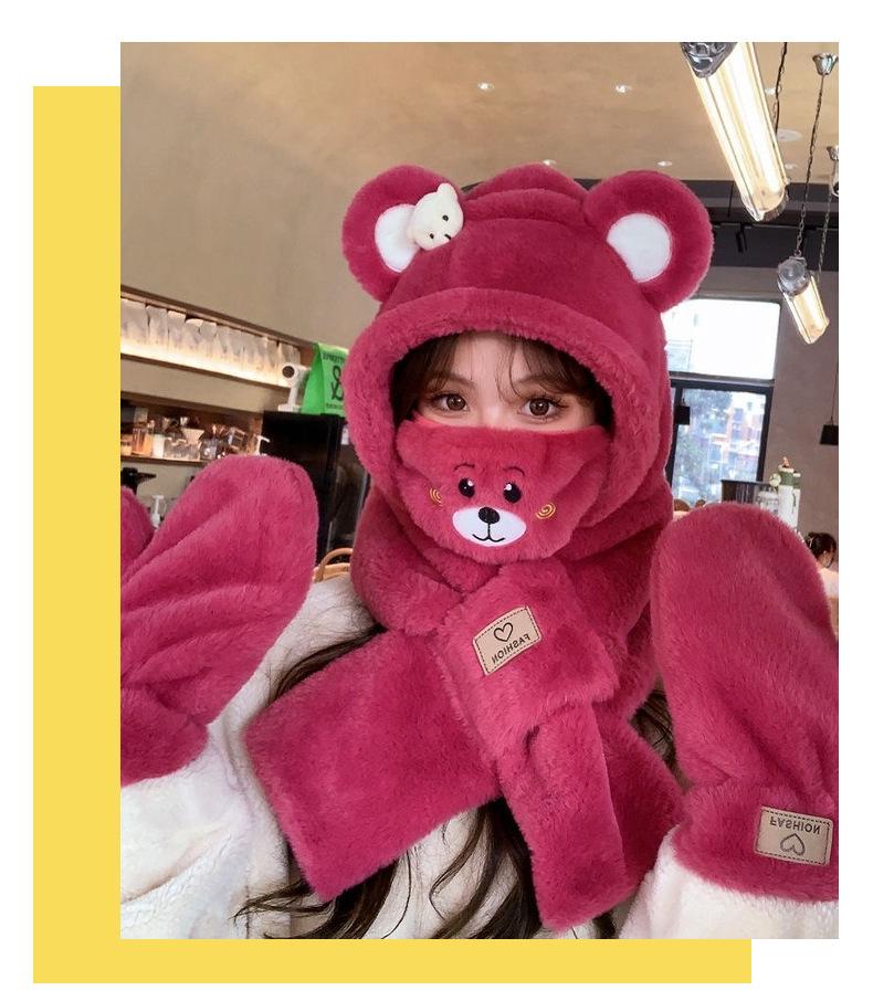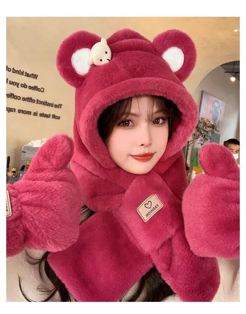 Set de Invierno para Adulto de Tres Piezas Sombrero Guantes Bufanda Dibujos Animados Xiaoneng Selecciones de Influencer Venta al por Mayor Imitación de Piel de Conejo Espesada