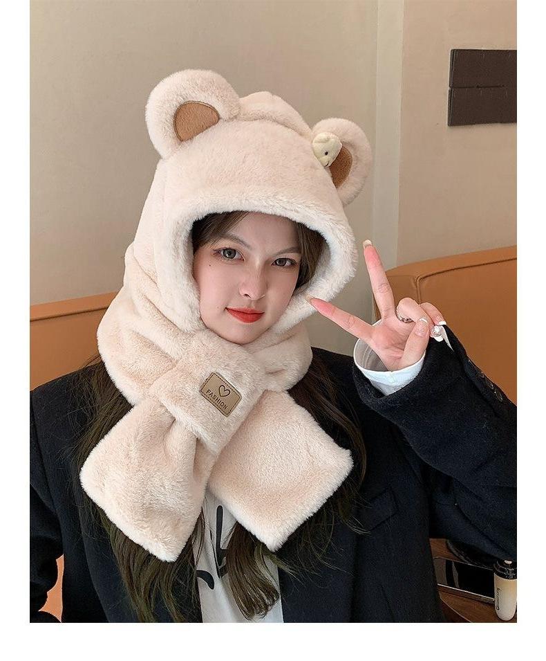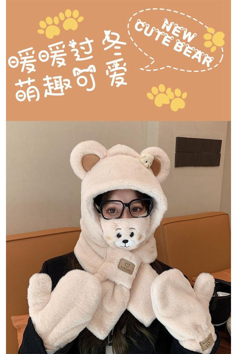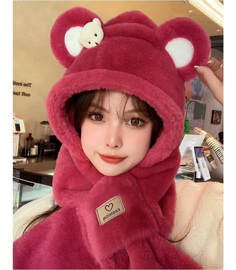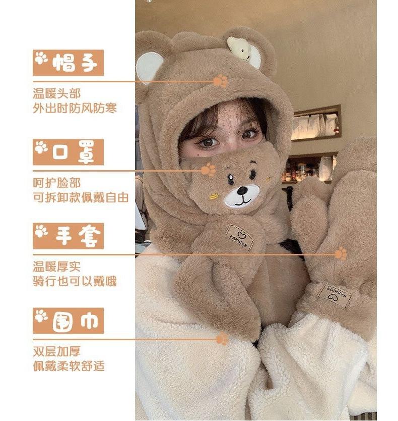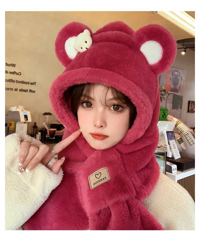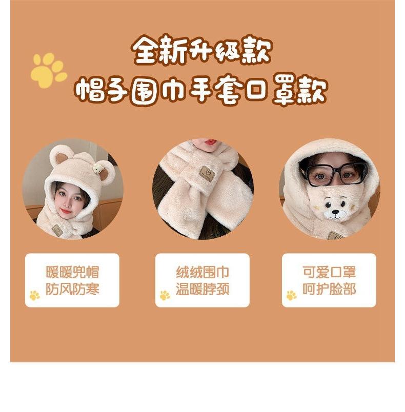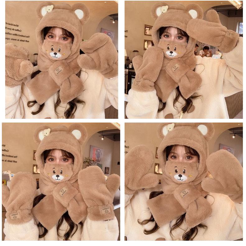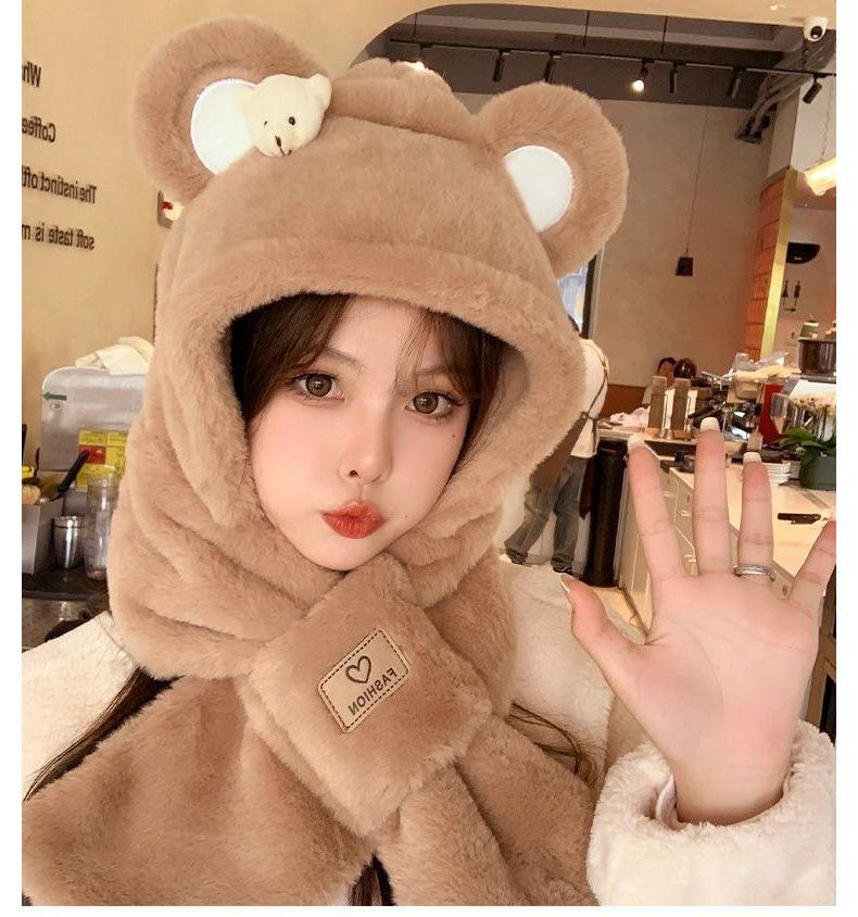 Set de Invierno para Adulto de Tres Piezas Sombrero Guantes Bufanda Dibujos Animados Xiaoneng Selecciones de Influencer Venta al por Mayor Imitación de Piel de Conejo Espesada