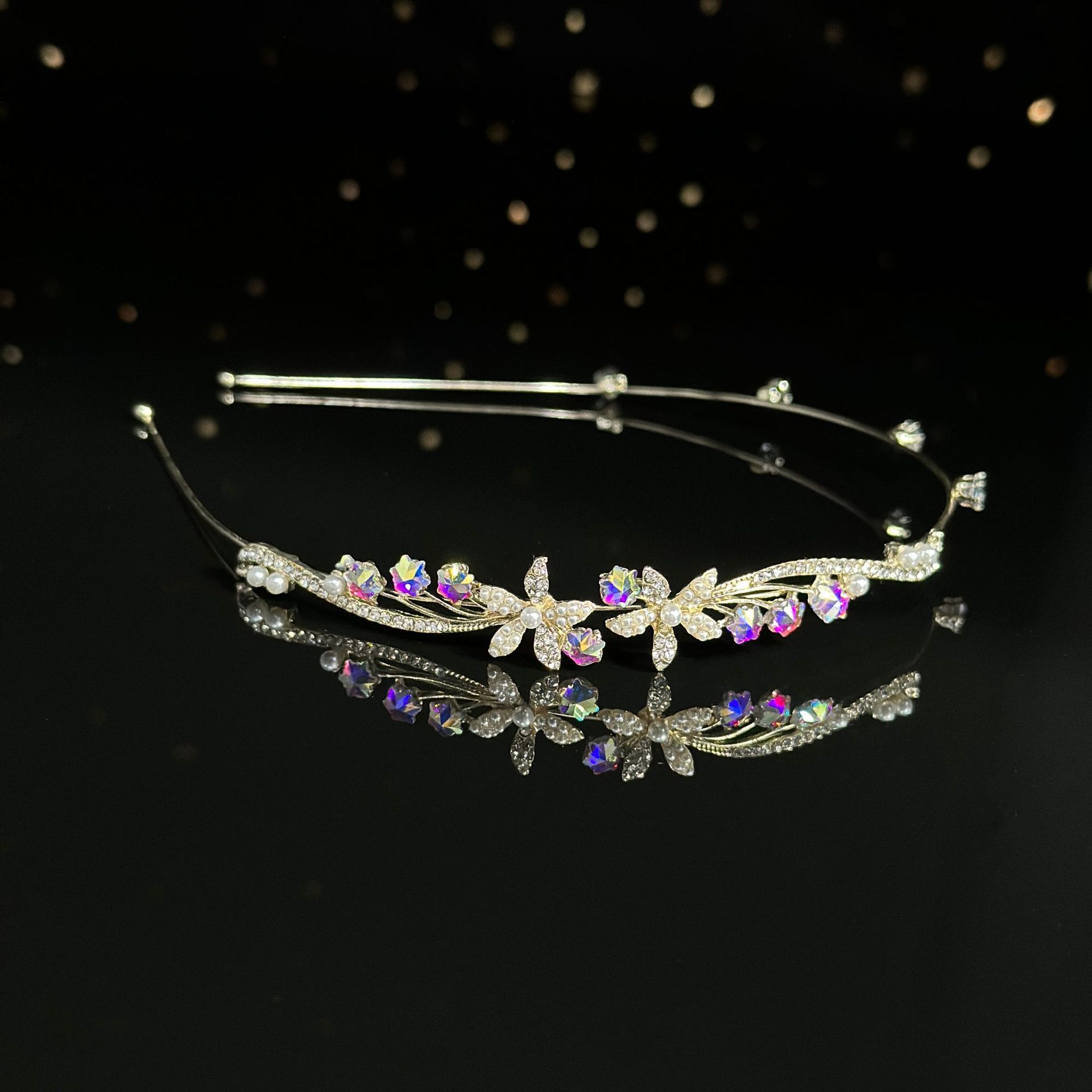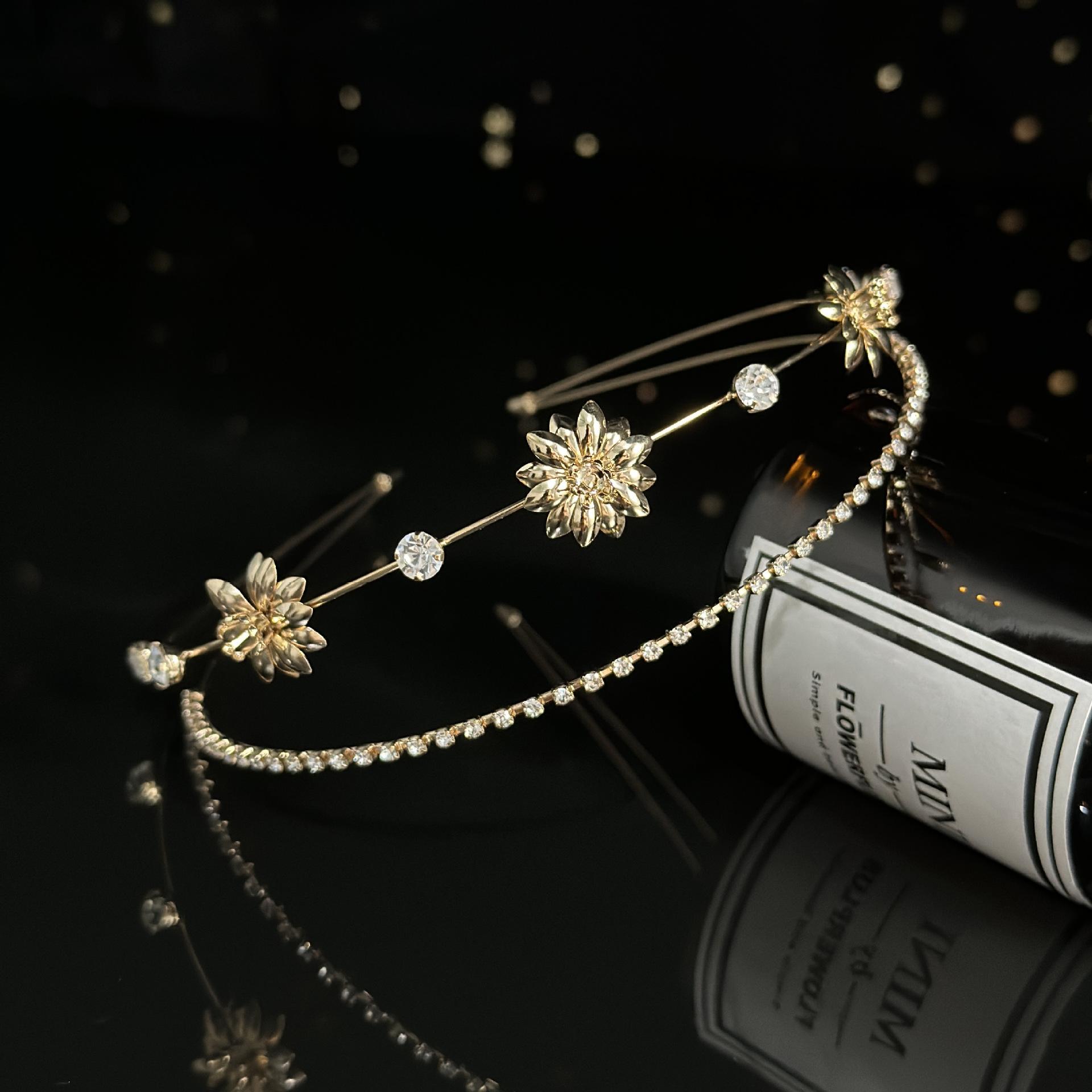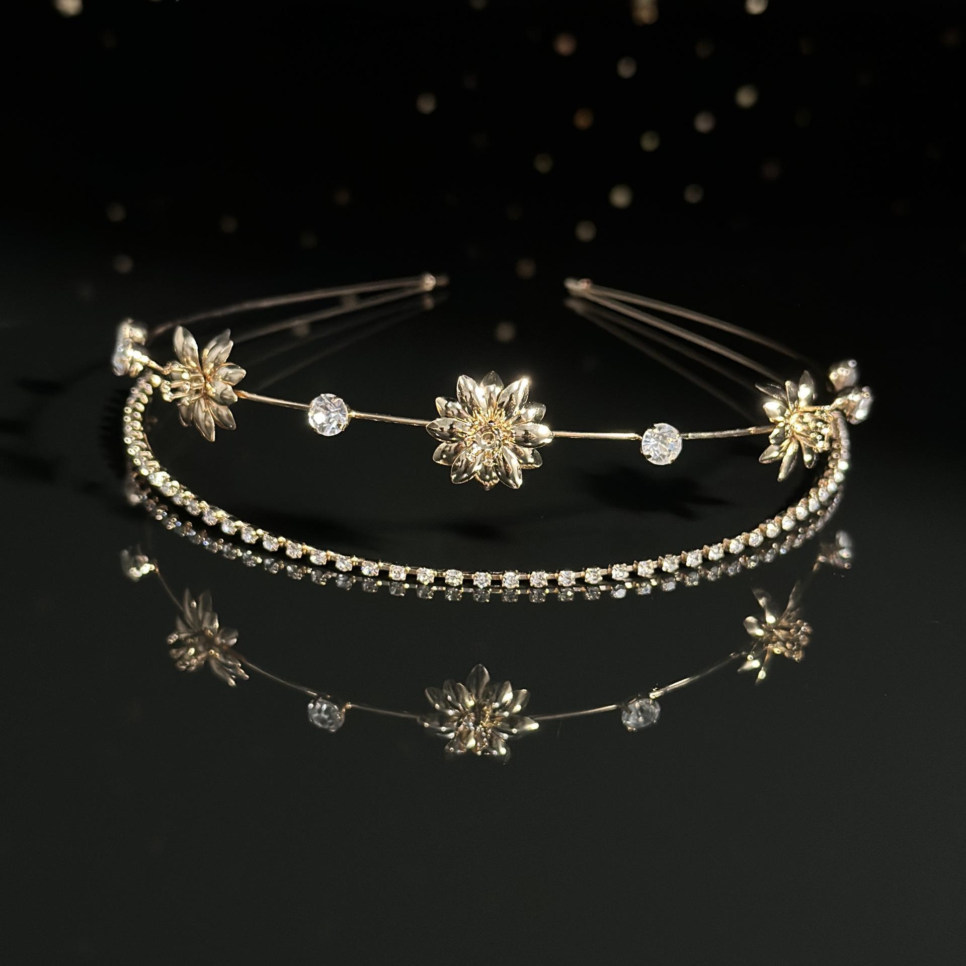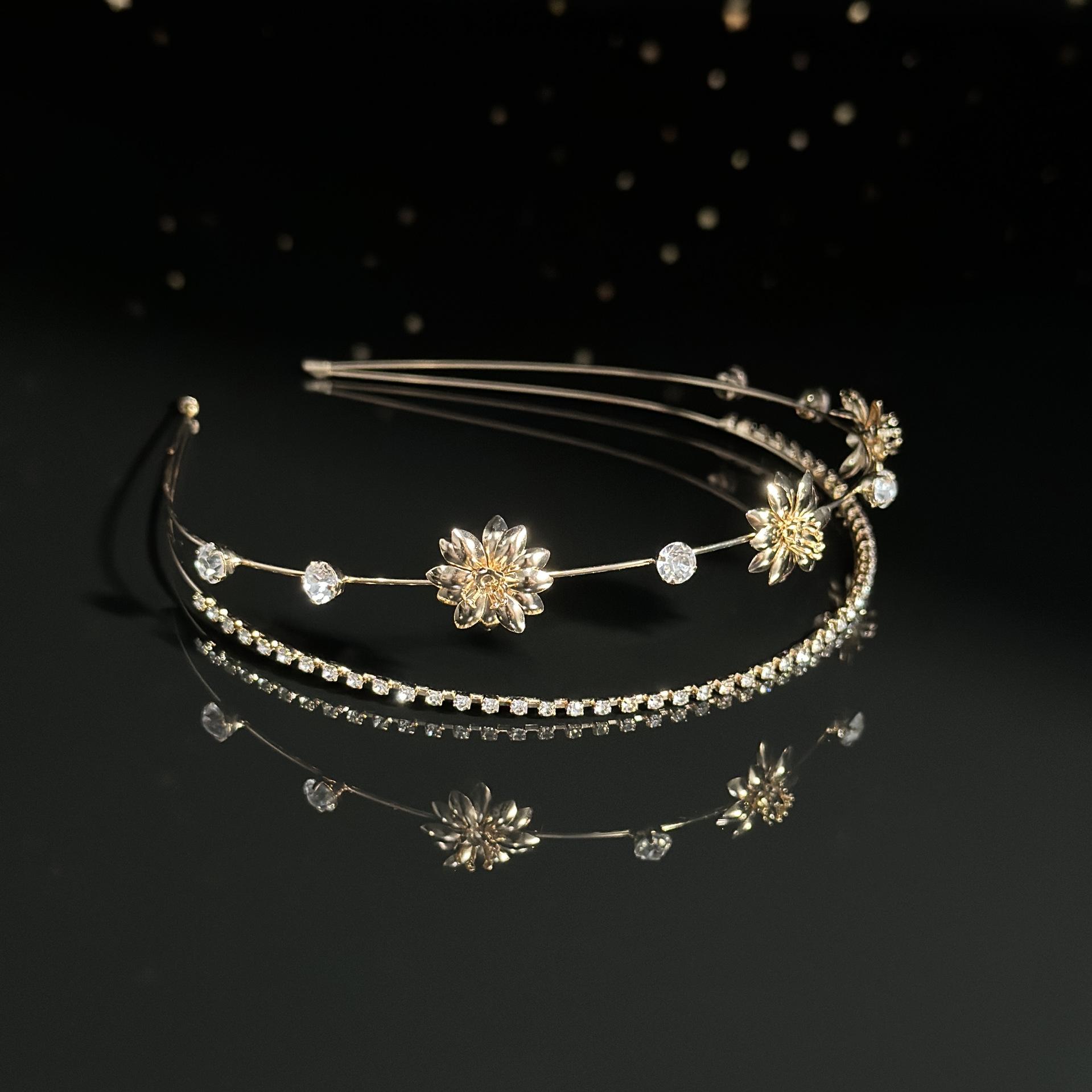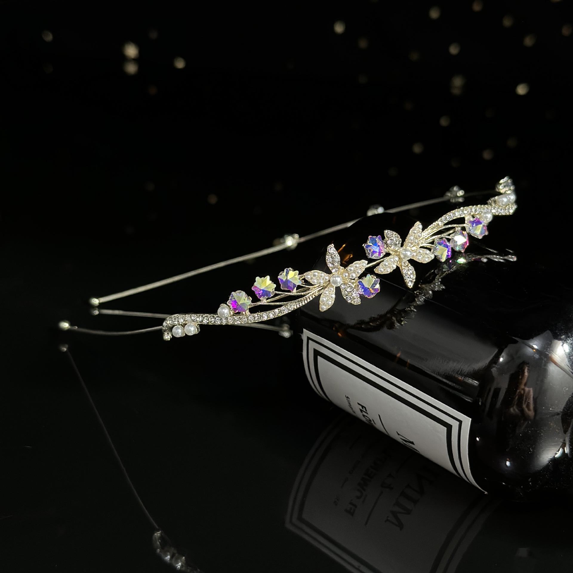 2024 Celebridad de Internet Nuevo Estilo Diadema de Aleación de Perlas Super Hada Luz Lujo Banda para el Cabello para Mujer Parte Superior Craneal Alta para Mujer Exquisito Tocado Estilo Mori para Mujer