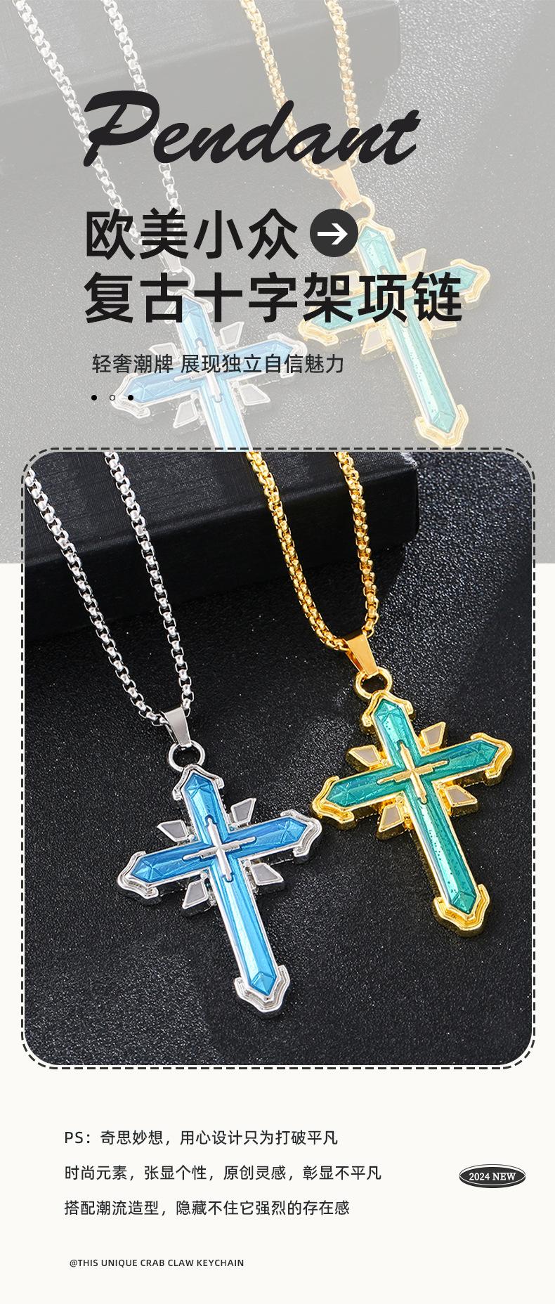 Nuevo collar vintage de hip-hop, moda europea y americana, colgante de pareja de tres capas con cruz, colgante personalizado de moda al por mayor