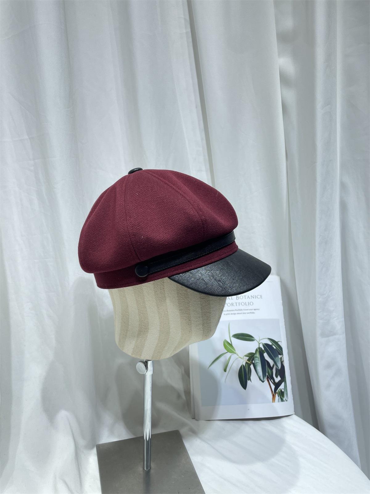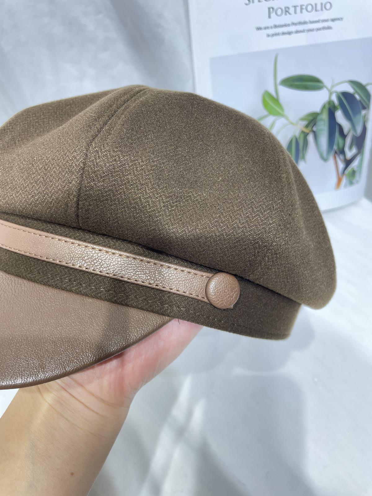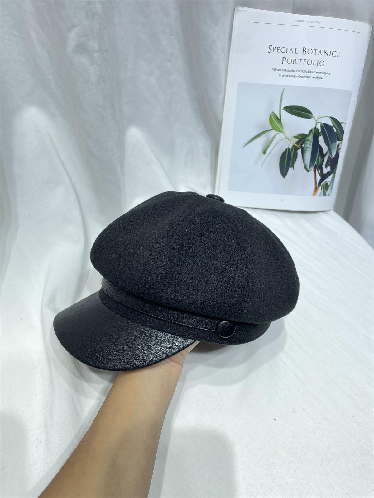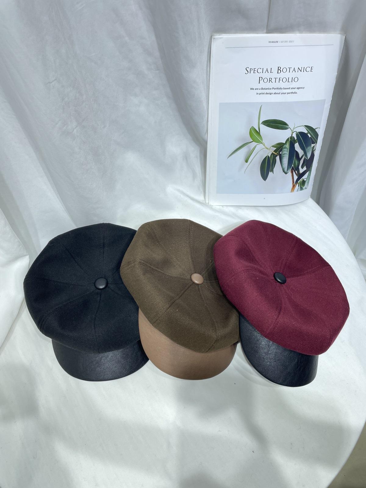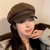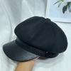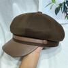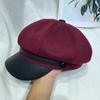 Boina de pintor de lana literaria británica, informal, combinable con todo, estilo octogonal, con lengüeta de pato y ala de cuero japonés, estilo japonés, para otoño e invierno.