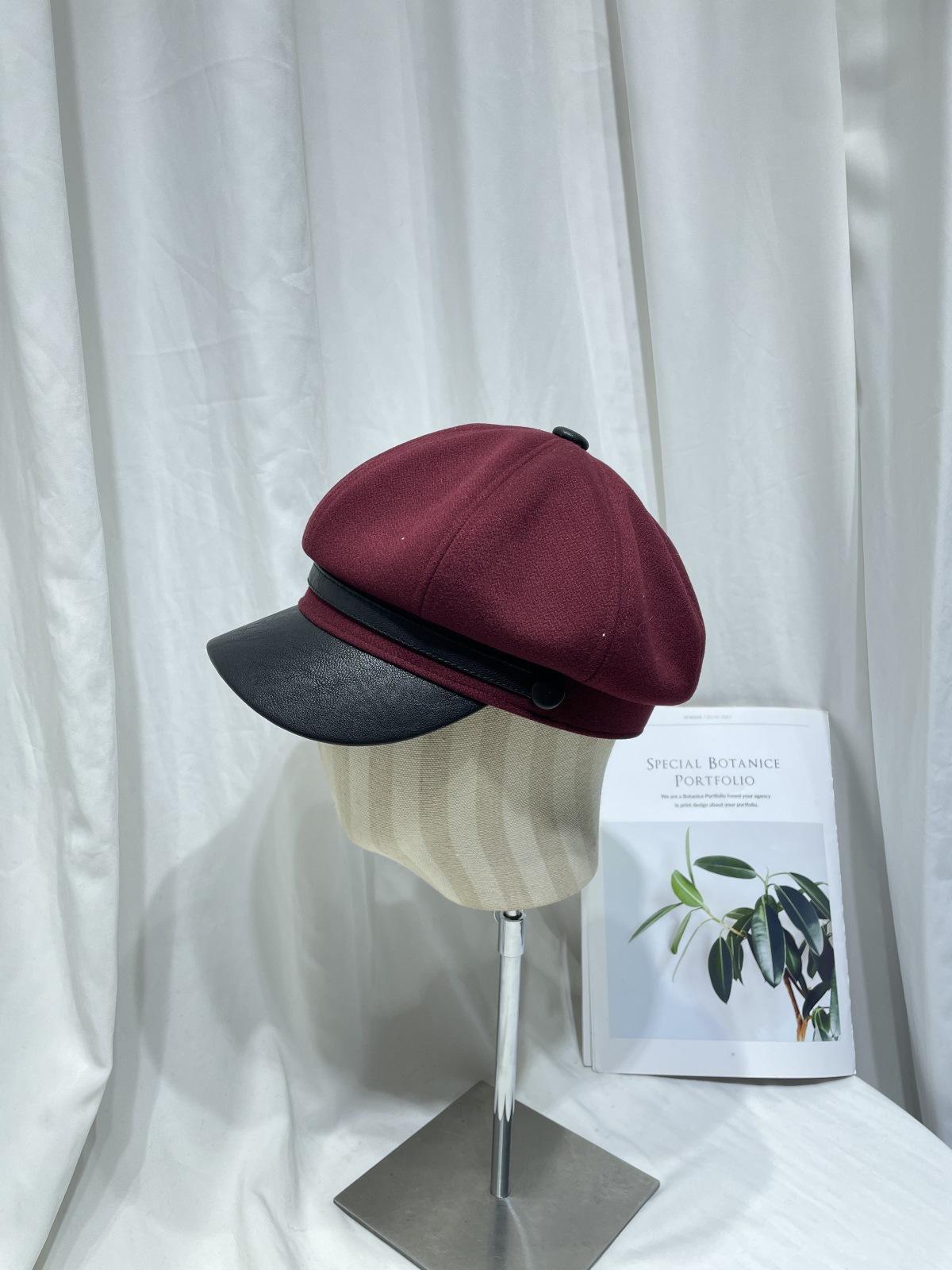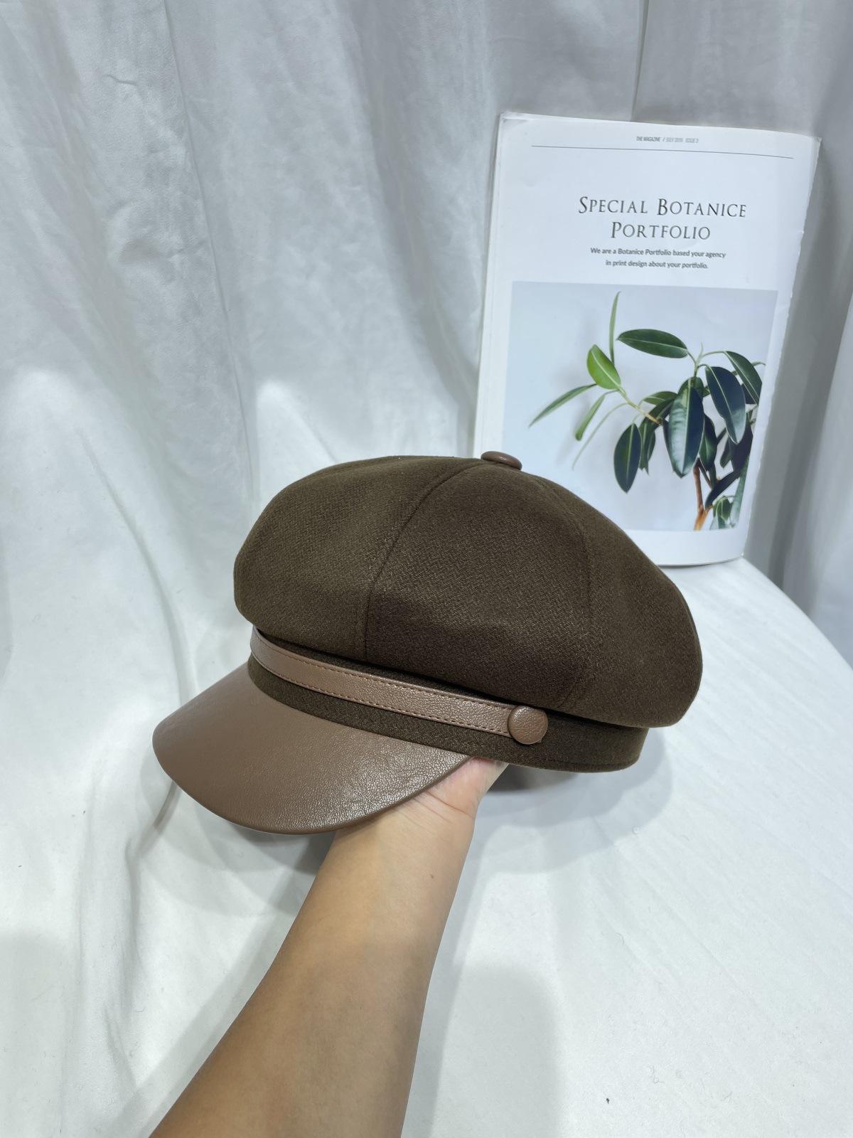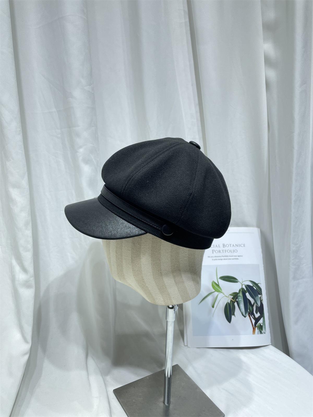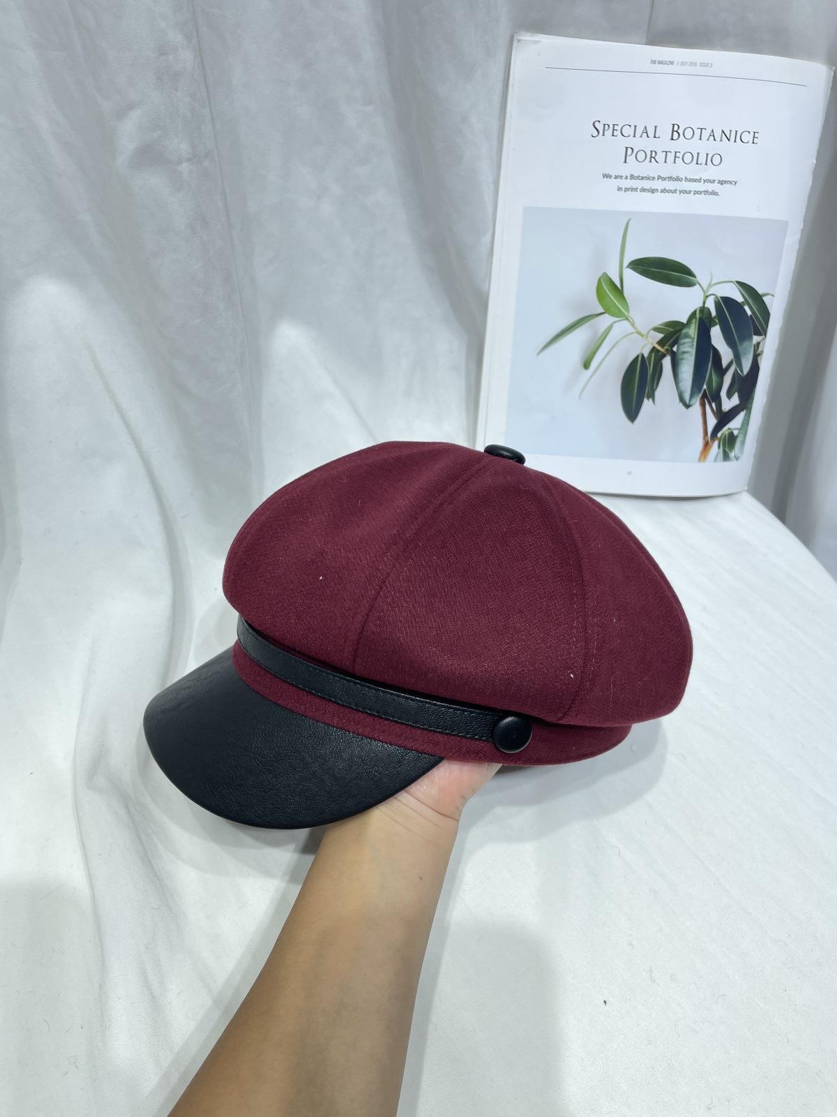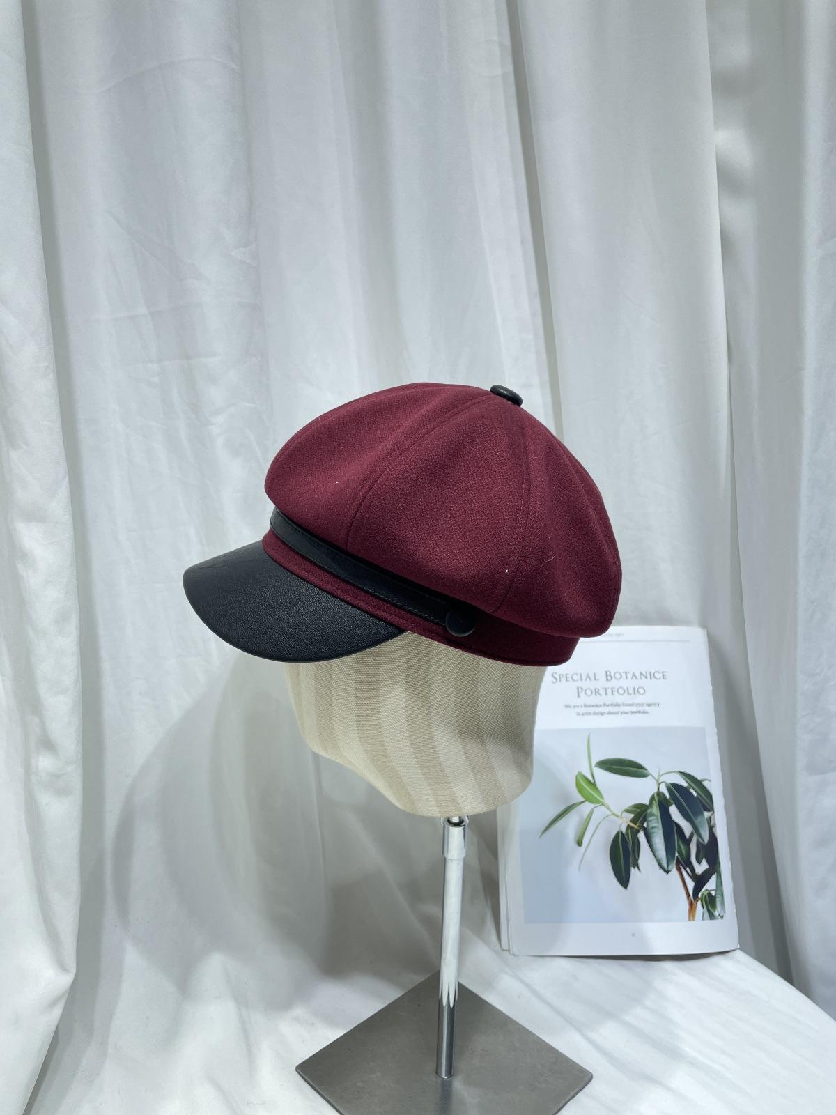 Boina de pintor de lana literaria británica, informal, combinable con todo, estilo octogonal, con lengüeta de pato y ala de cuero japonés, estilo japonés, para otoño e invierno.