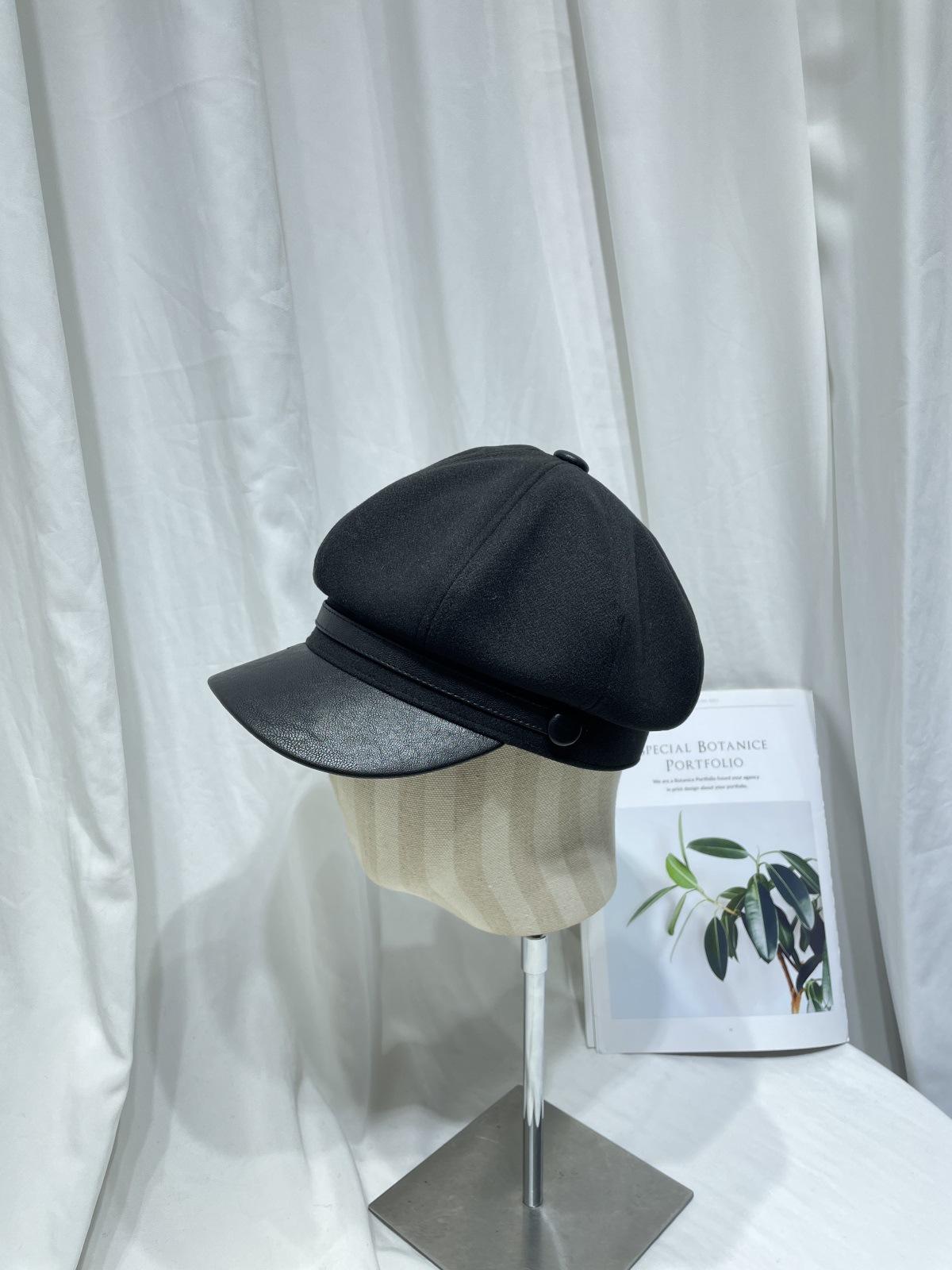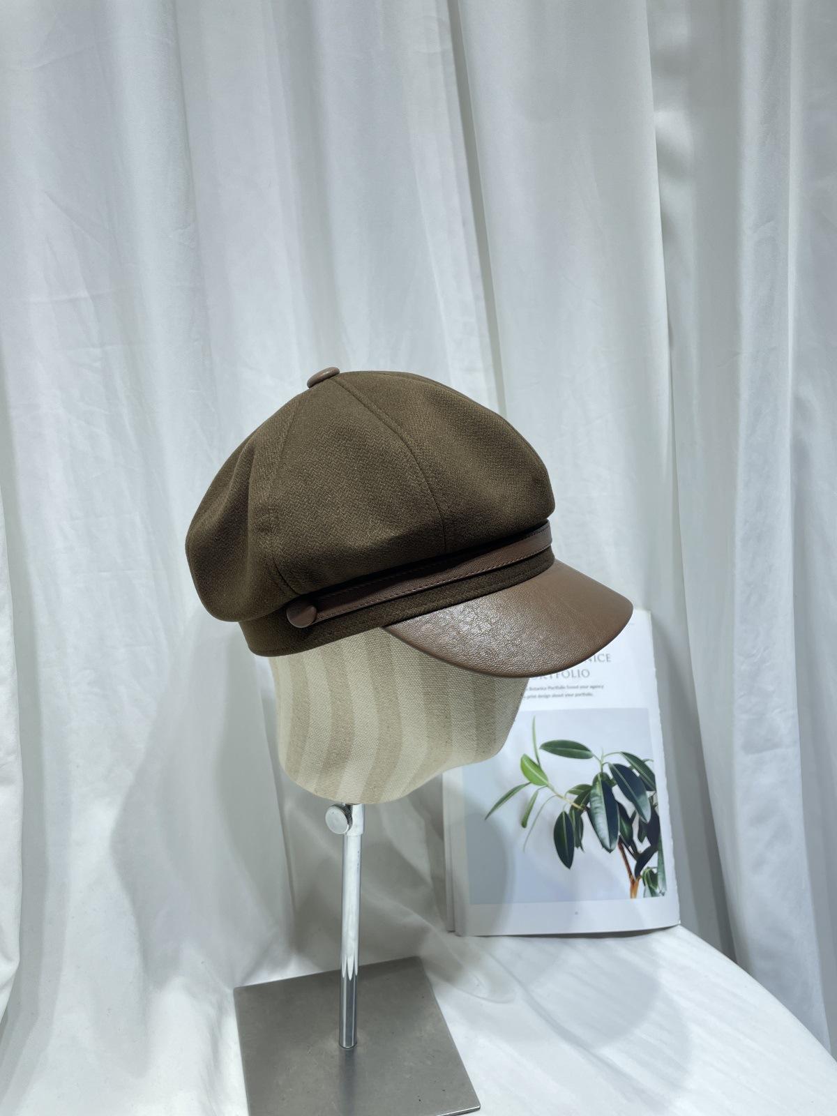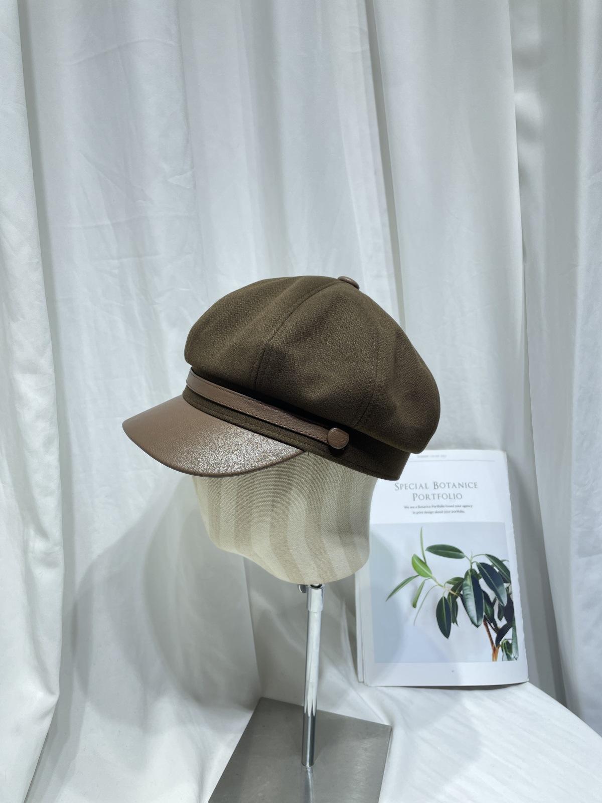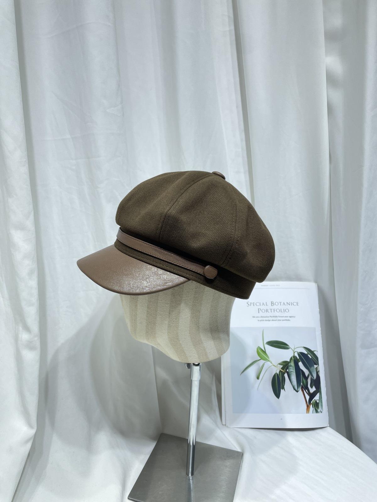 Boina de pintor de lana literaria británica, informal, combinable con todo, estilo octogonal, con lengüeta de pato y ala de cuero japonés, estilo japonés, para otoño e invierno.