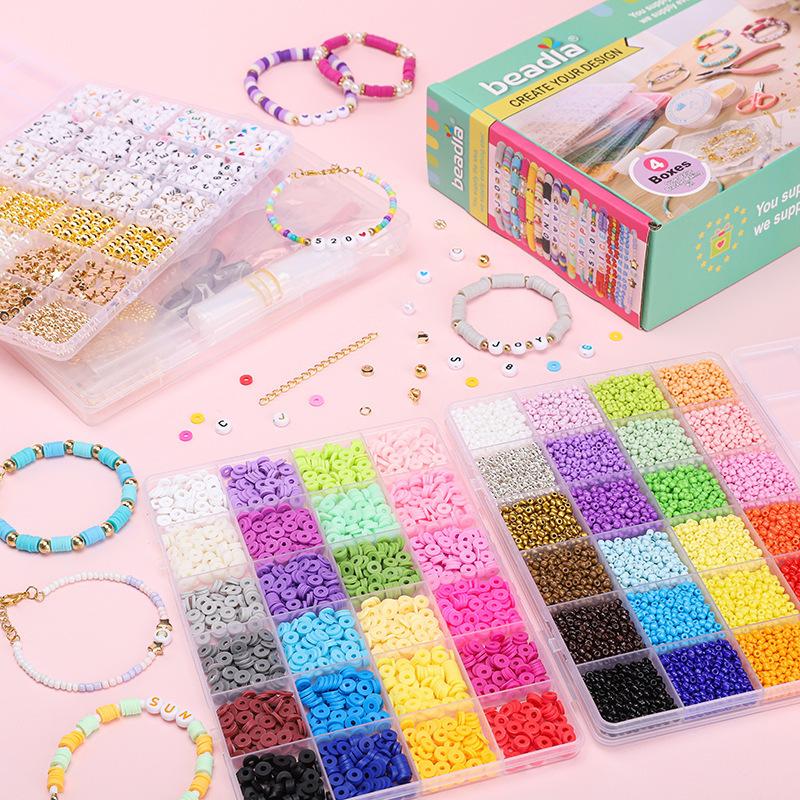 Rice beads set box + soft clay box + bead accessories set + tool kit