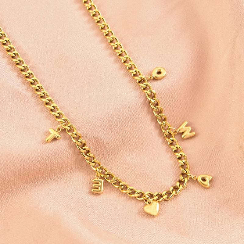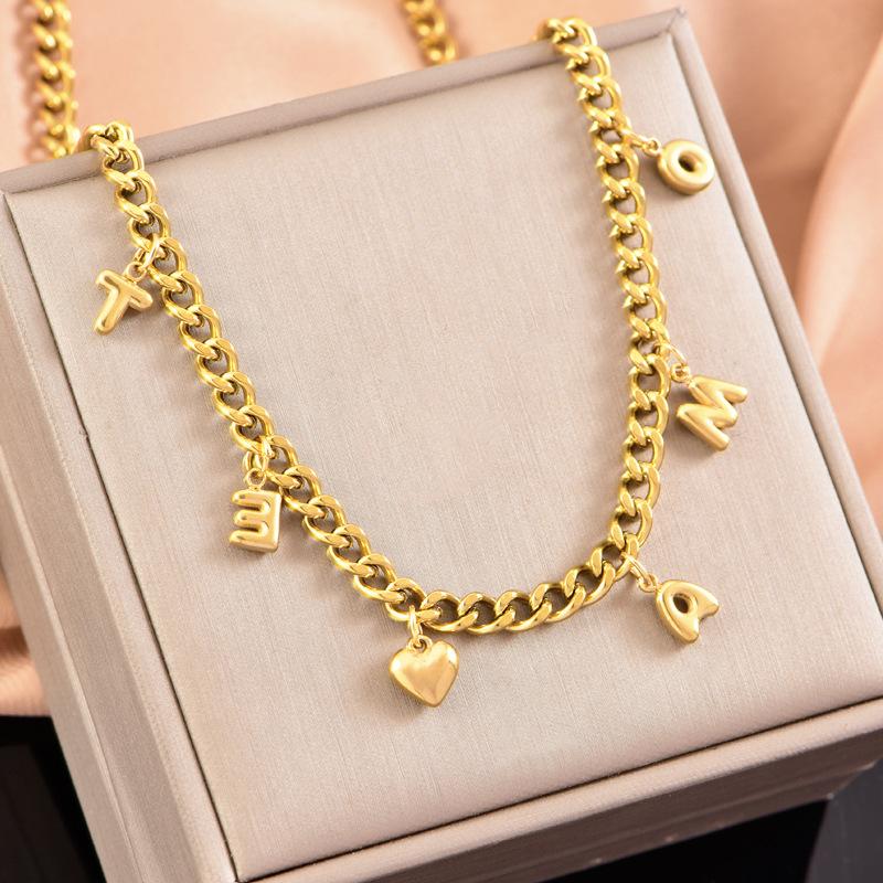 Collar de cadena gruesa con letras de amor de hip-hop transfronterizo de moda, cadena de clavícula de acero inoxidable que combina con todo y no se decolora, al por mayor